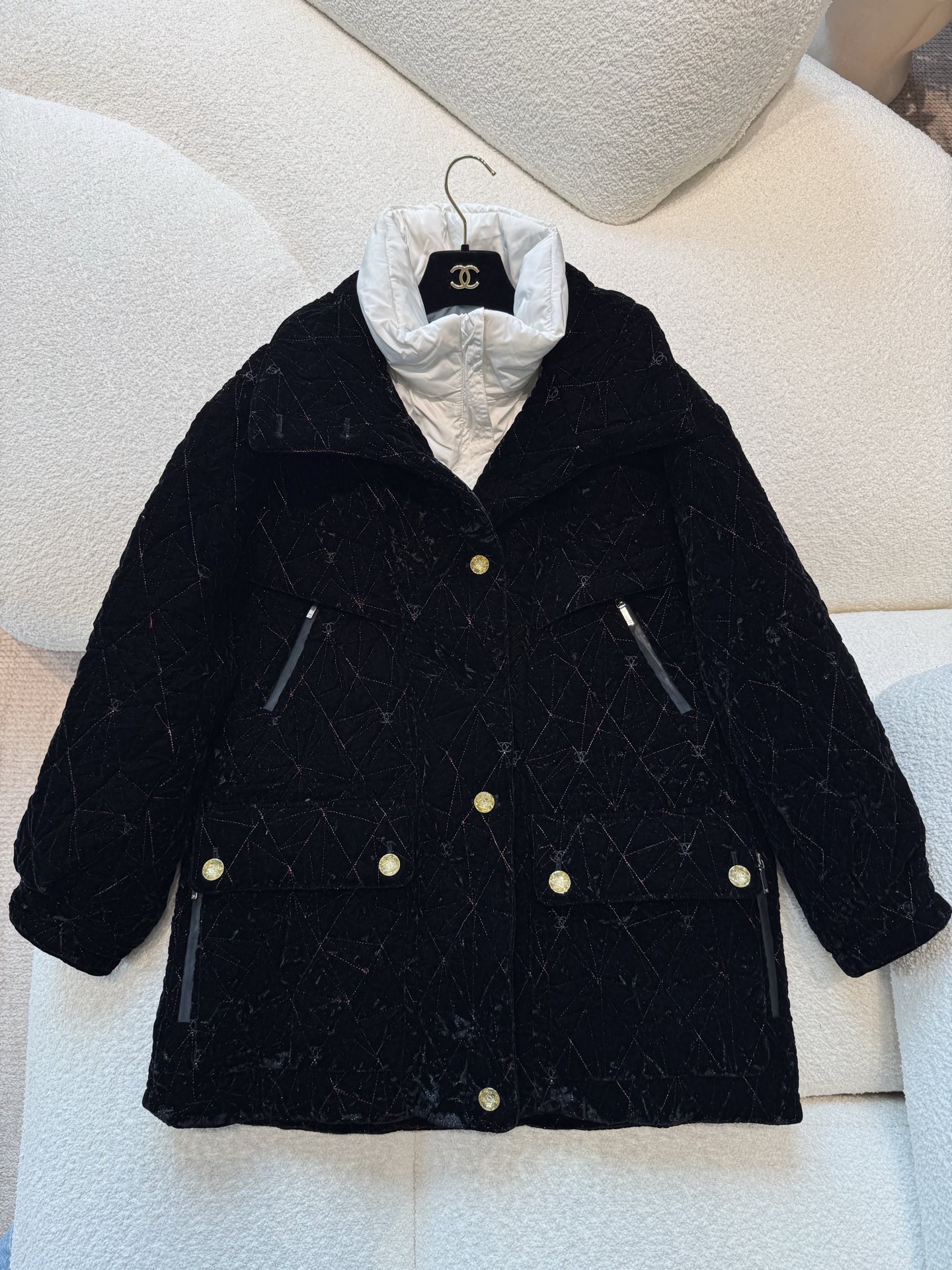Home / Jacket / Chanel Fall/Winter Women's Series Velvet Down Jacket Black Velvet White Lambswool Lapel Diamond Check #nigo332624