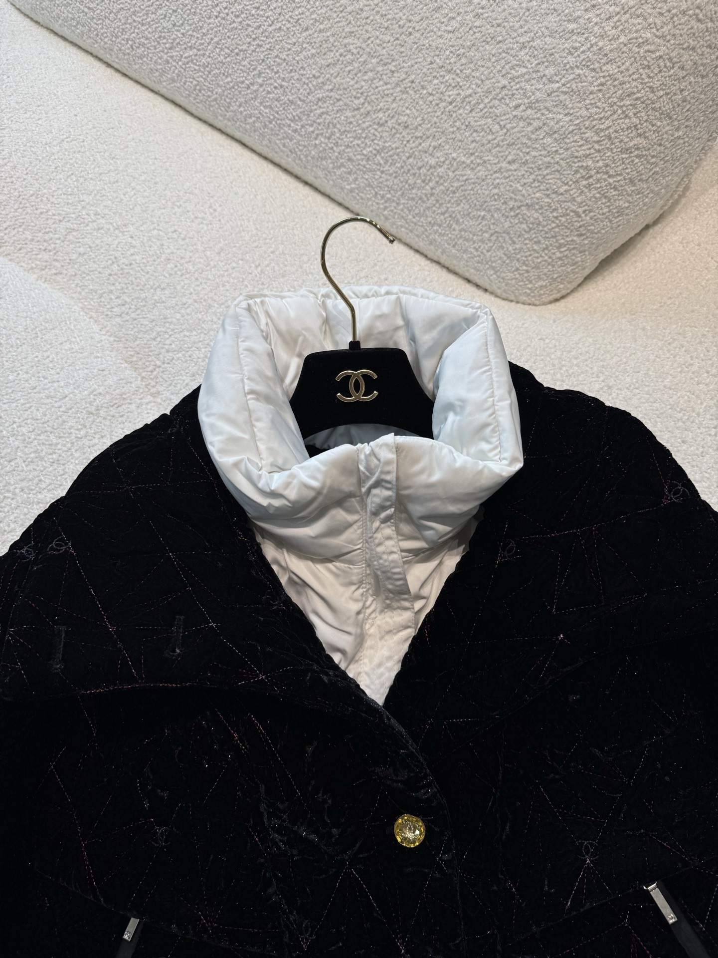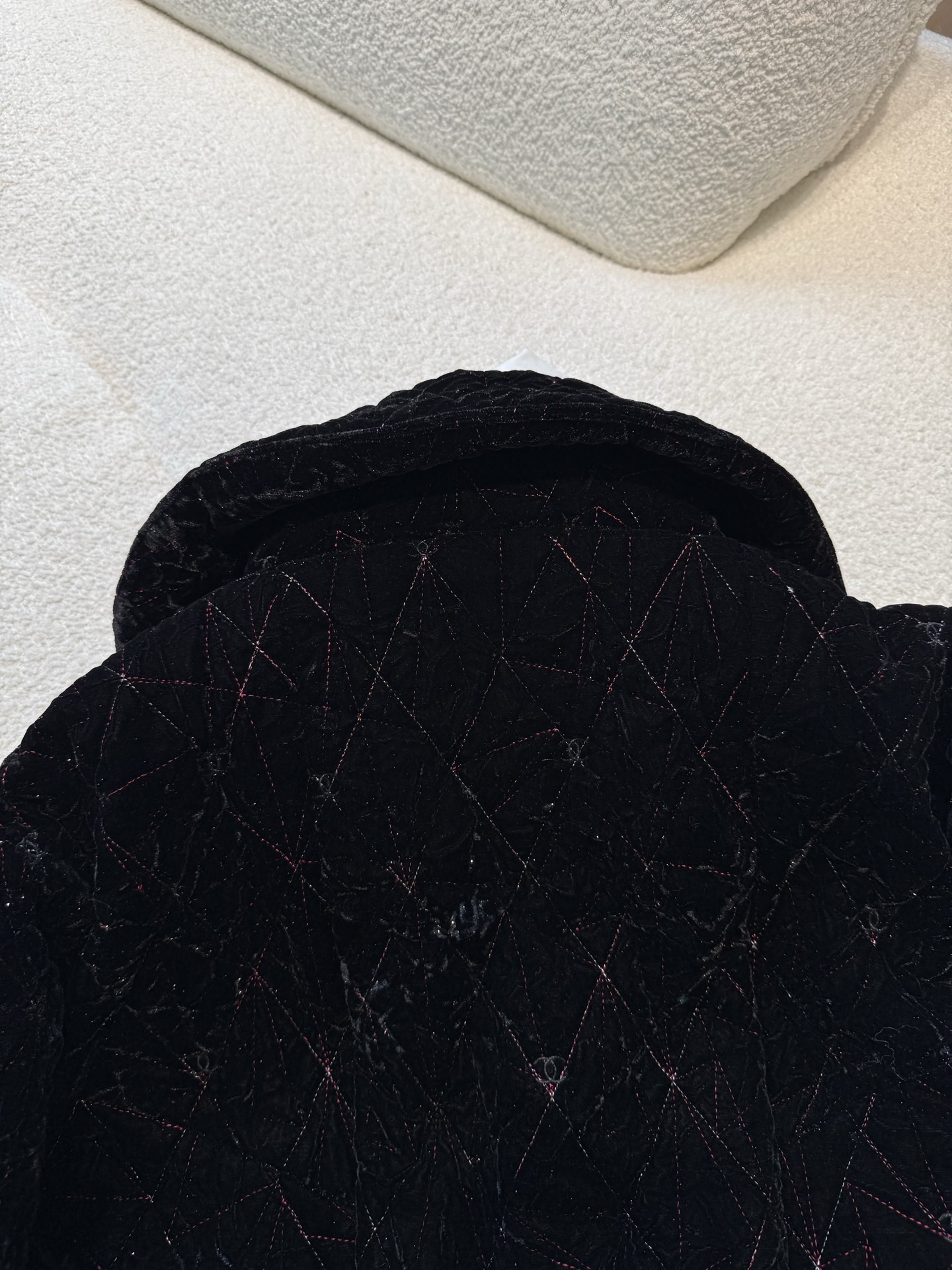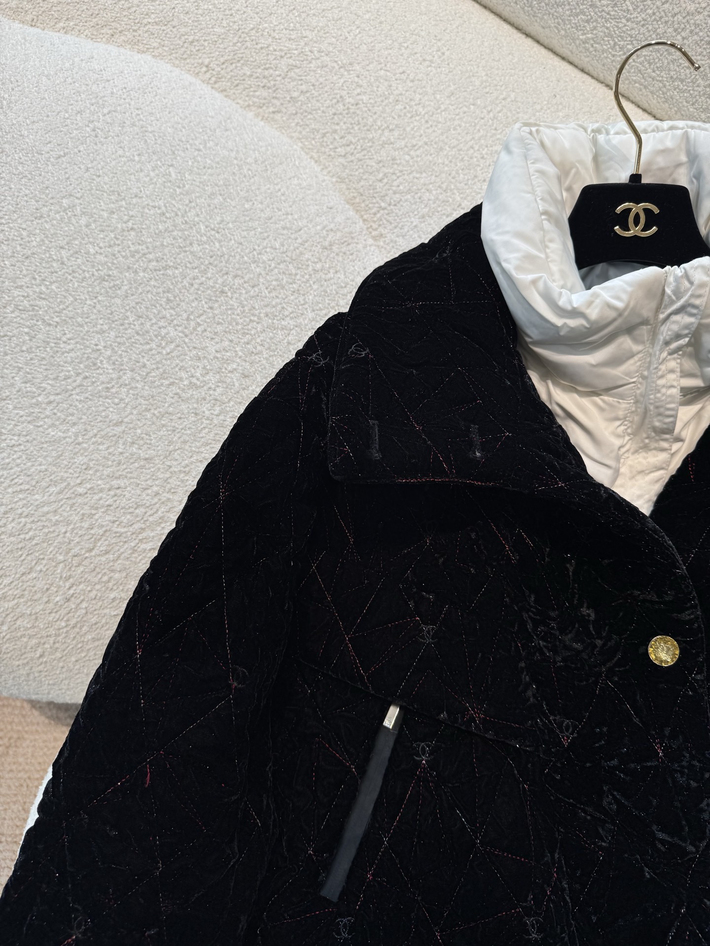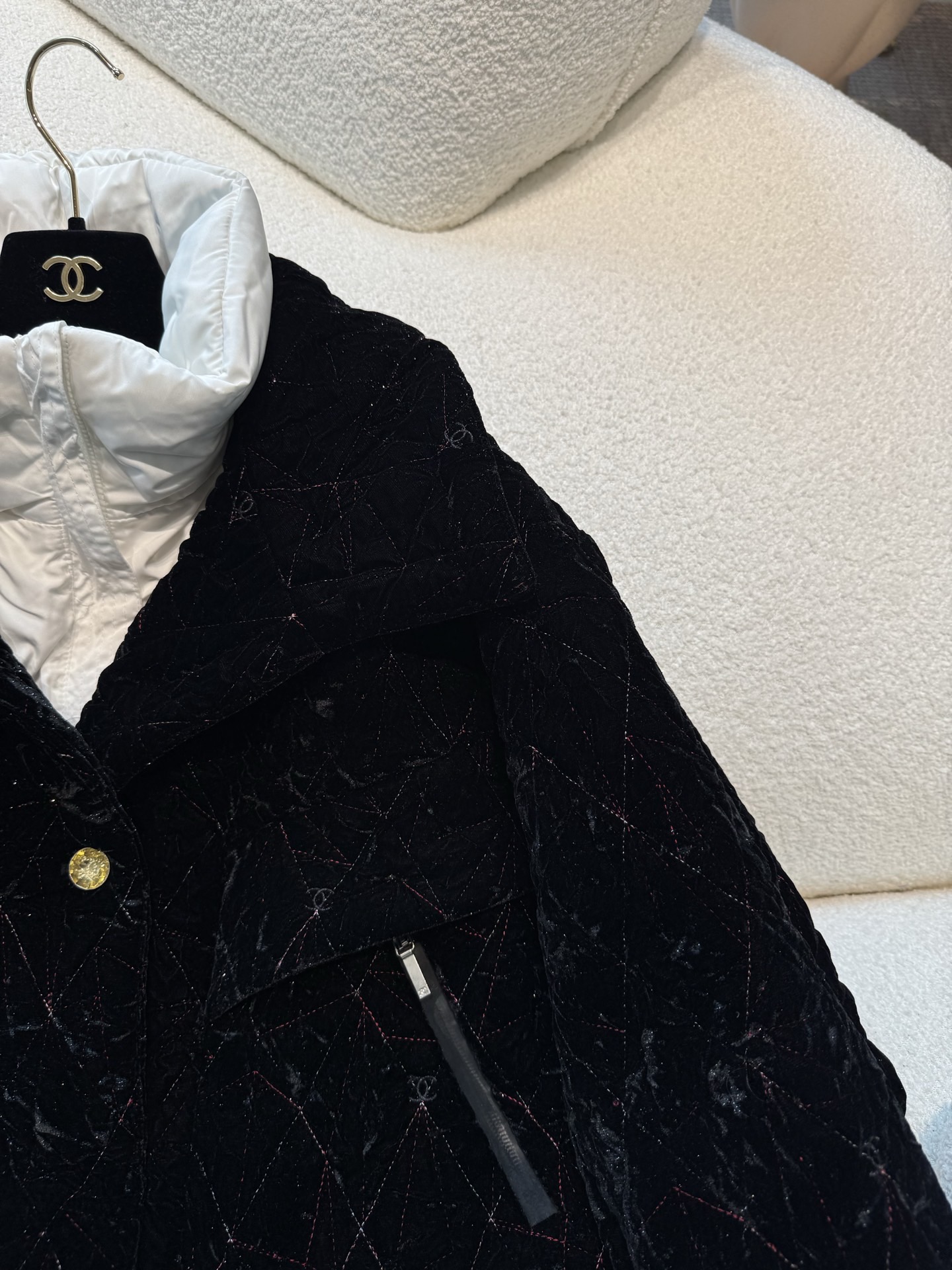 Chanel Fall/Winter Women's Series Velvet Down Jacket Black Velvet White Lambswool Lapel Diamond Check #nigo332624