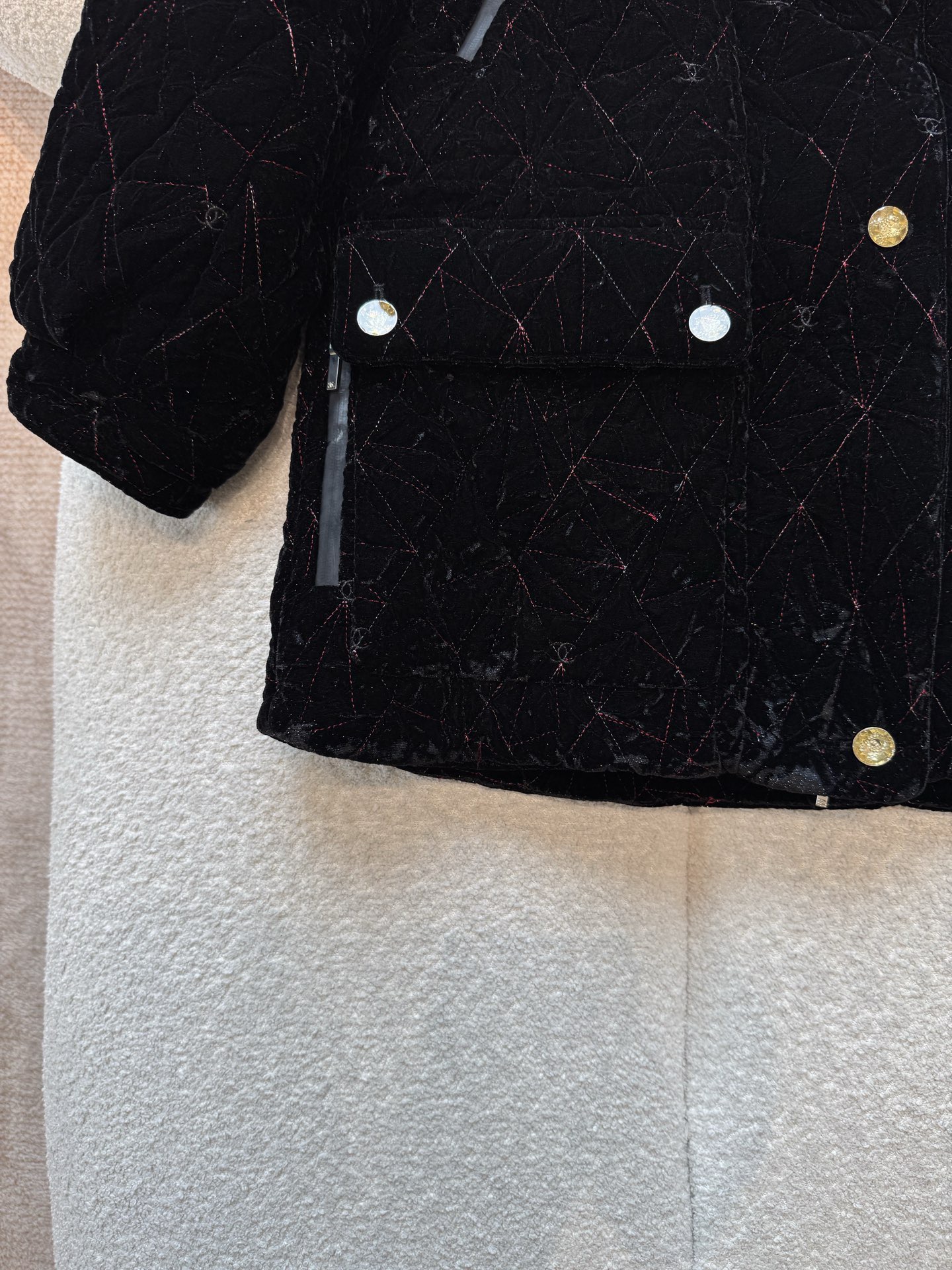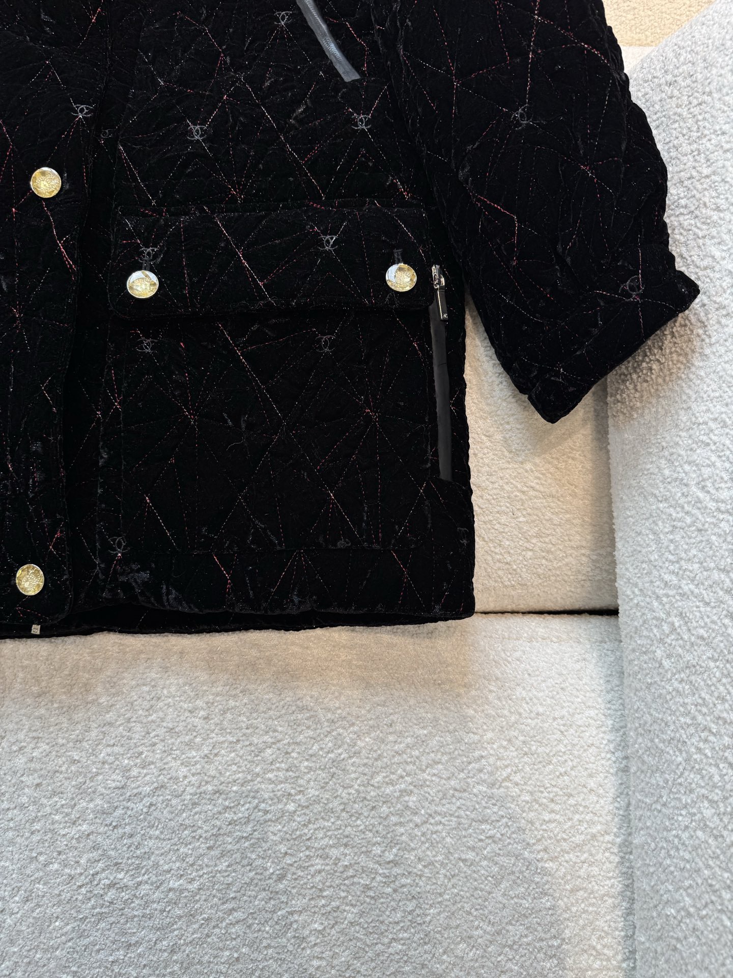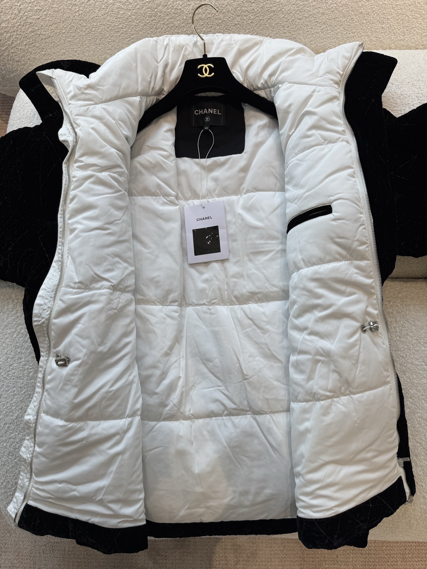 Chanel Fall/Winter Women's Series Velvet Down Jacket Black Velvet White Lambswool Lapel Diamond Check #nigo332624