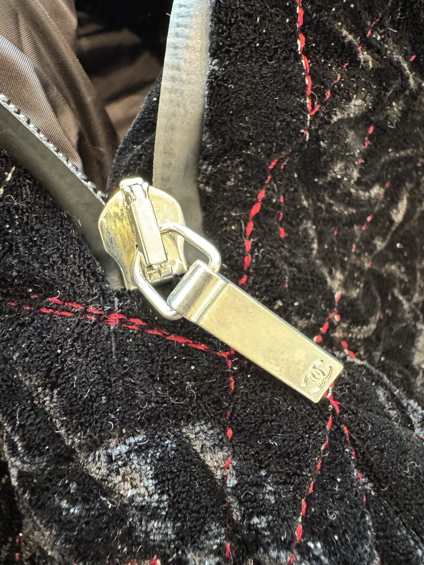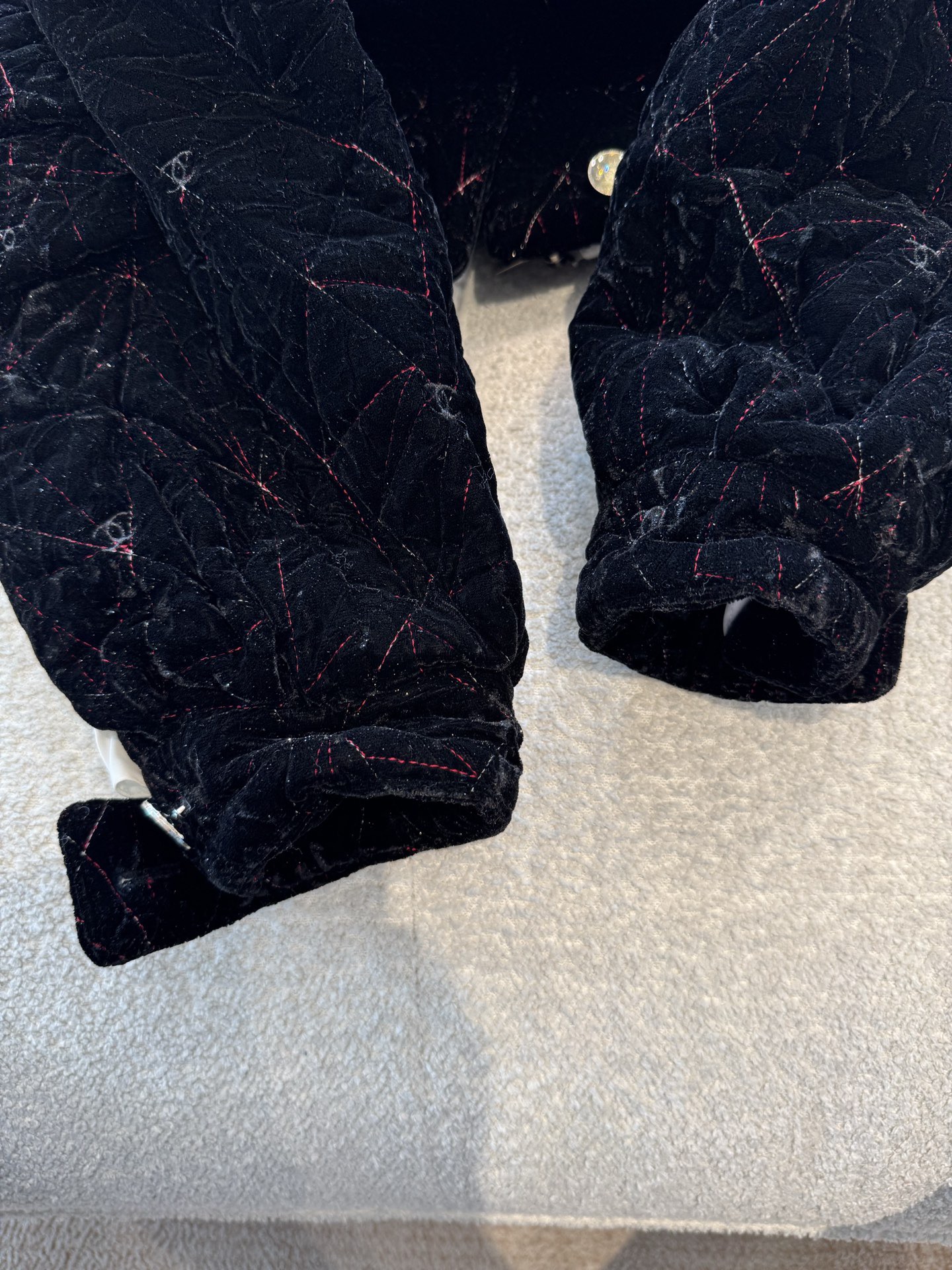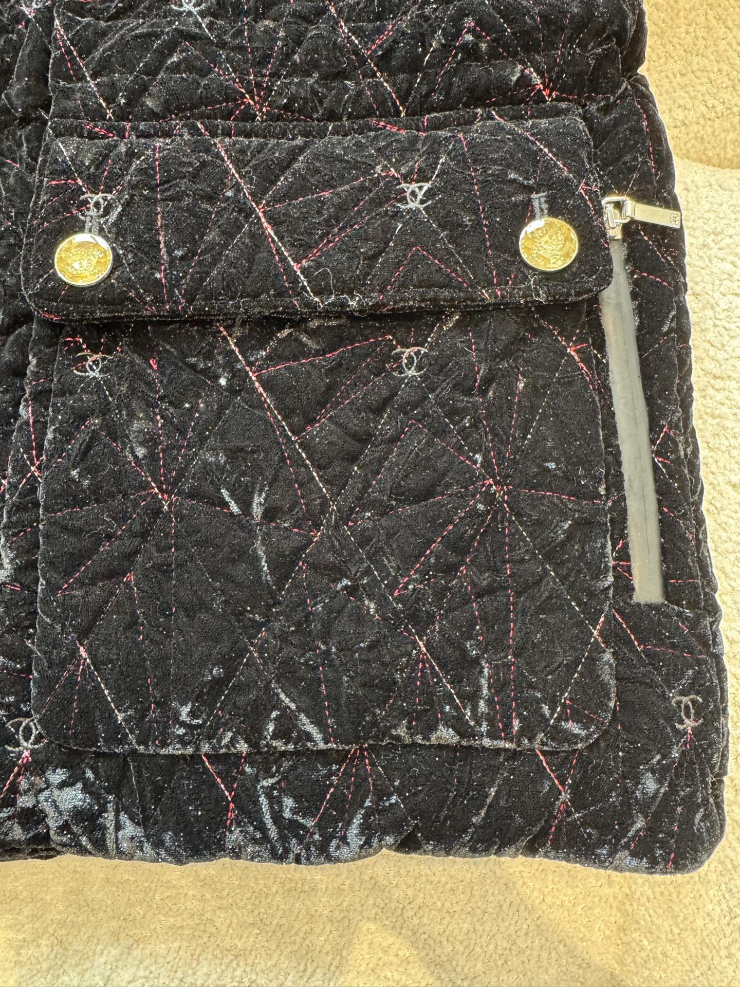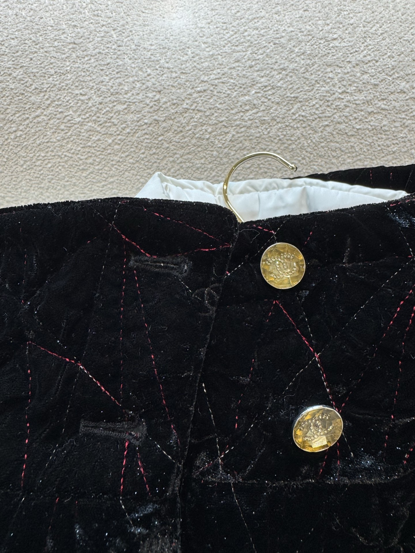 Chanel Fall/Winter Women's Series Velvet Down Jacket Black Velvet White Lambswool Lapel Diamond Check #nigo332624