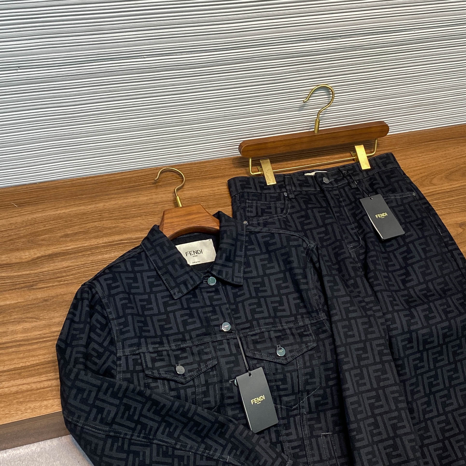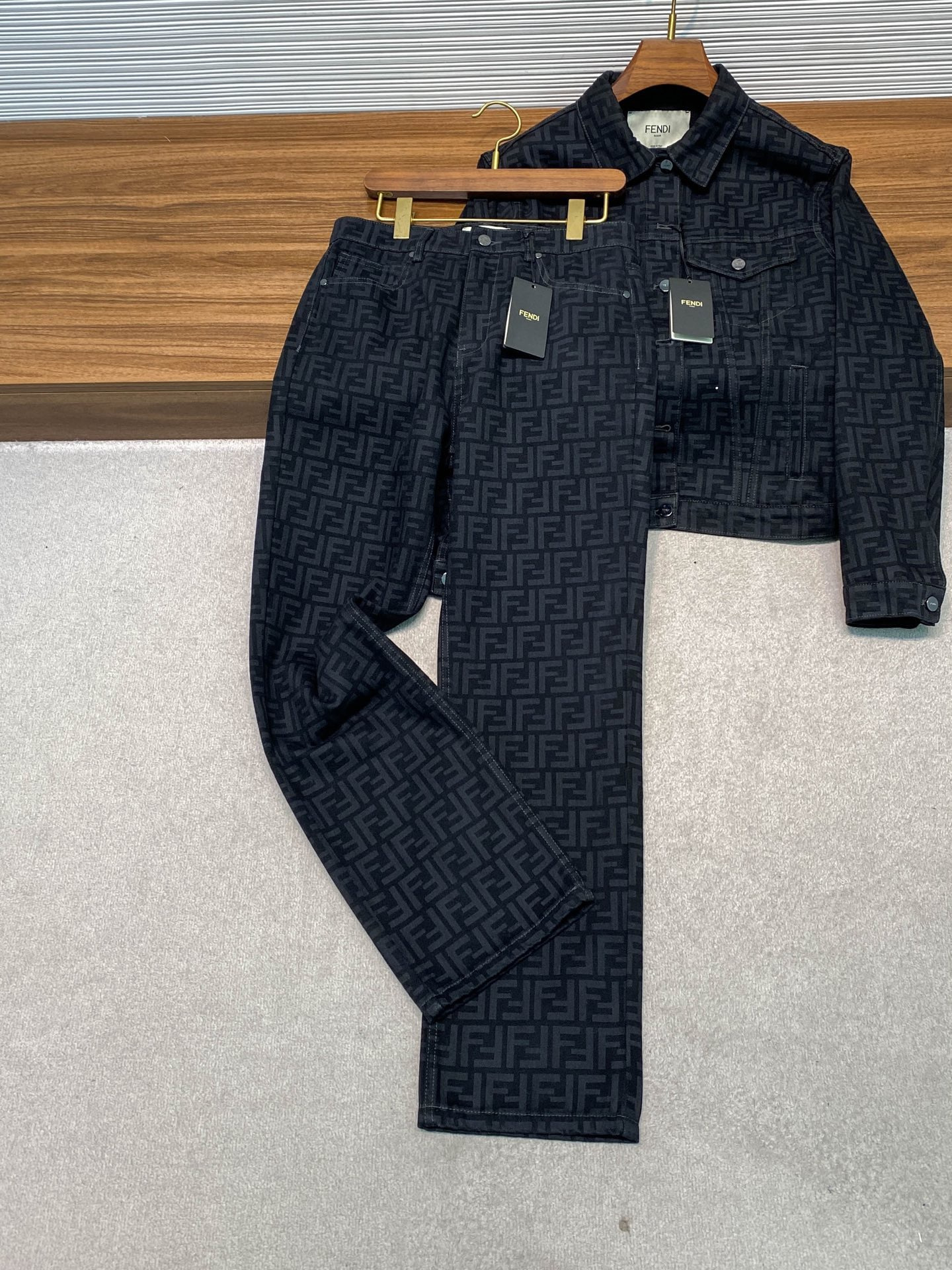 NIGO Fendi FF Motif Denim Jacket Long Jeans Jeans Black #nigo333143