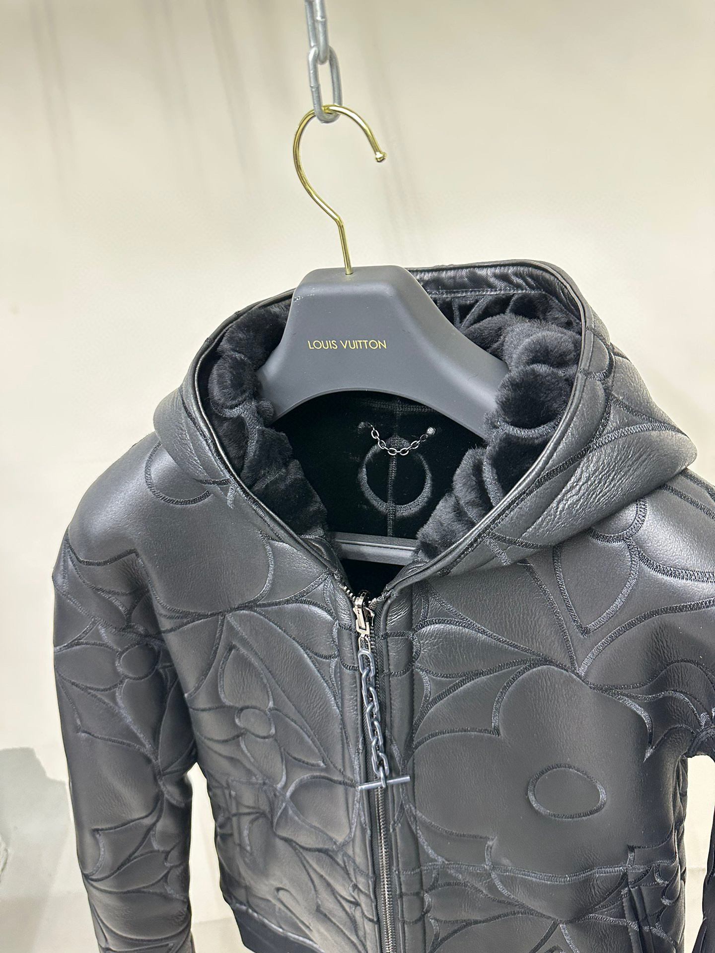 Louis Vuitton Fur Genuine Leather Reversible Flower Shearling Hoodie Jacket #nigo5588