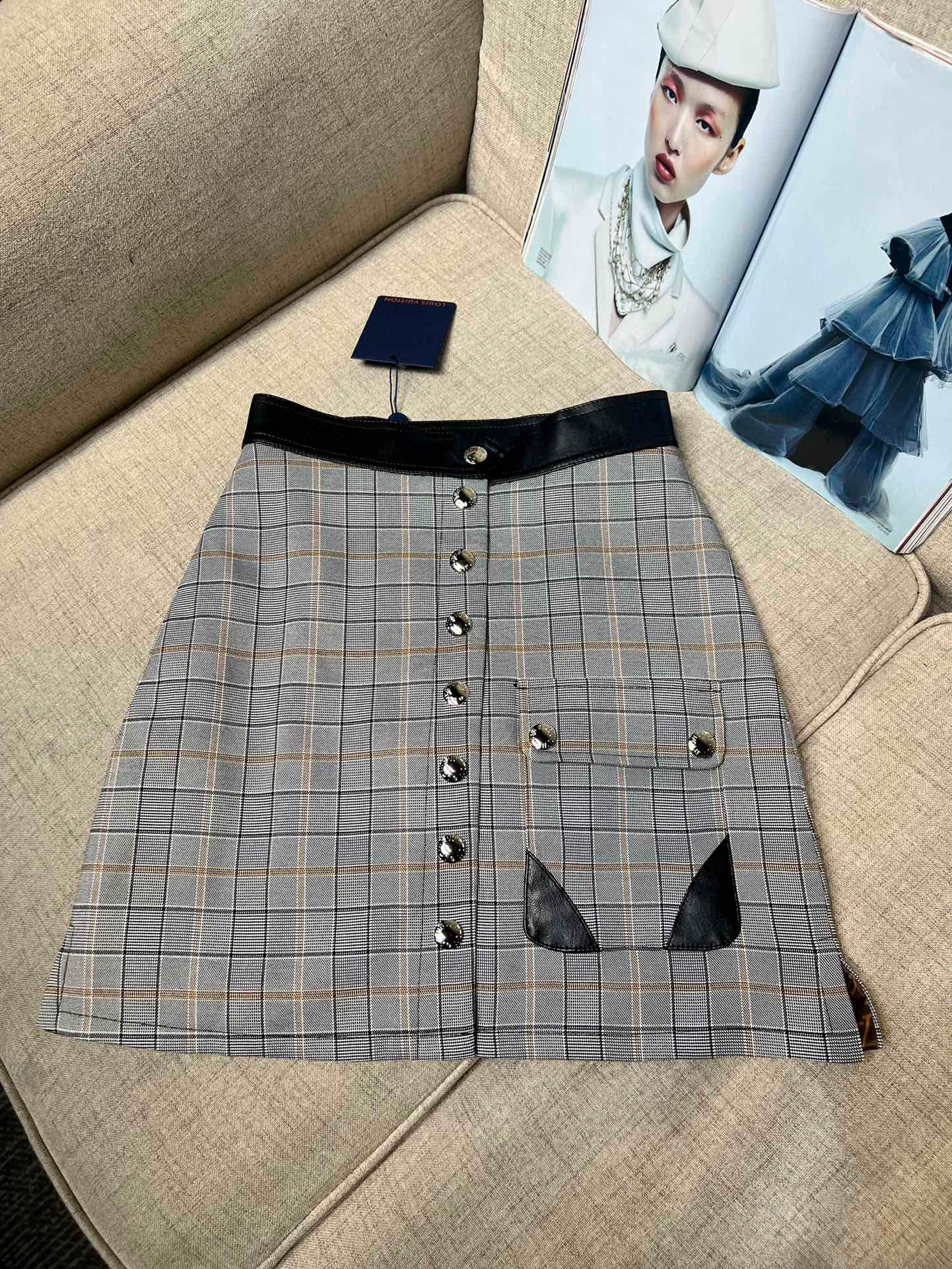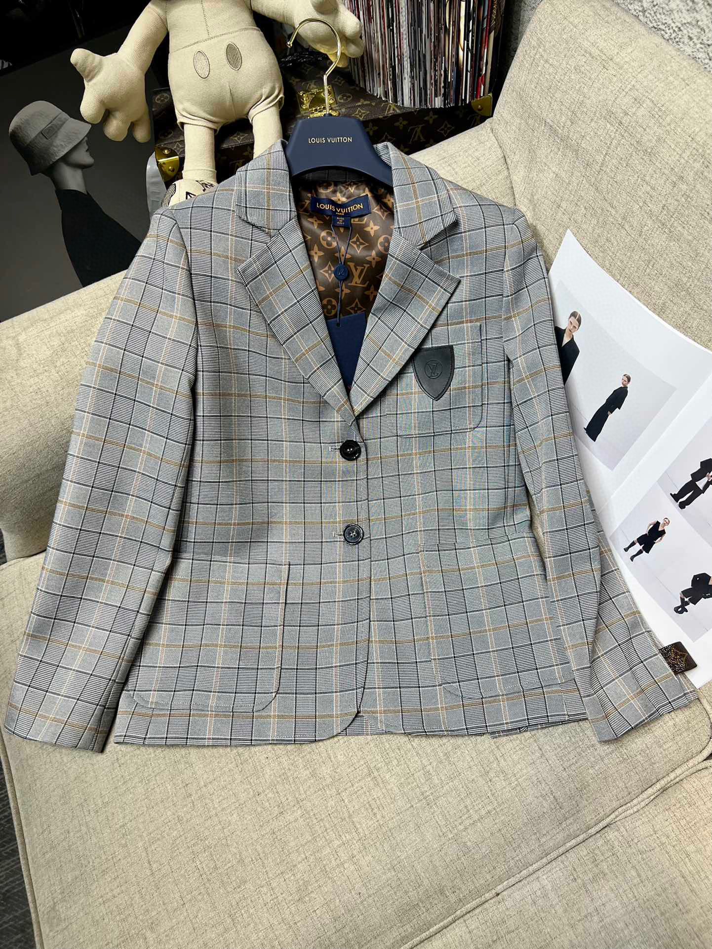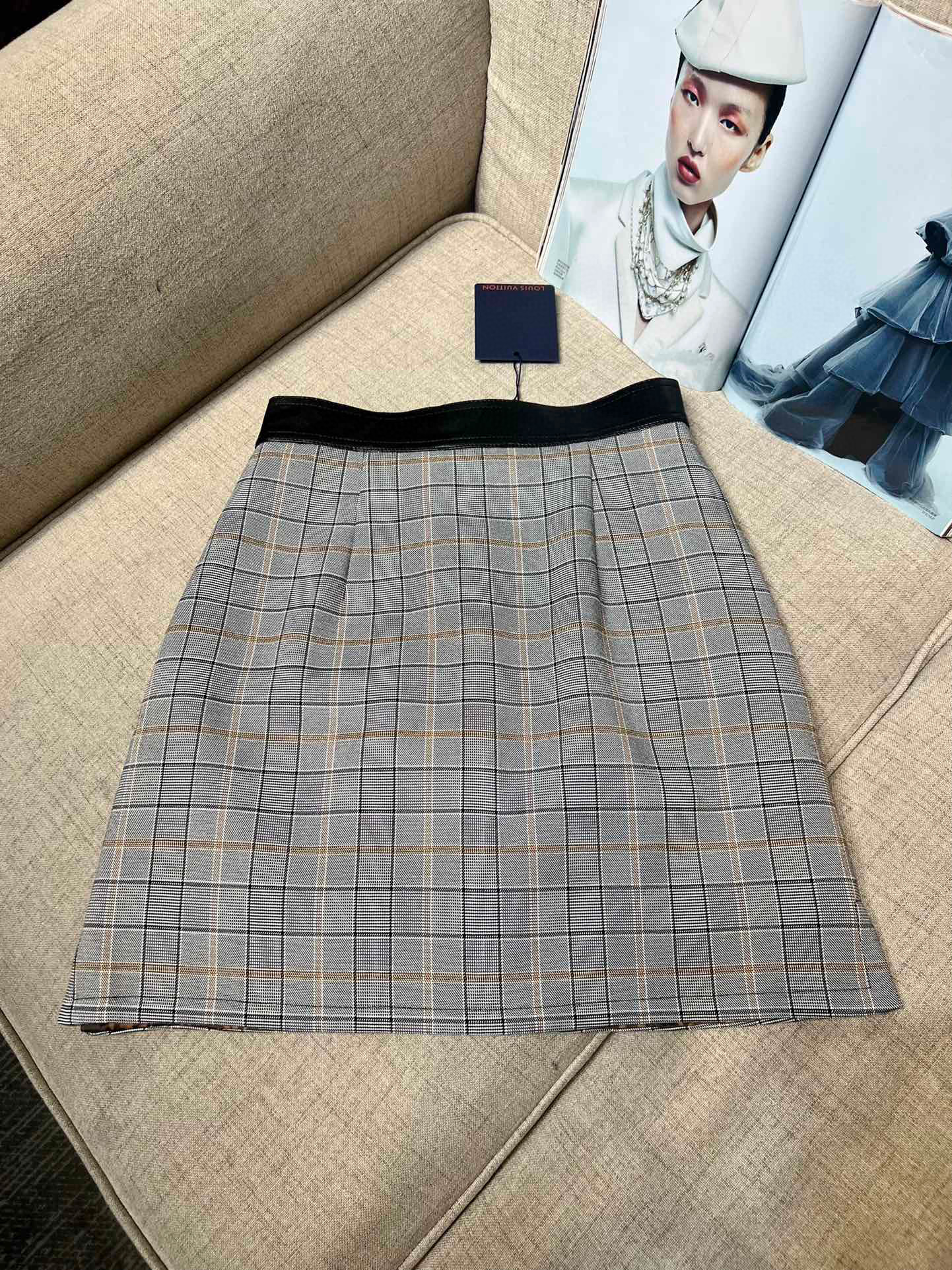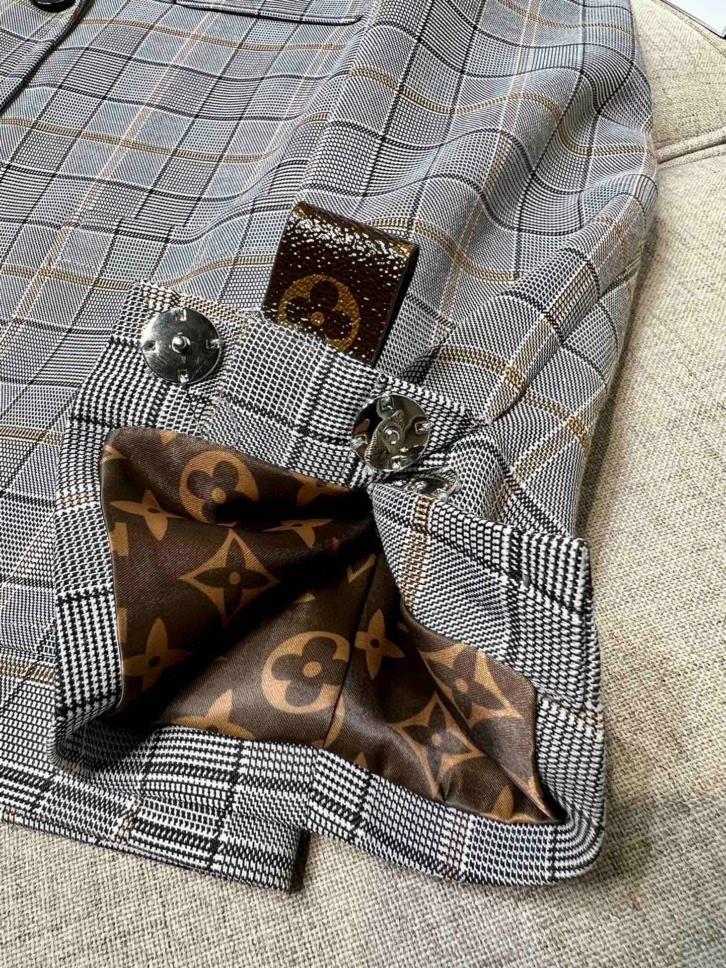 Louis Vuitton Preppy Grey Plaid Long Sleeved Suit Jacket Short Skirt Set #nigo21755