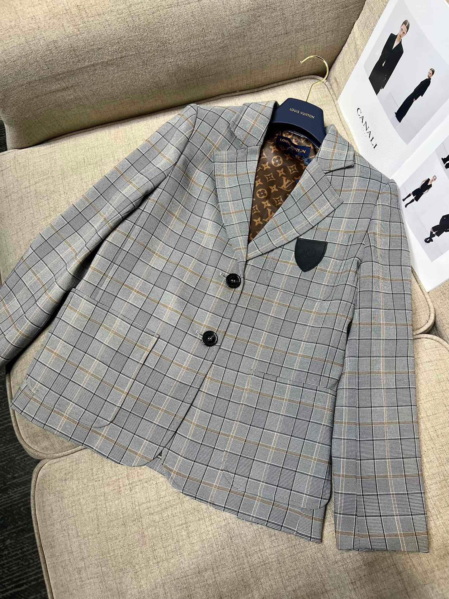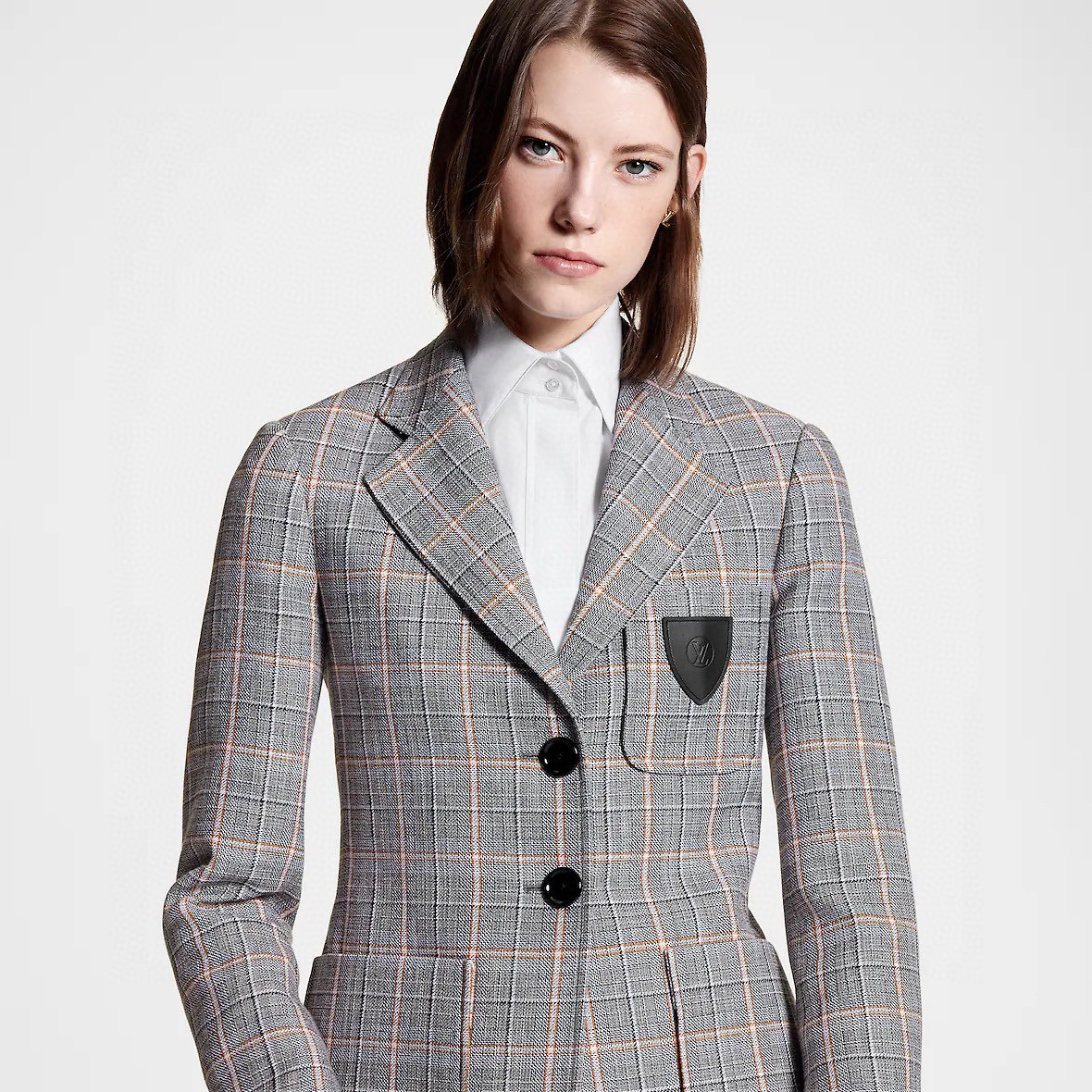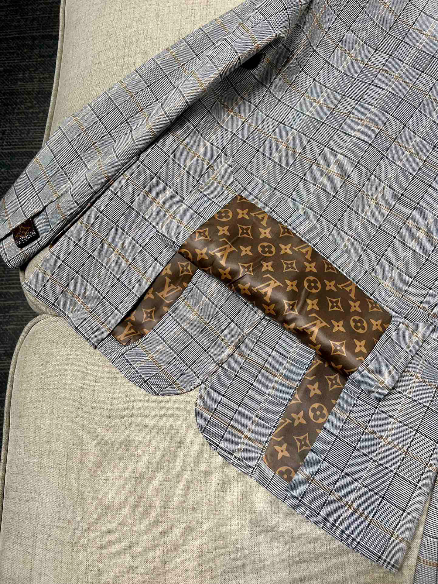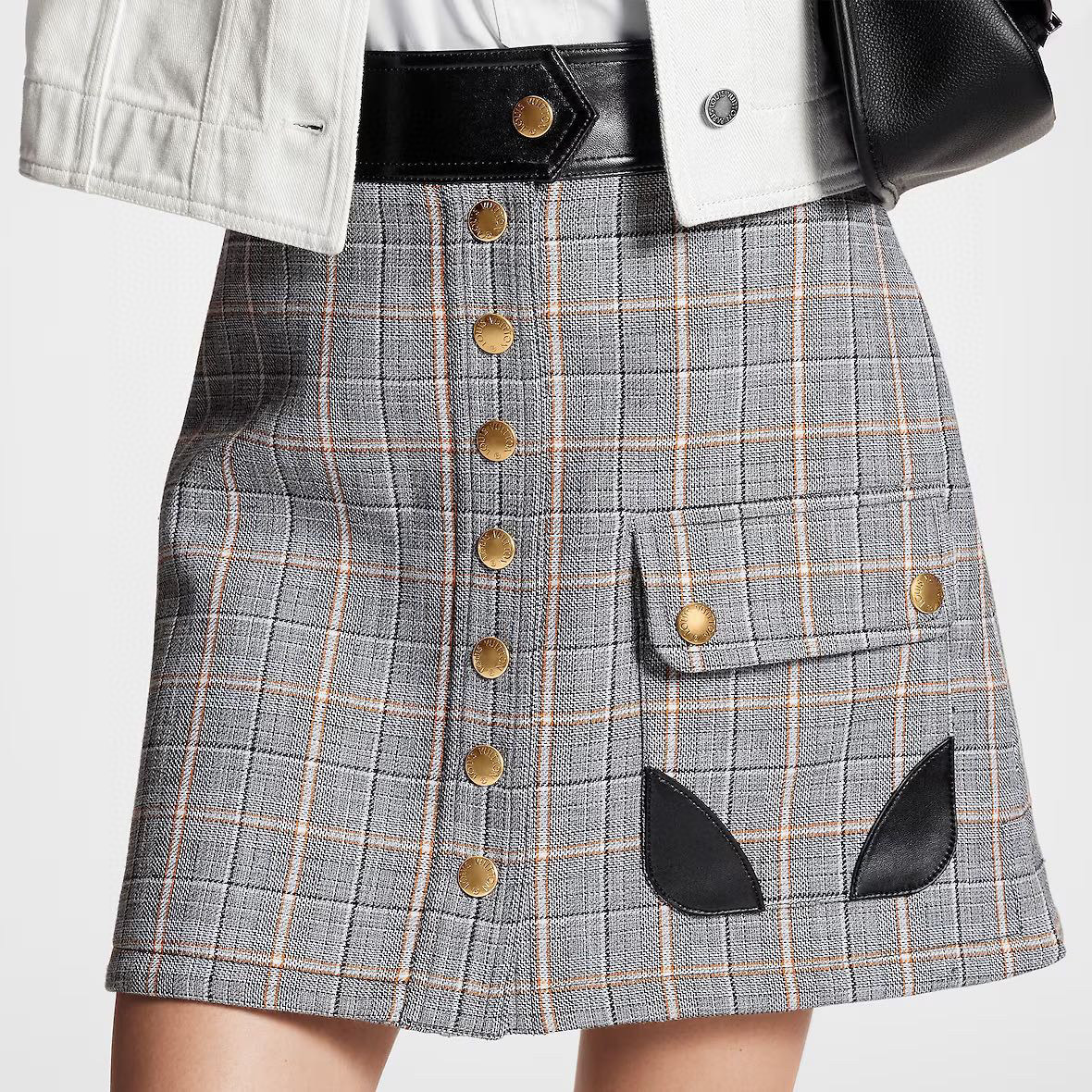 Louis Vuitton Preppy Grey Plaid Long Sleeved Suit Jacket Short Skirt Set #nigo21755