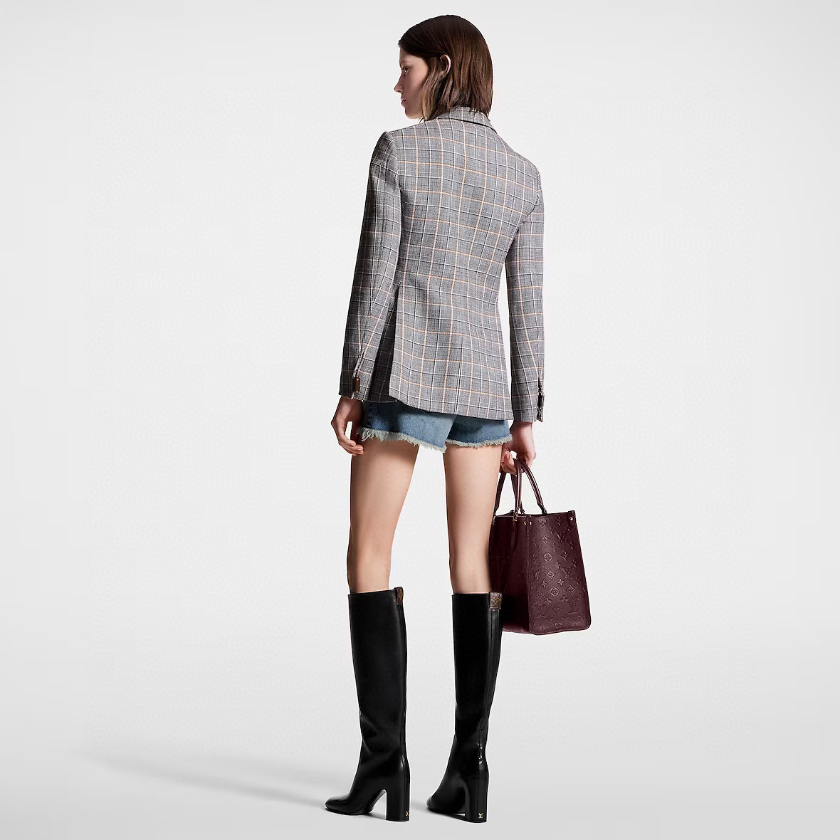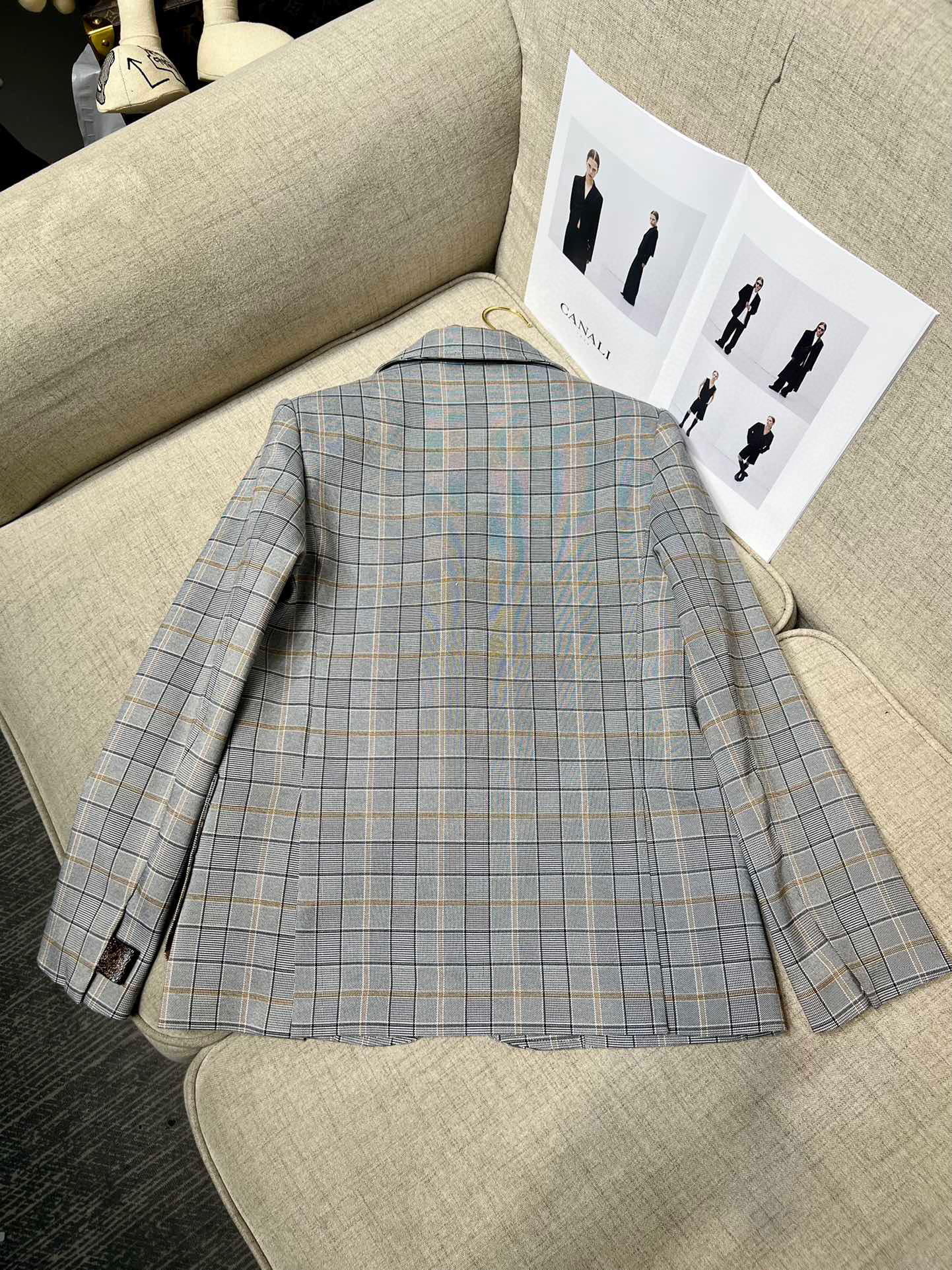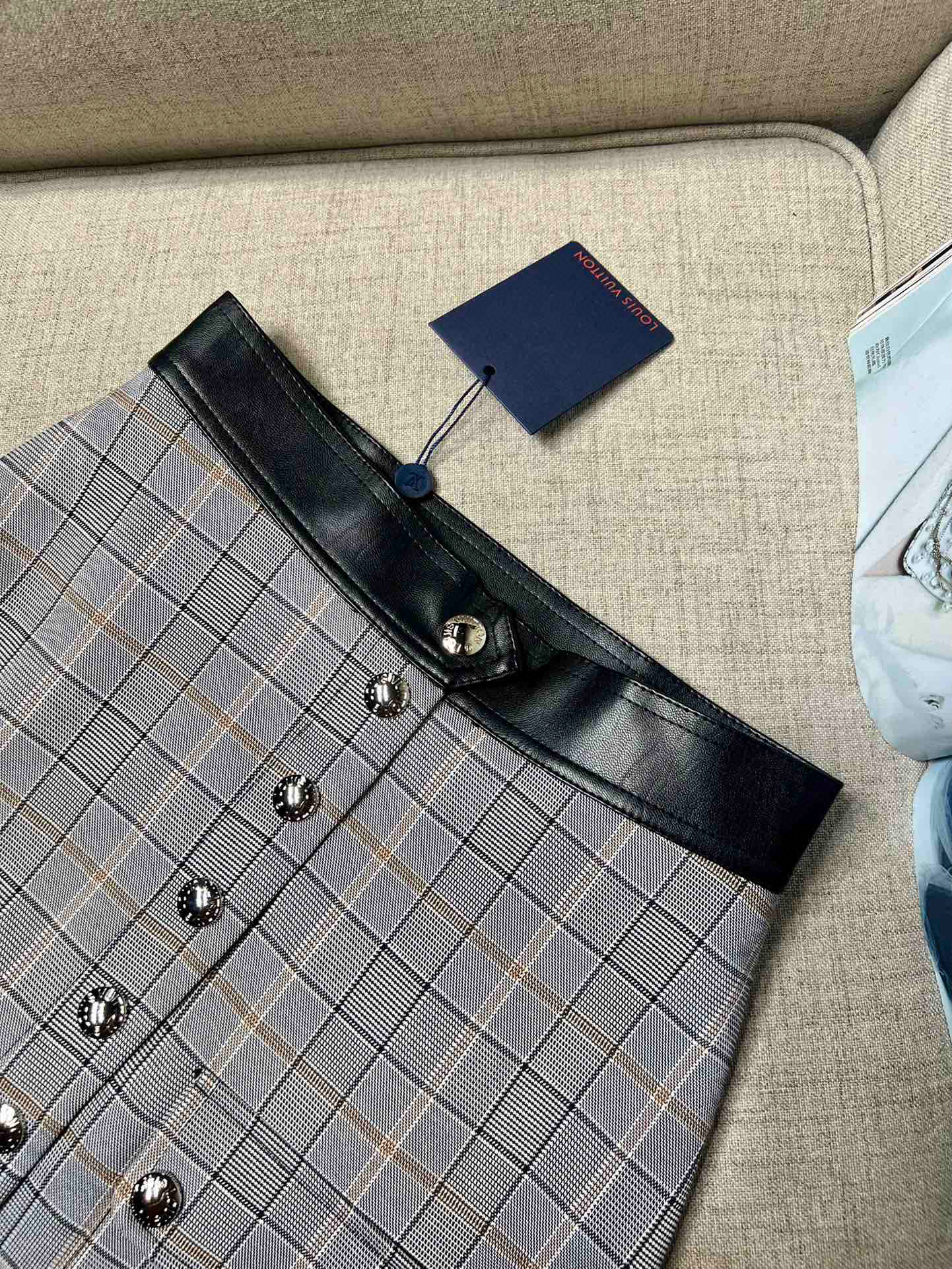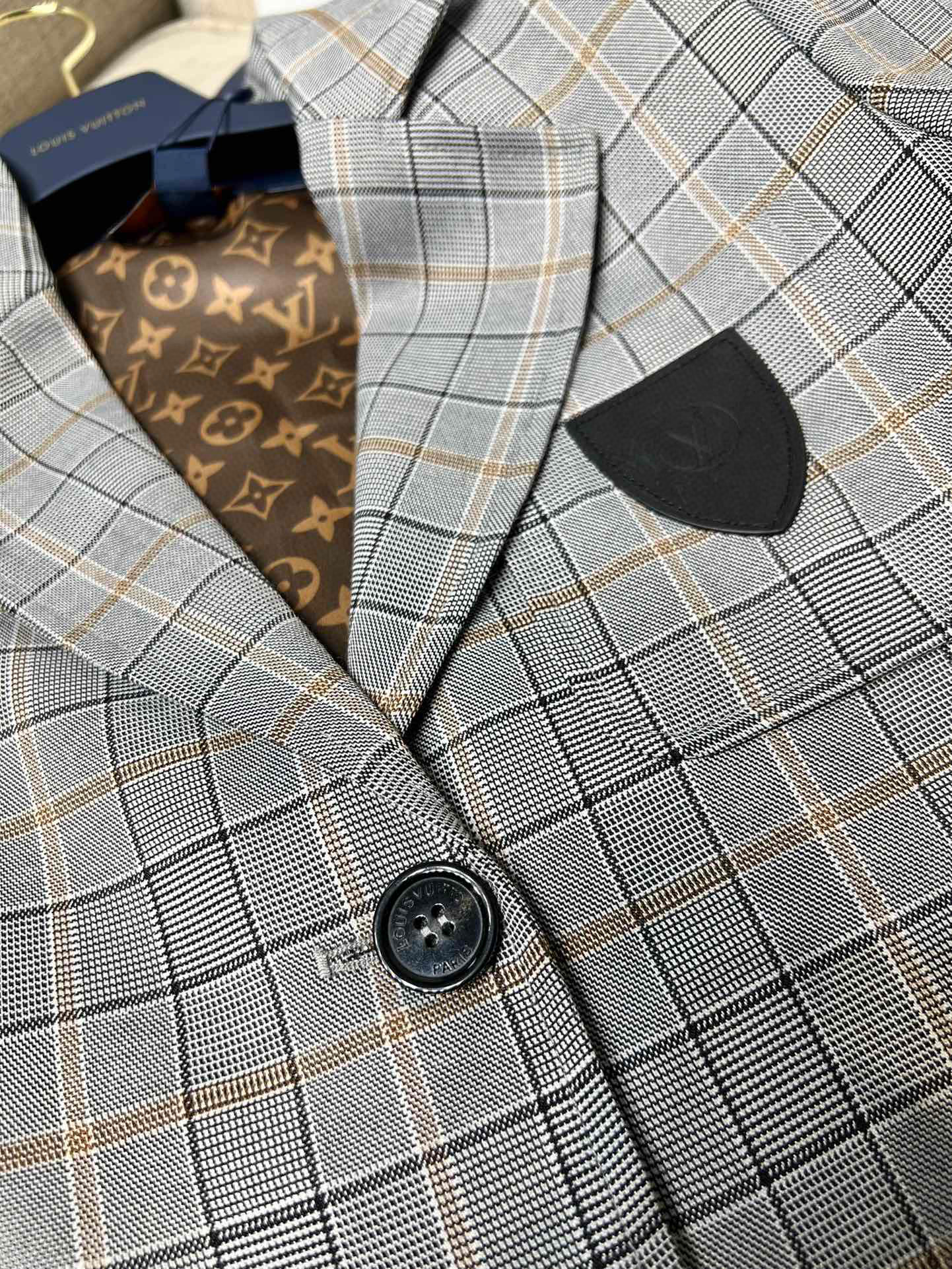 Louis Vuitton Preppy Grey Plaid Long Sleeved Suit Jacket Short Skirt Set #nigo21755