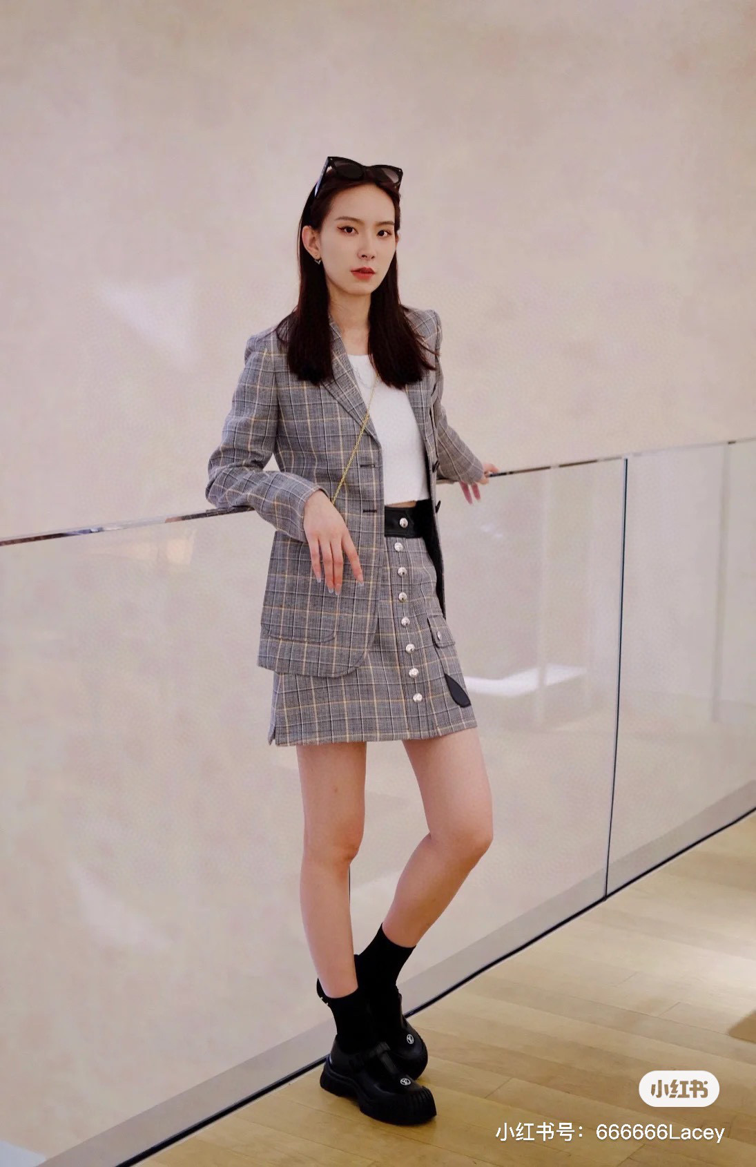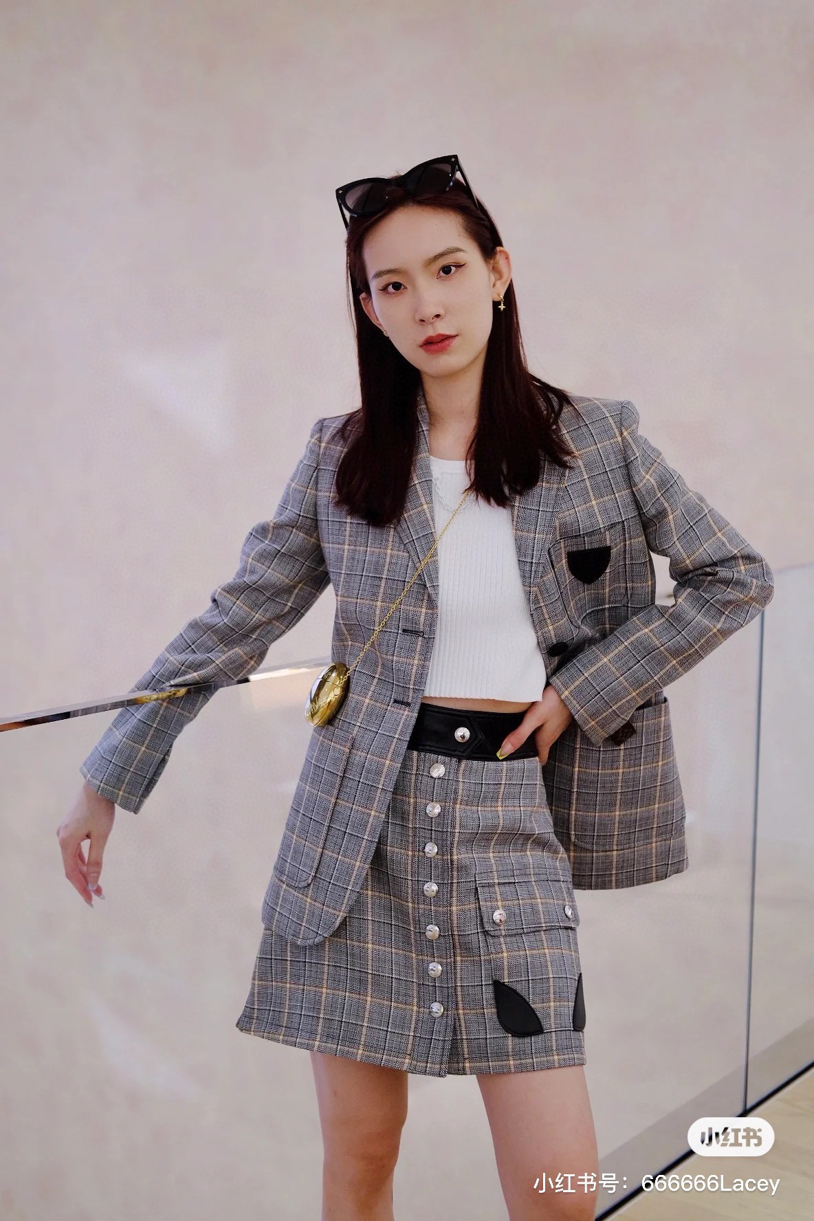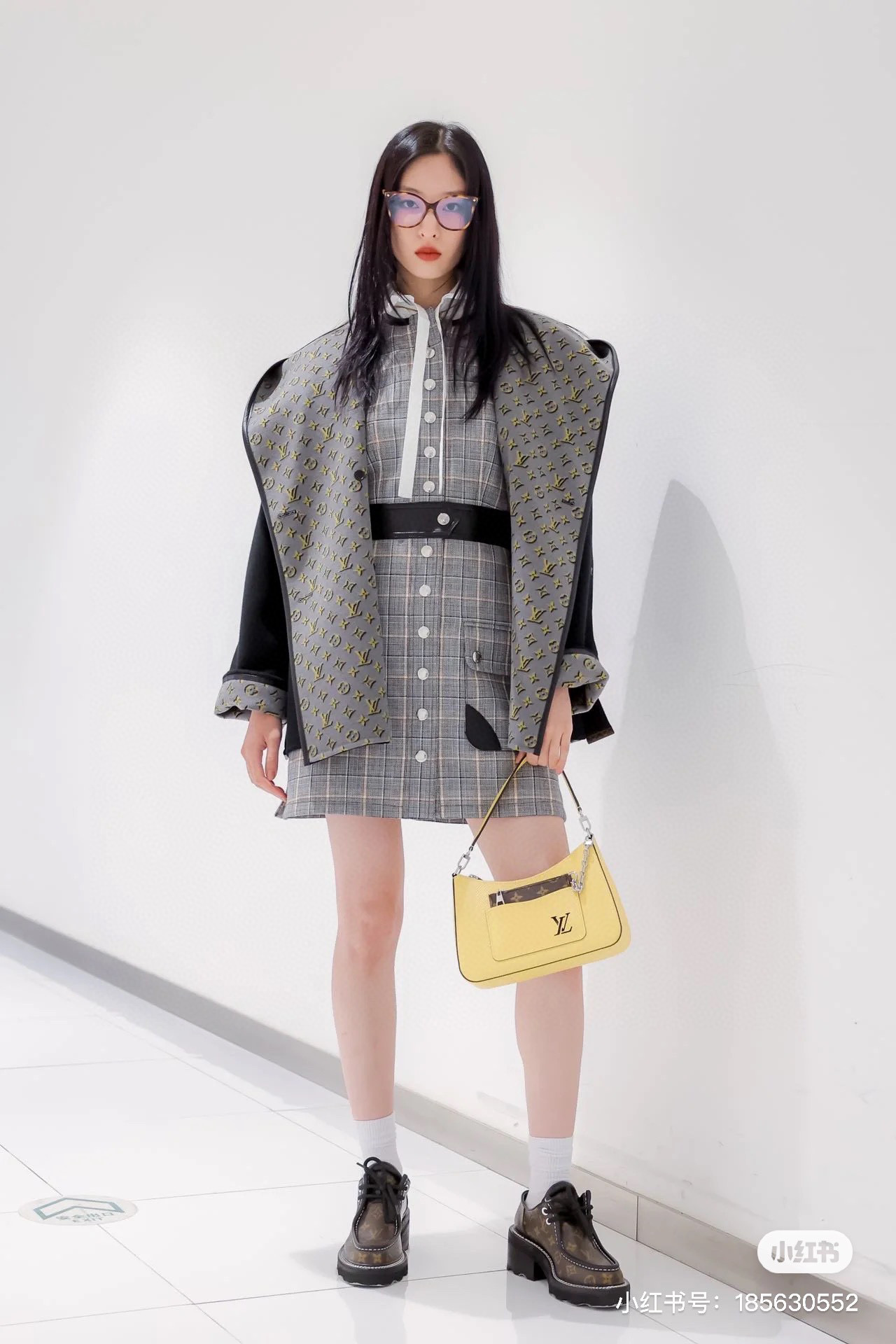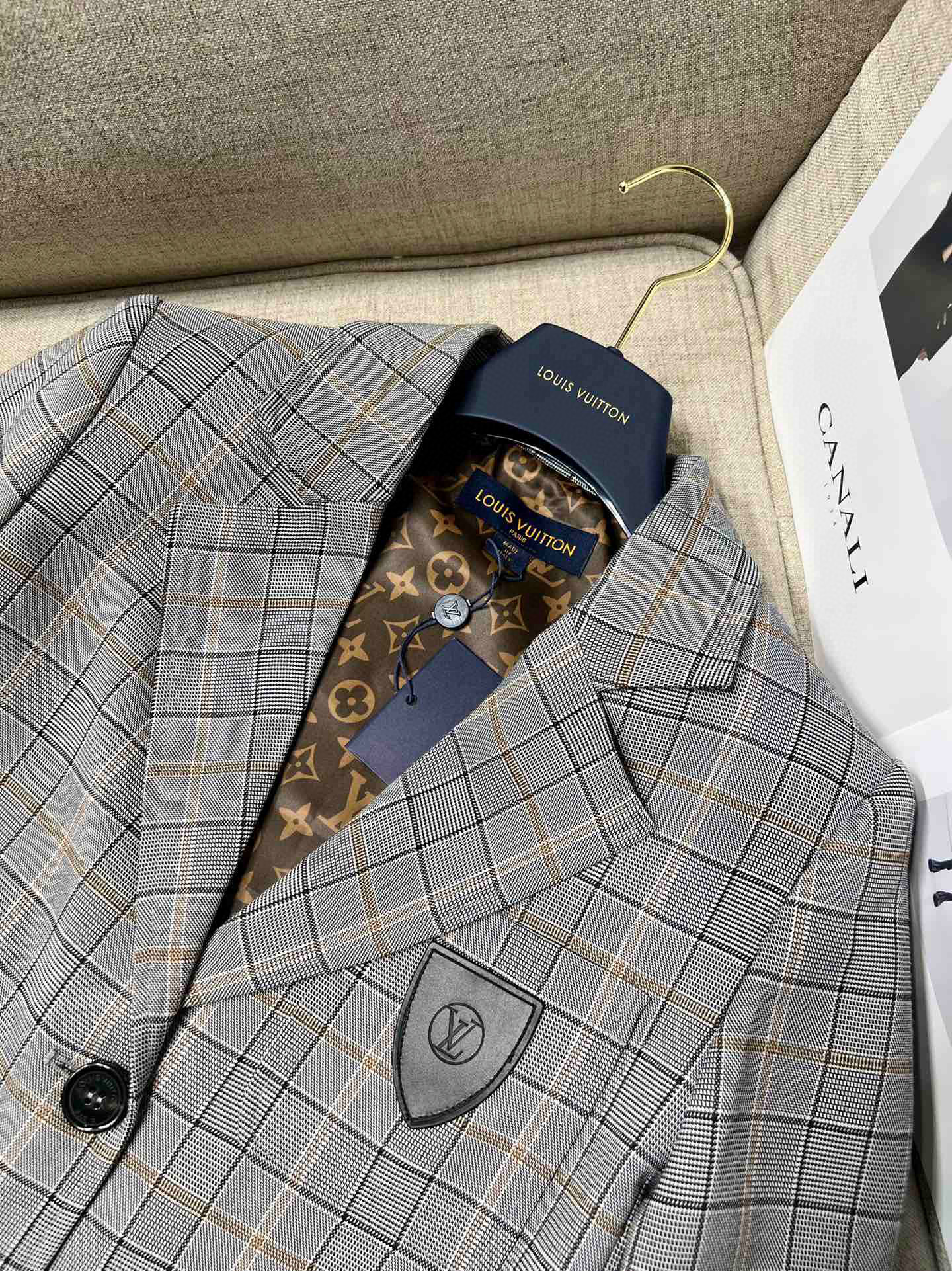 Louis Vuitton Preppy Grey Plaid Long Sleeved Suit Jacket Short Skirt Set #nigo21755