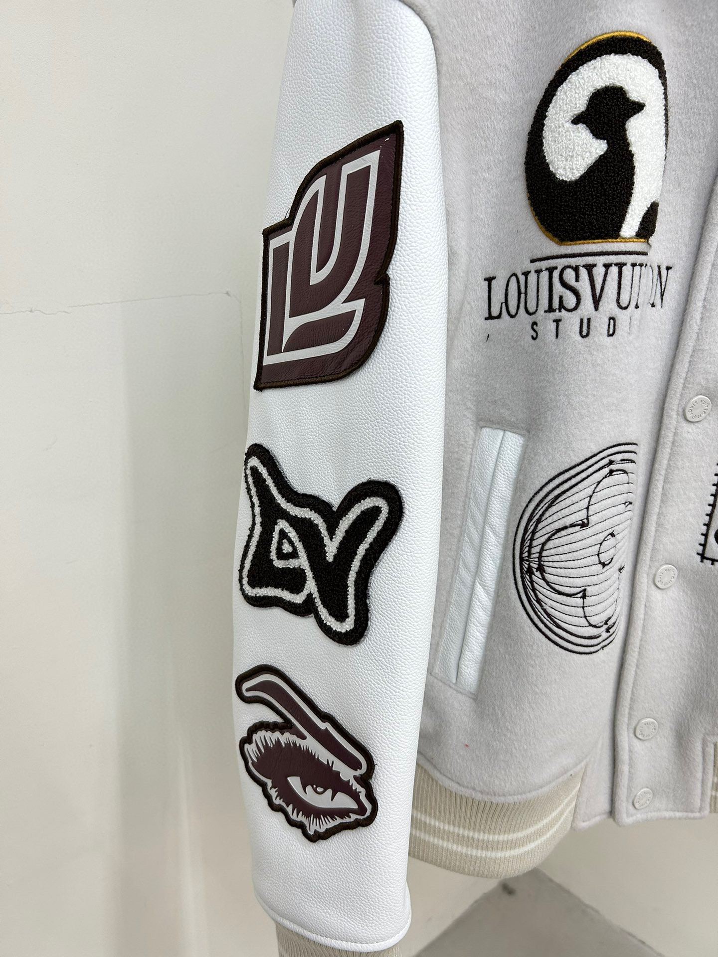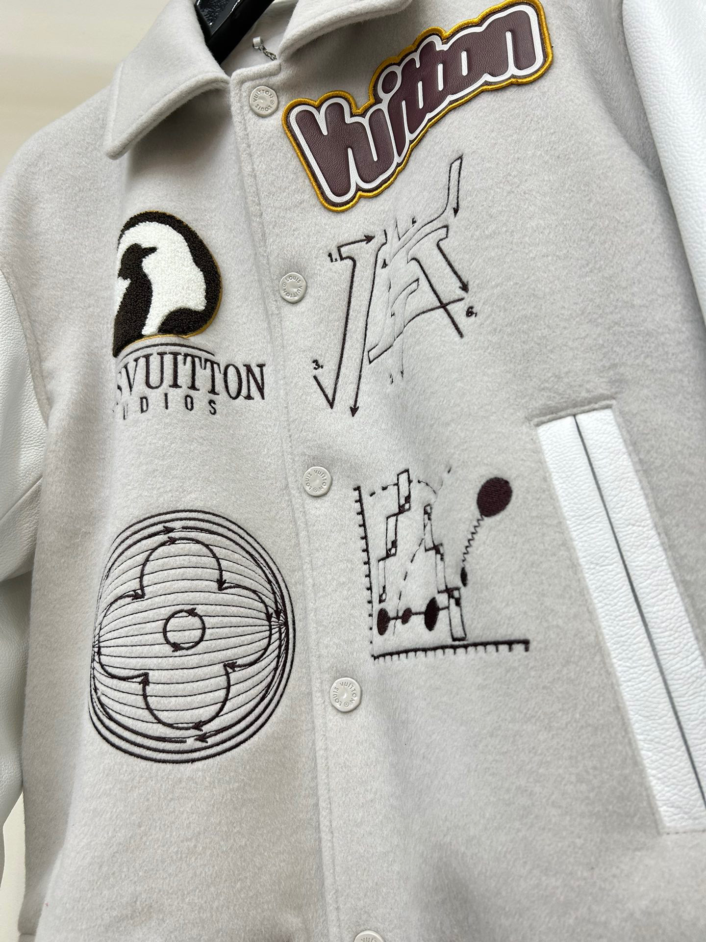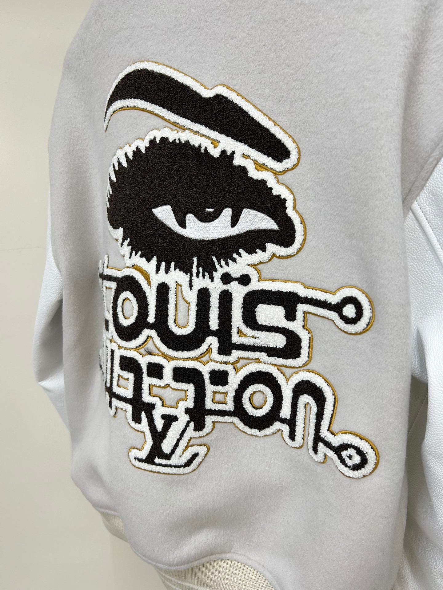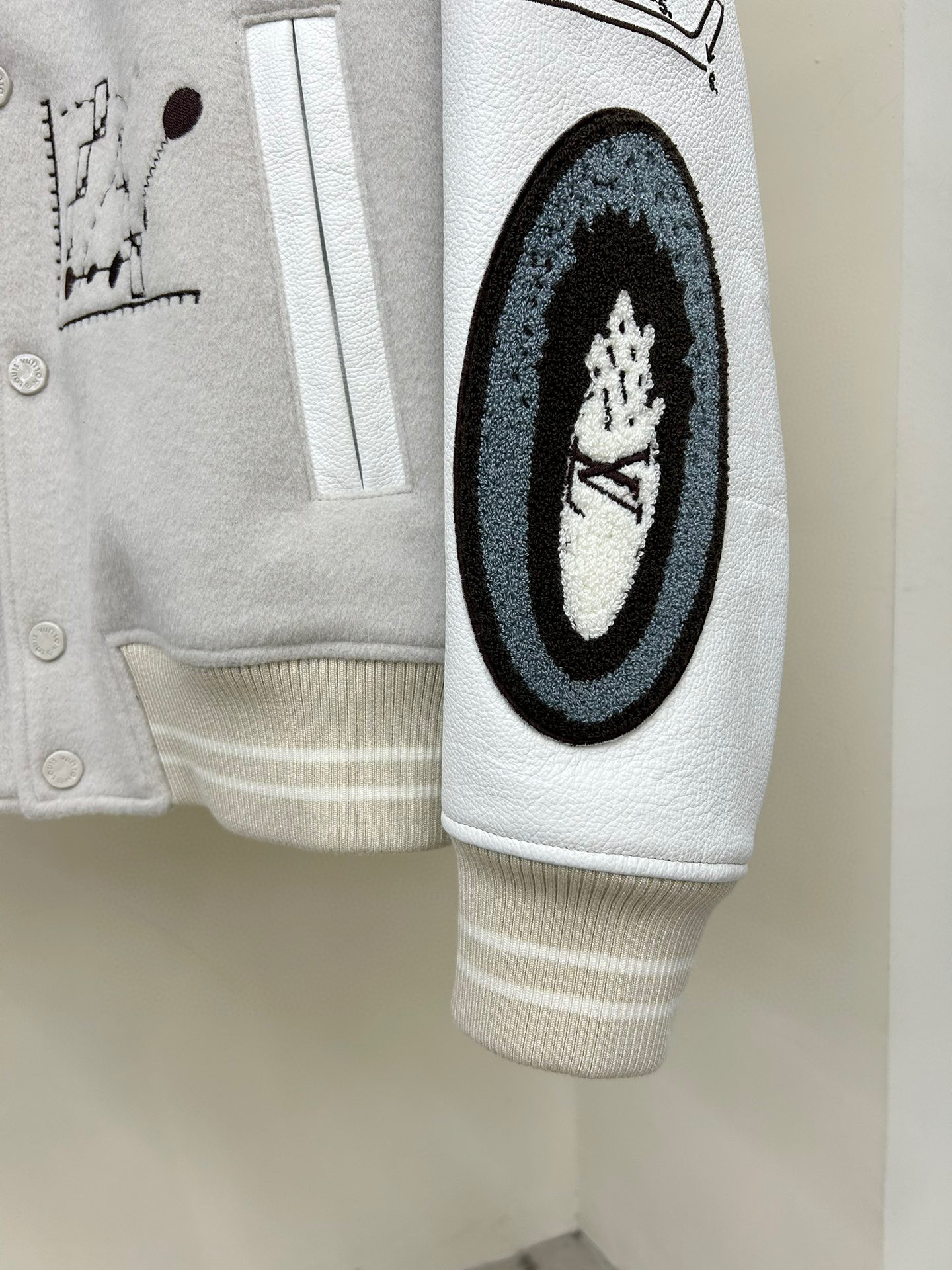Louis Vuitton NIGO Man Tweed Leather Sleeve Patchwork Baseball Jacket #nigo94919