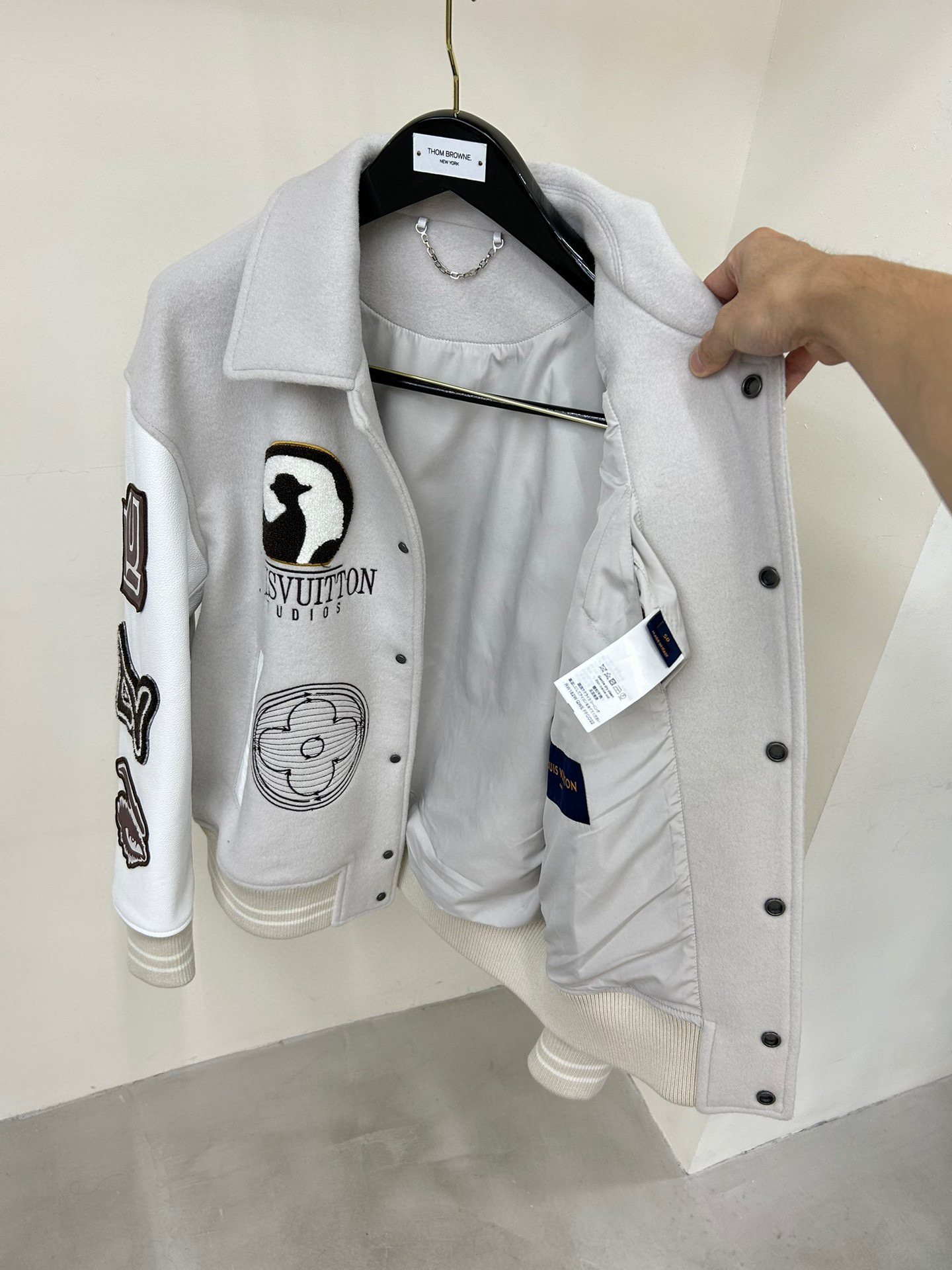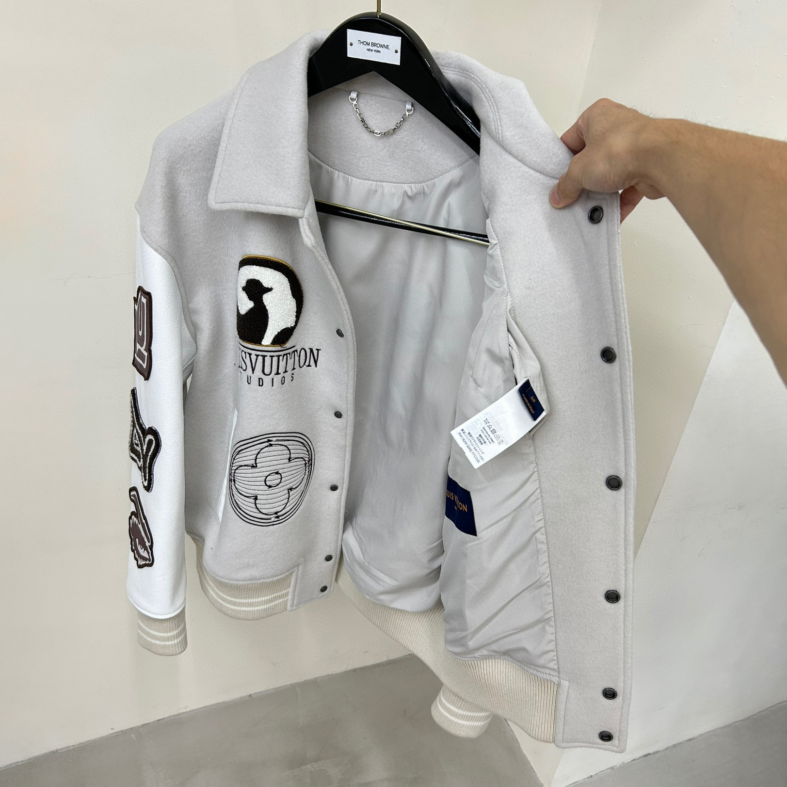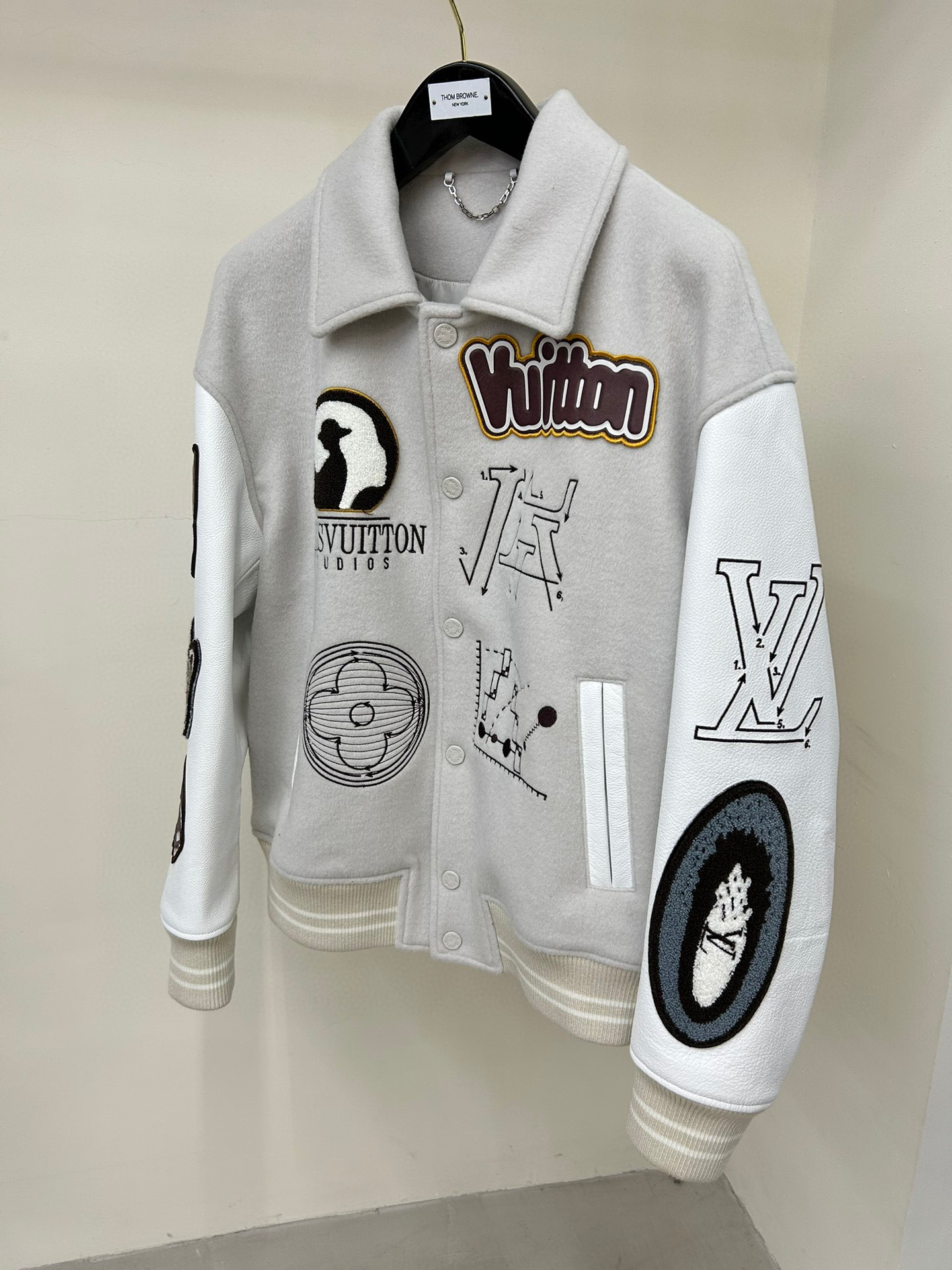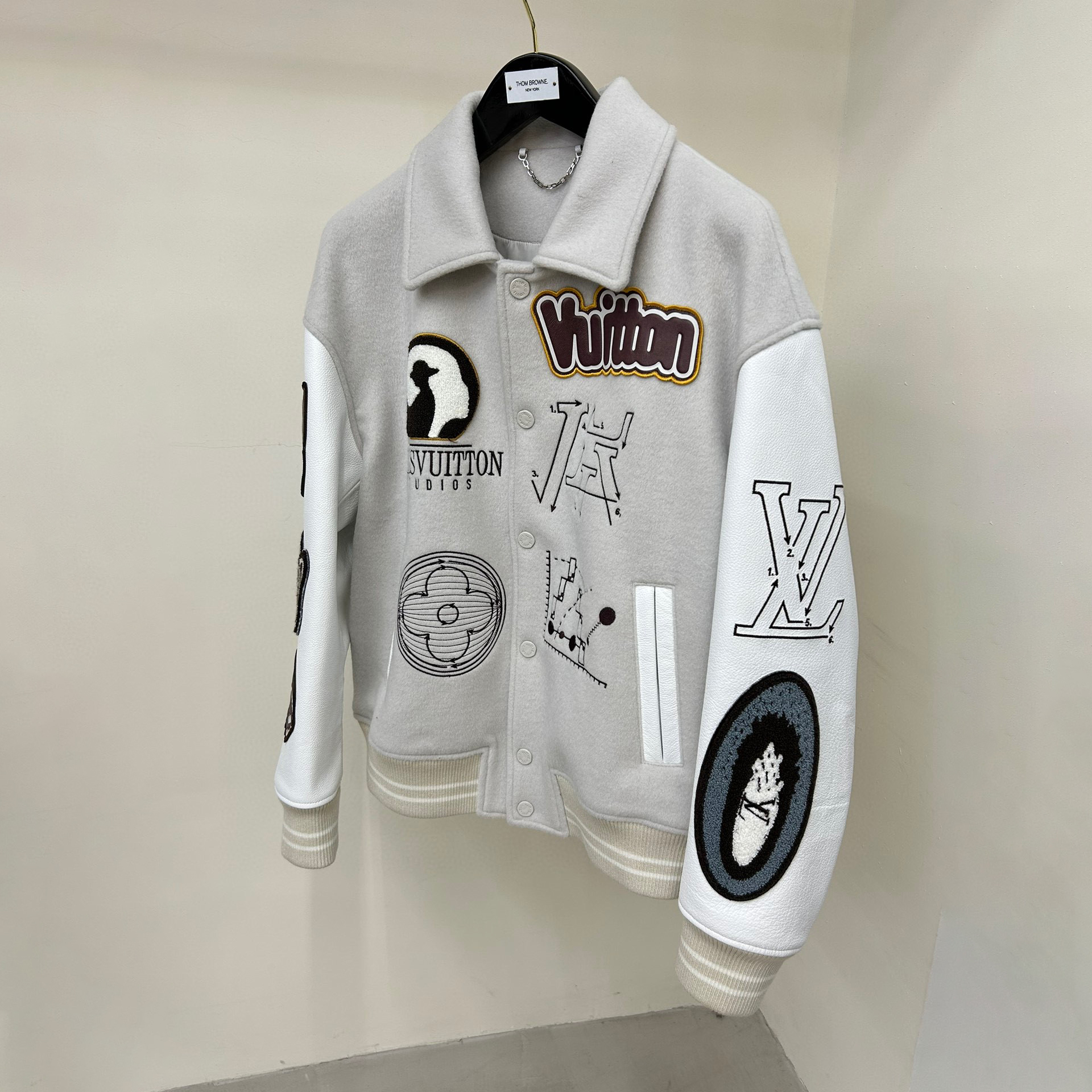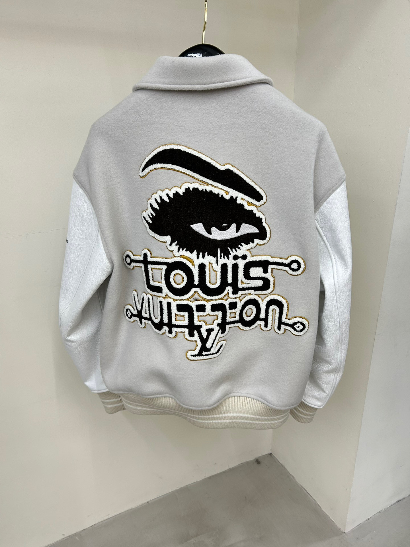 Louis Vuitton NIGO Man Tweed Leather Sleeve Patchwork Baseball Jacket #nigo94919