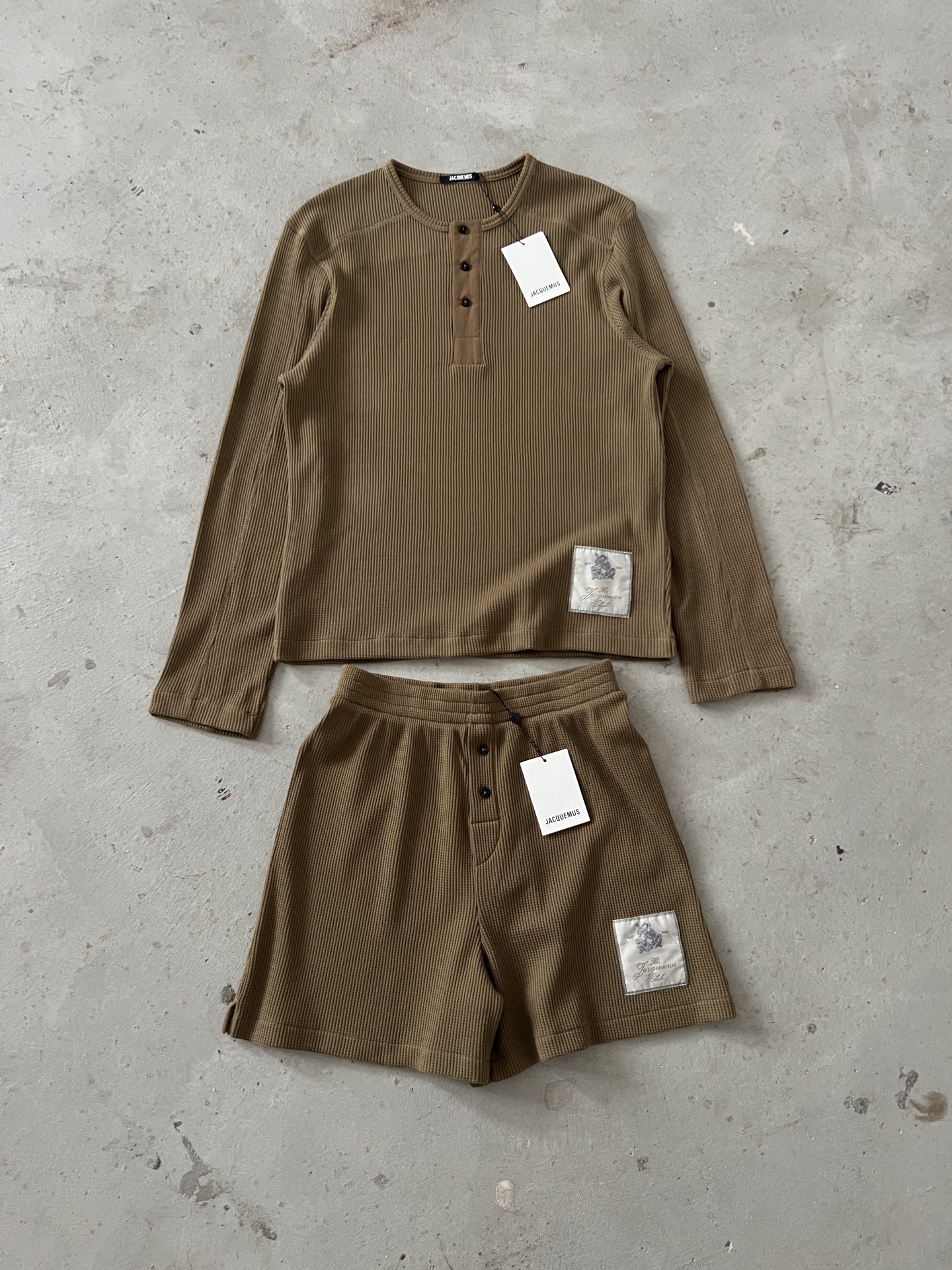 NIGO Jacquemus The Melao Waffle Pattern Vacation Fashion Set Men's Spring/summer Long-sleeved Fashionable Casual Comfortable Logo Patch T-shirt Shorts Ngvp #nigo2184