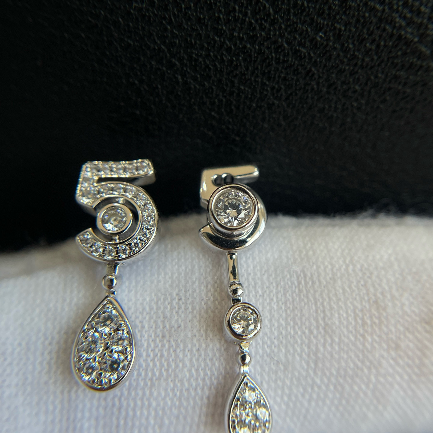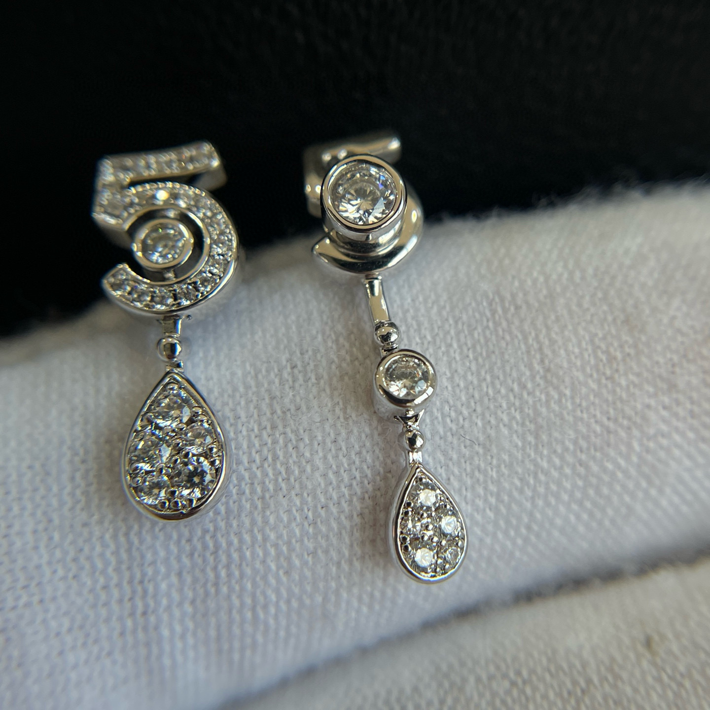 NIGO Chanel ETERNAL N°5 Women's Fashion Classic Teardrop Diamond Earrings Lucky Number 5 Asymmetrical Design Stud Jewelry Accessories #nigo79466