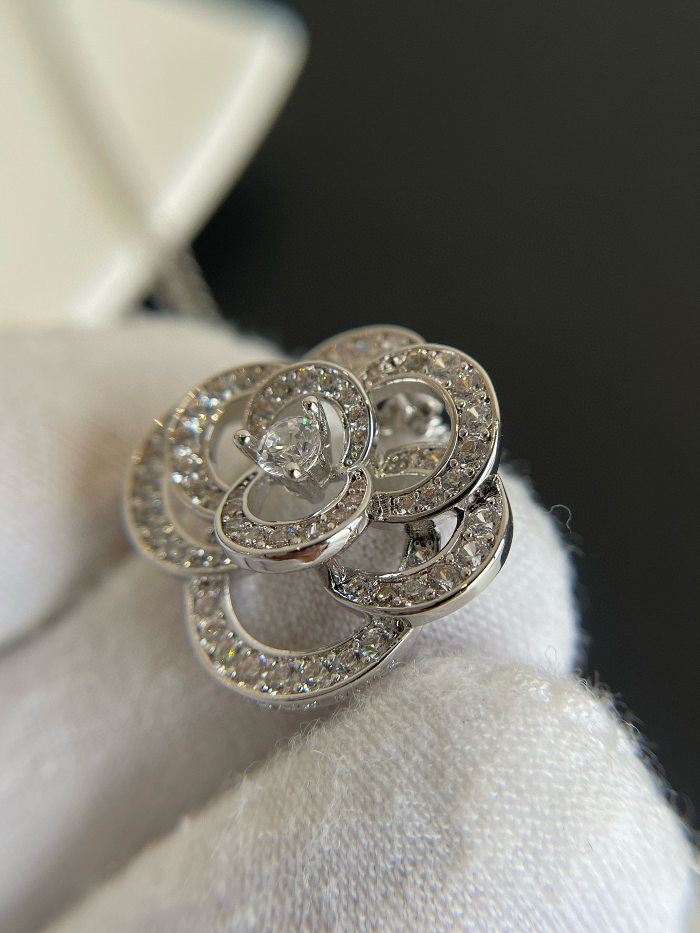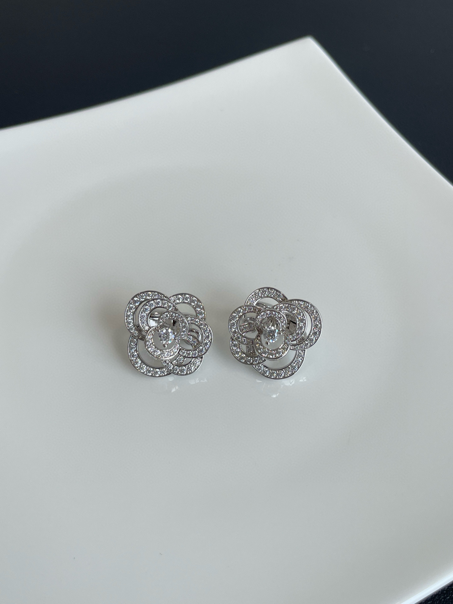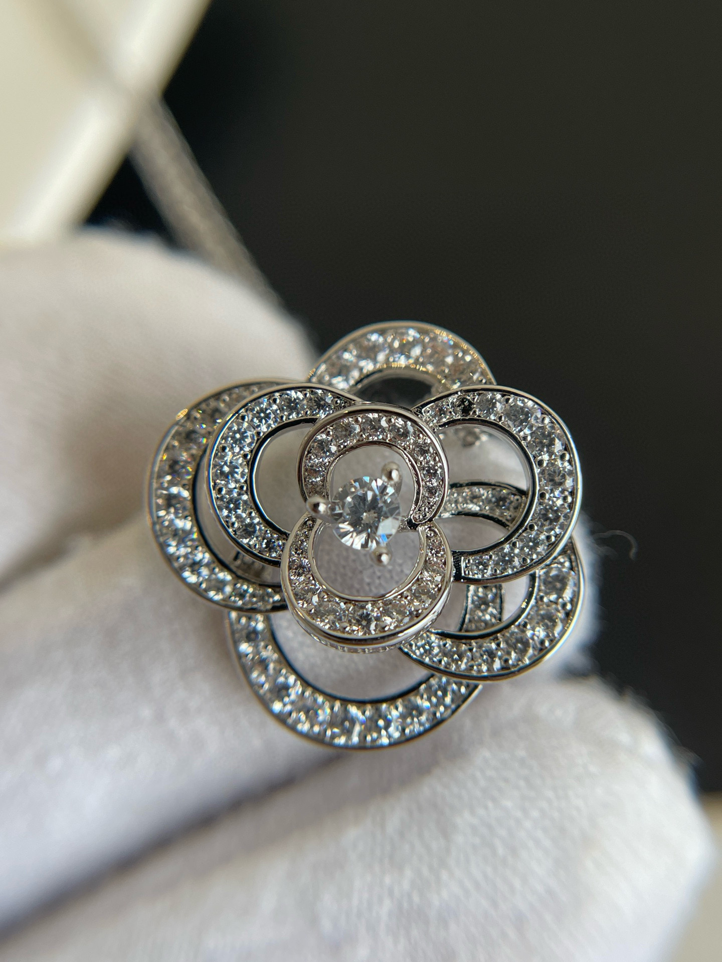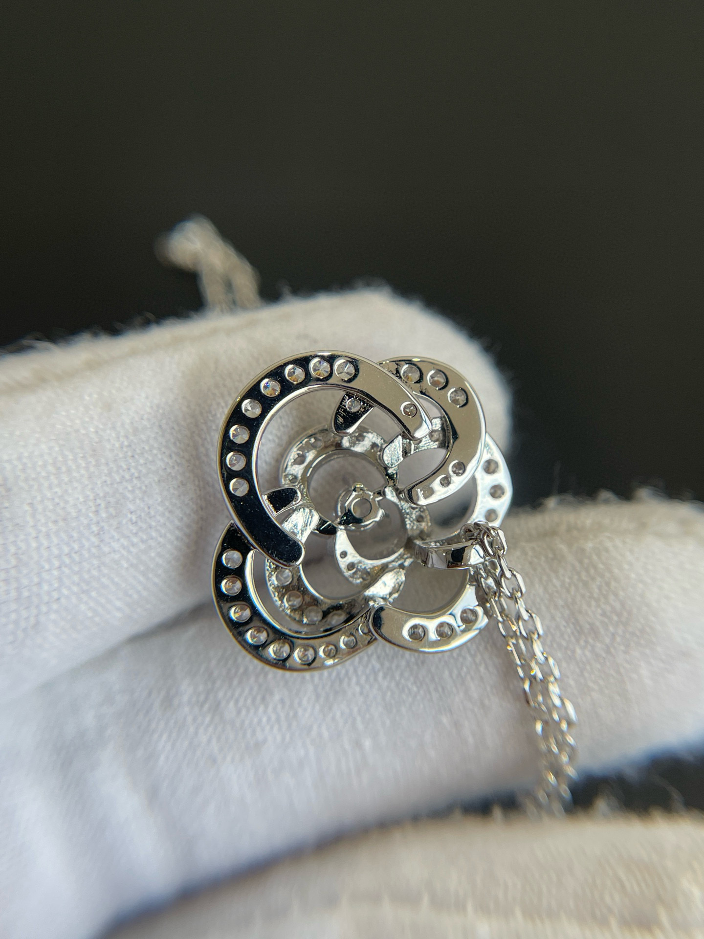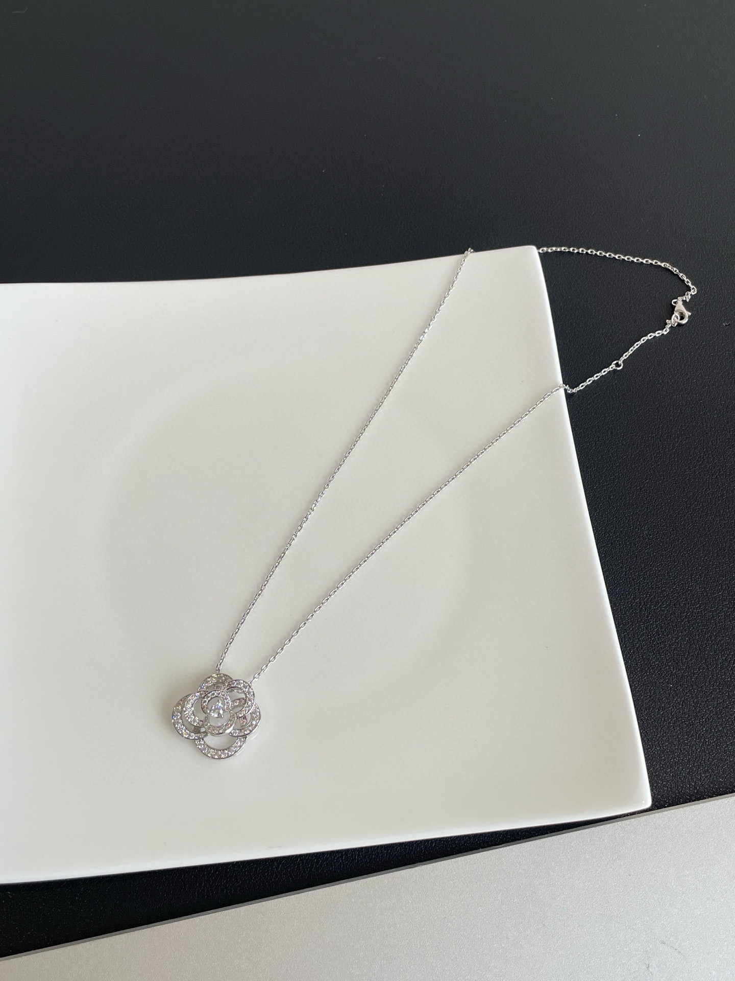 NIGO Chanel FIL DE CAMÉLIA Women's Silver Diamond-Studded Openwork Floral Design Necklace and Earrings Jewellery Accessories #nigo76967