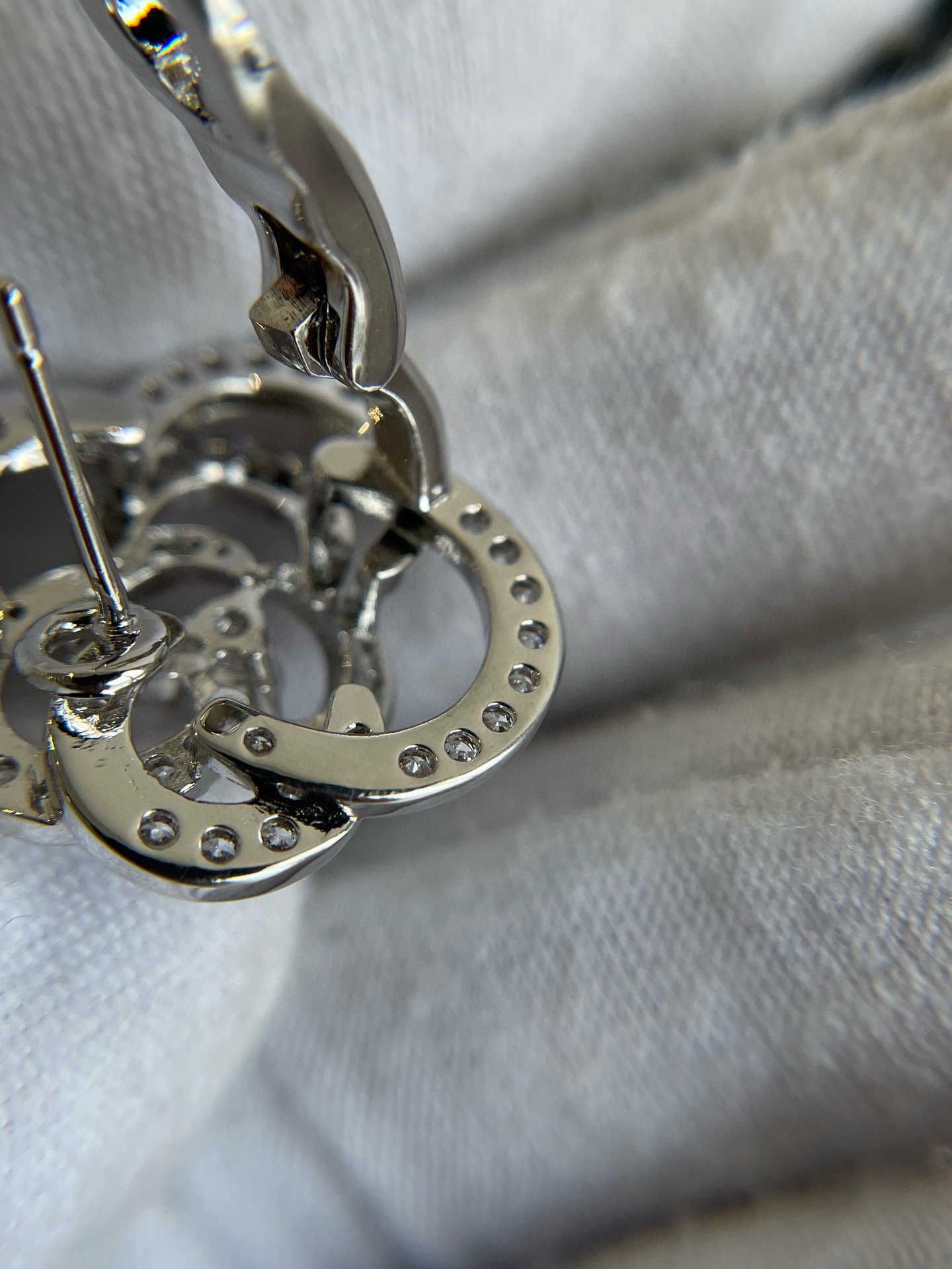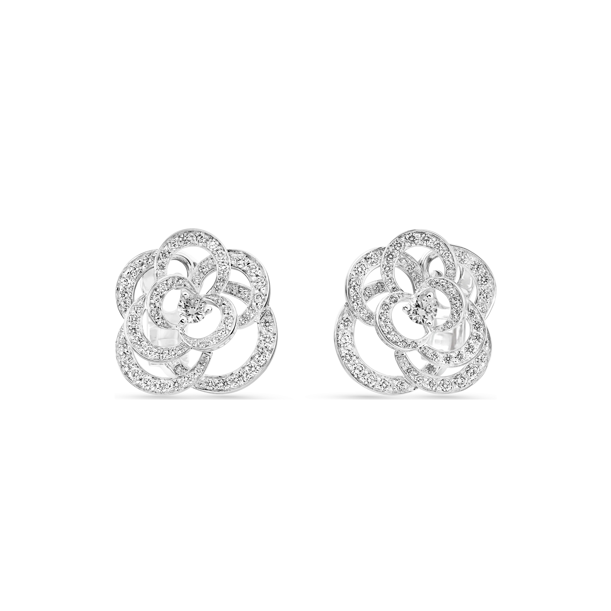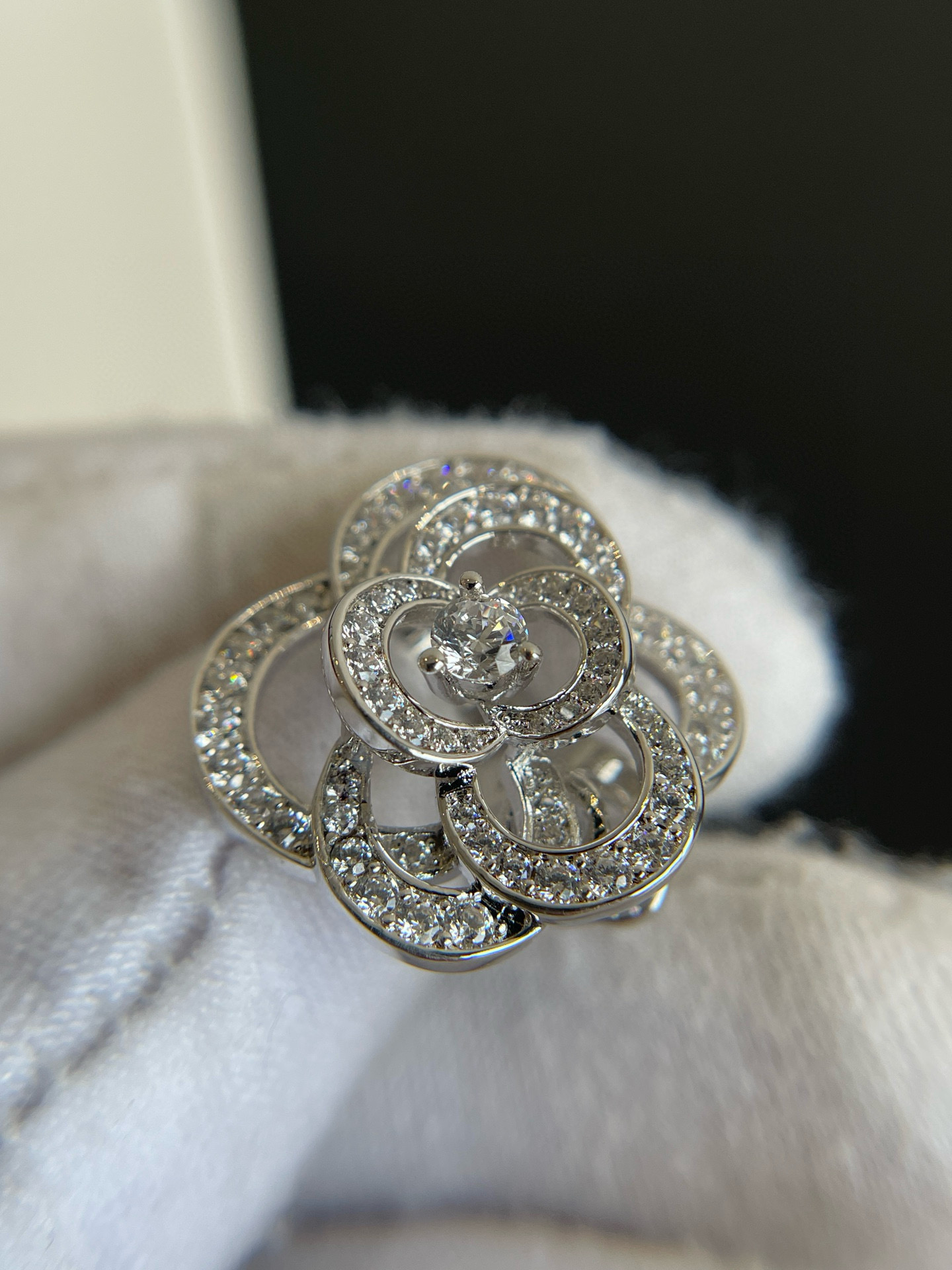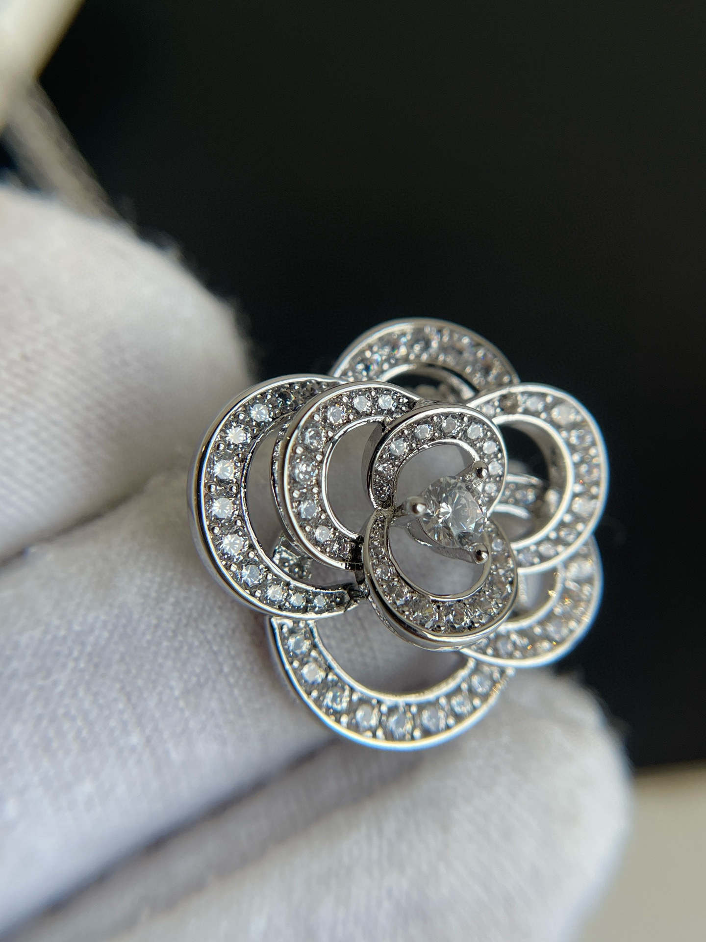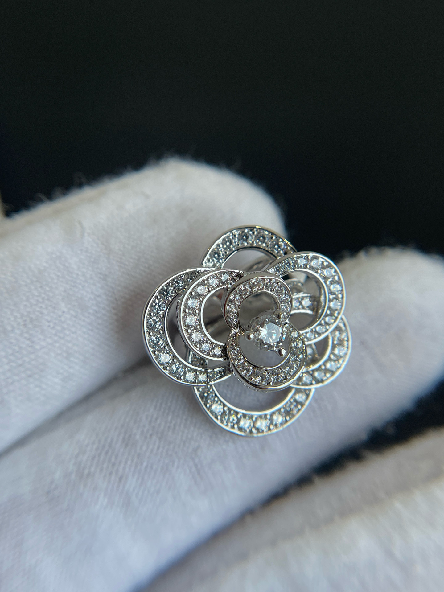 NIGO Chanel FIL DE CAMÉLIA Women's Silver Diamond-Studded Openwork Floral Design Necklace and Earrings Jewellery Accessories #nigo76967