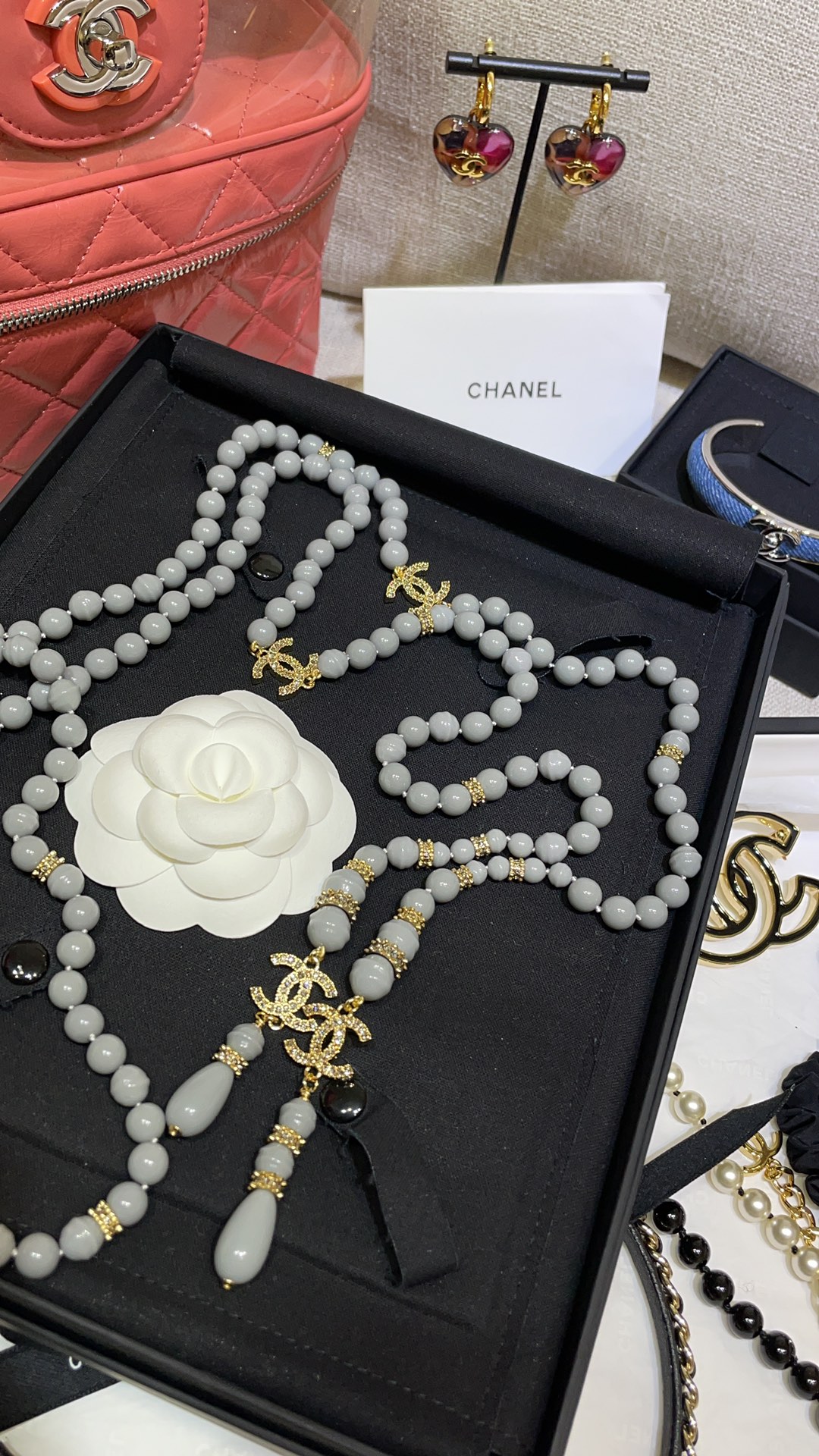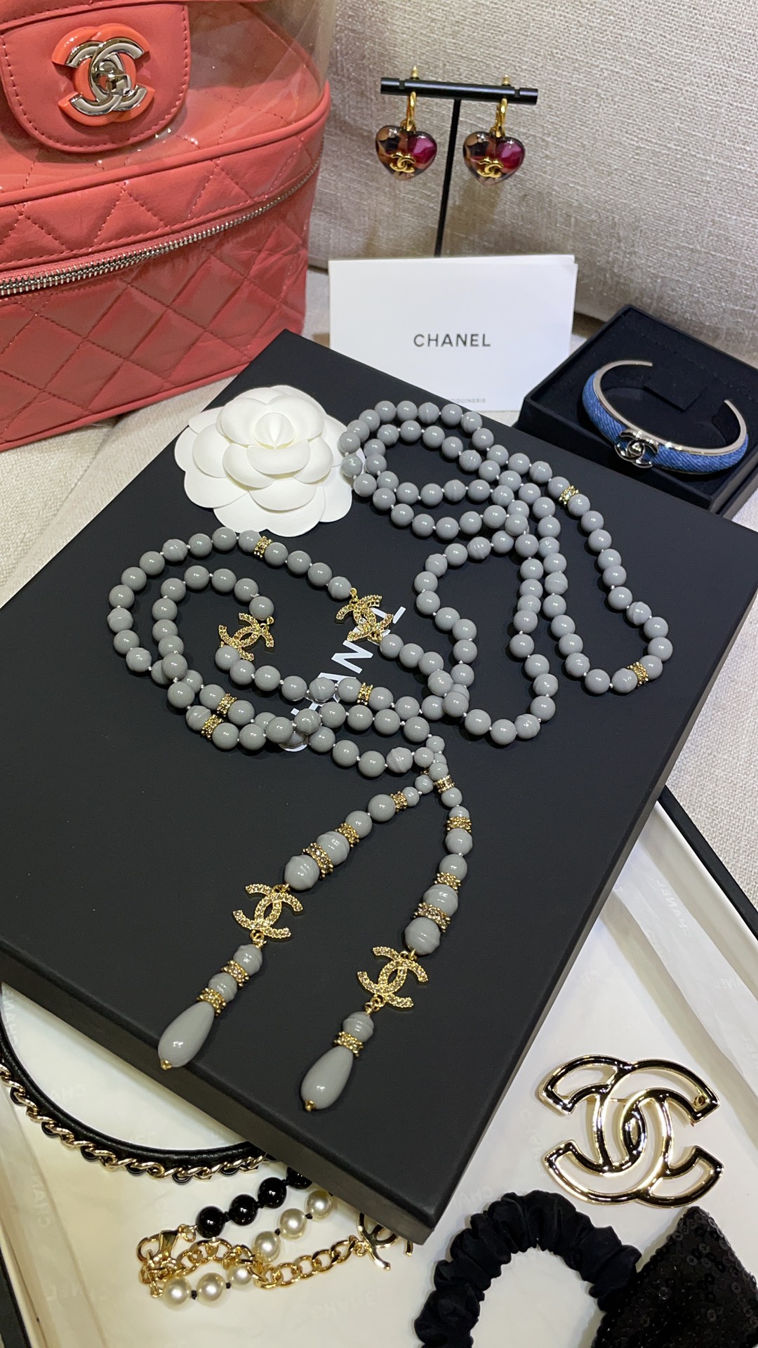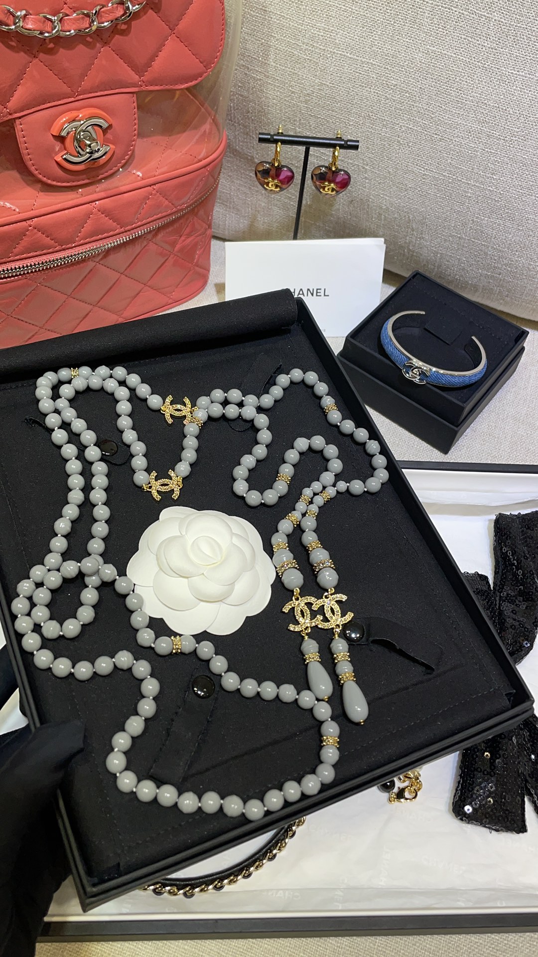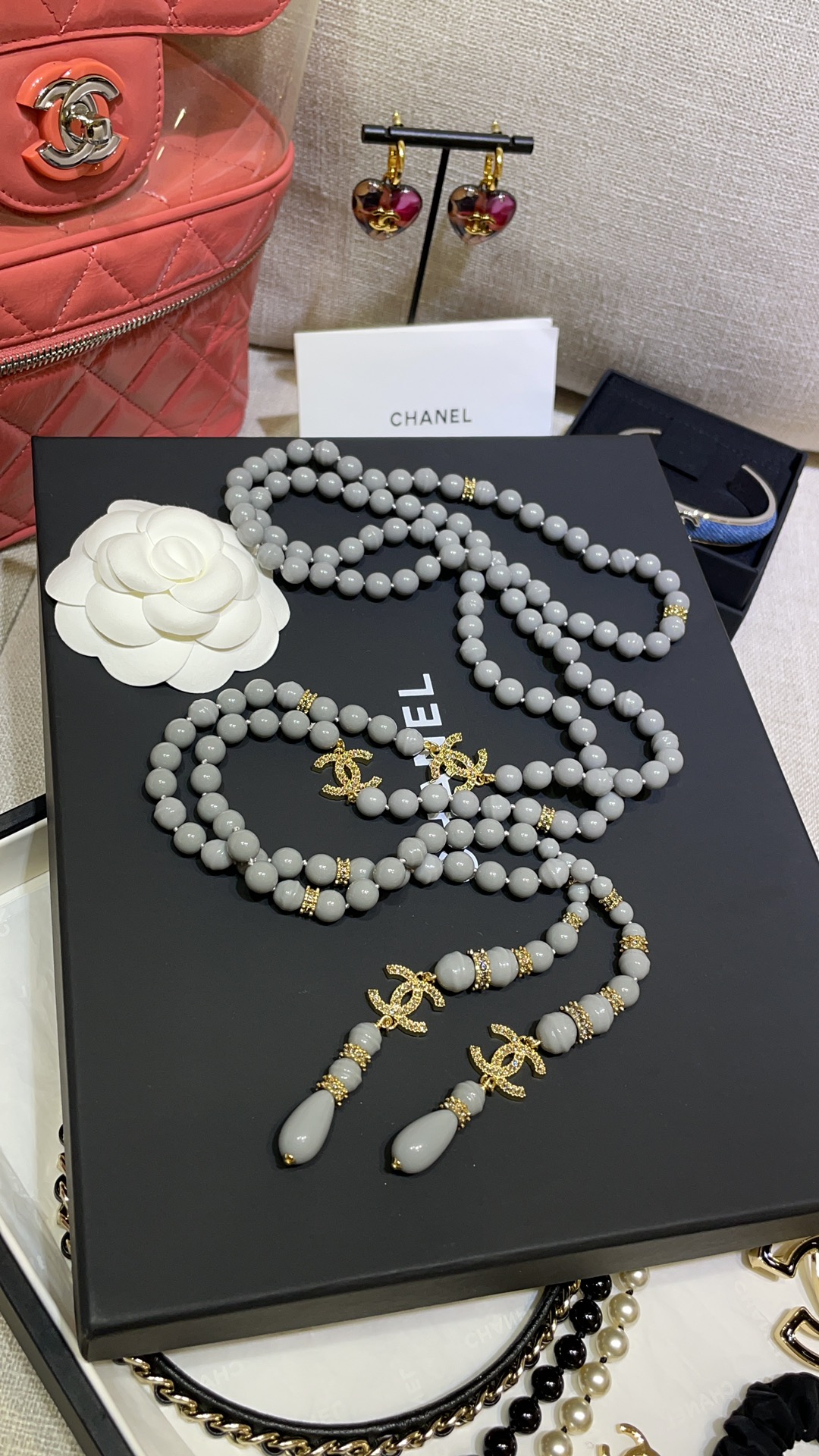 NIGO Chanel Women's And Men's Classic Fashion Patchwork Double C Metal Design Extra Long Pearl Knotted Chain Sweater Chain Necklace Accessories Jewelry #nigo78339