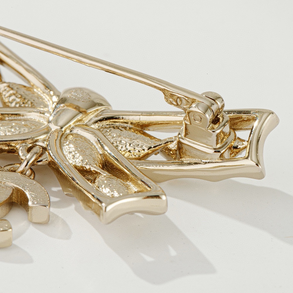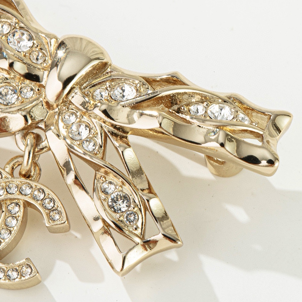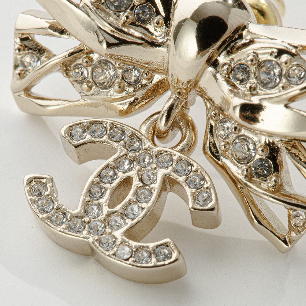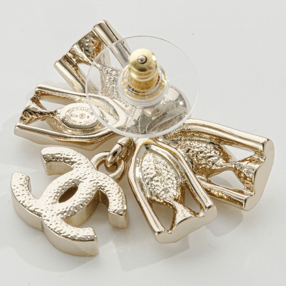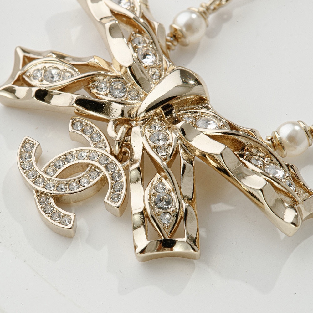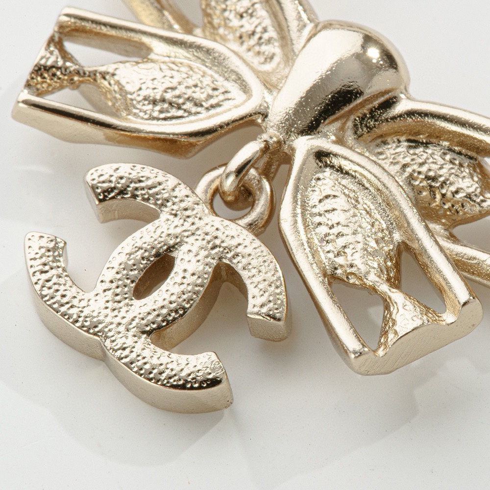 NIGO Chanel Women's Gold Bow Double C Pendant Metal Shape Pearl Chain Necklace Earrings Brooch Jewelry #nigo73738