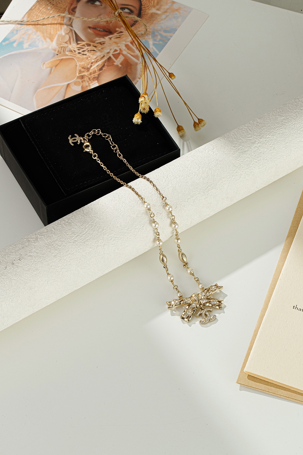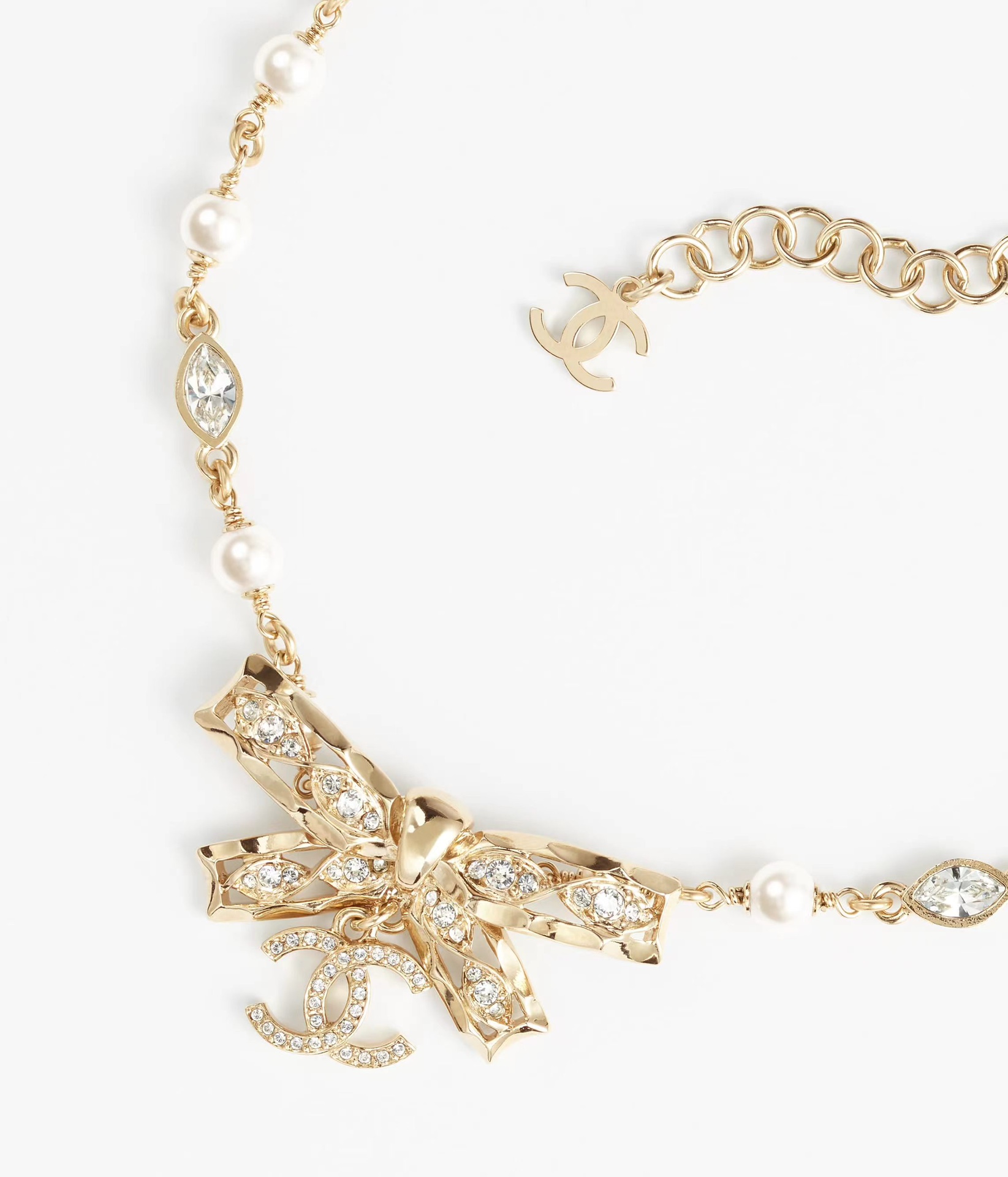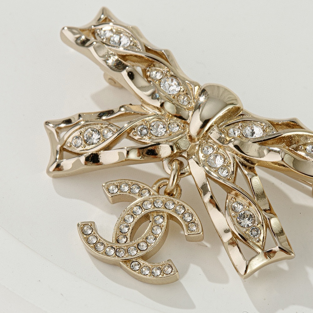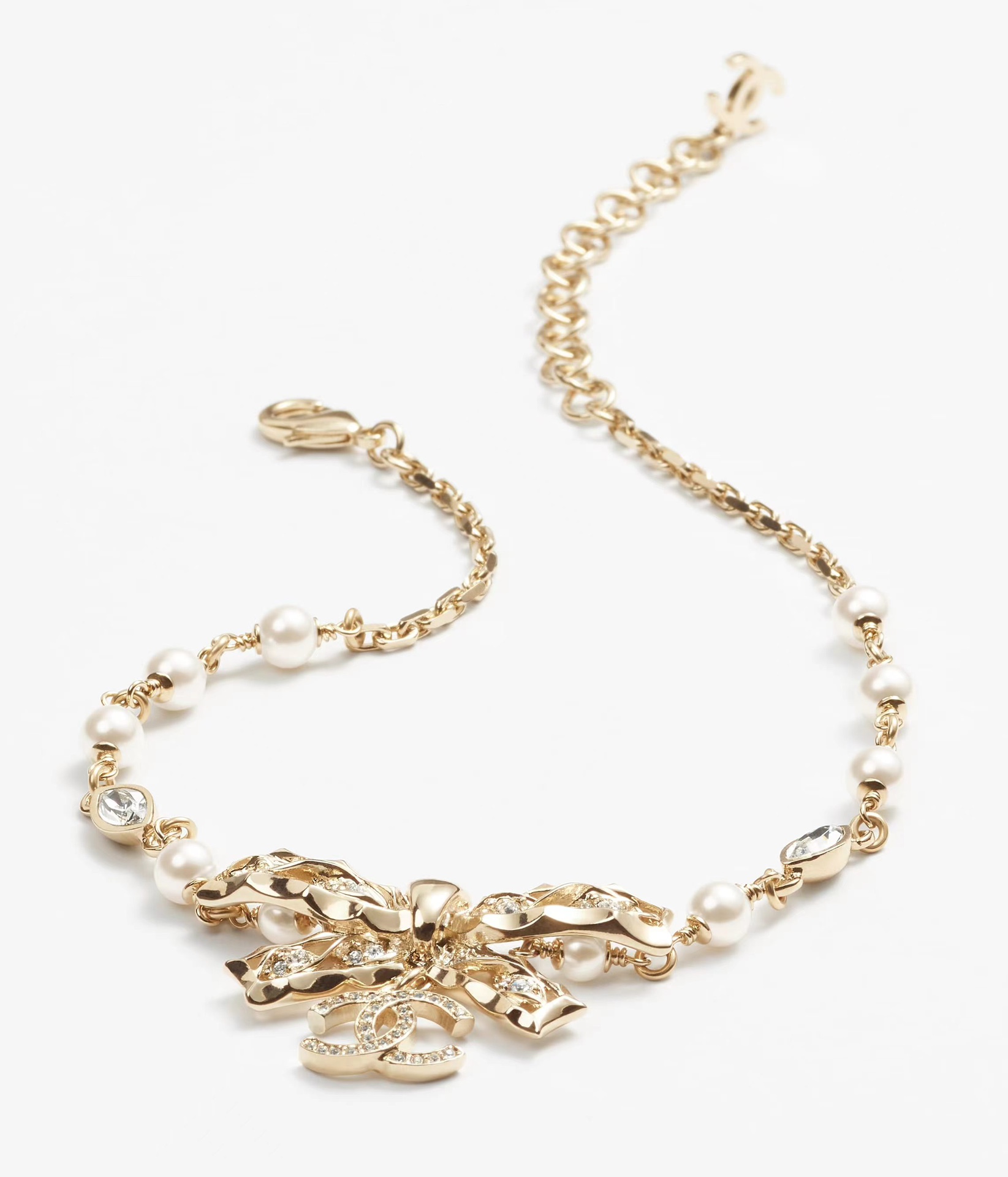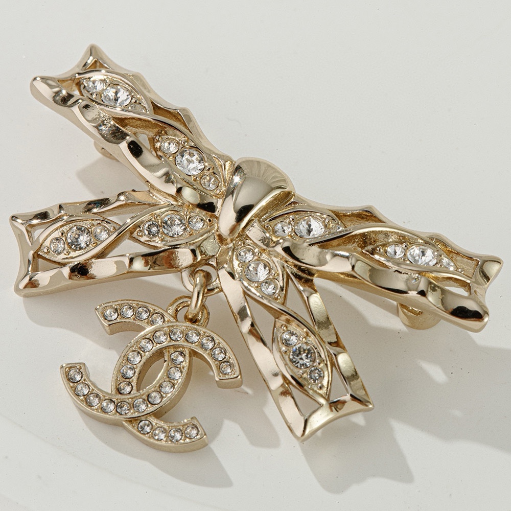 NIGO Chanel Women's Gold Bow Double C Pendant Metal Shape Pearl Chain Necklace Earrings Brooch Jewelry #nigo73738