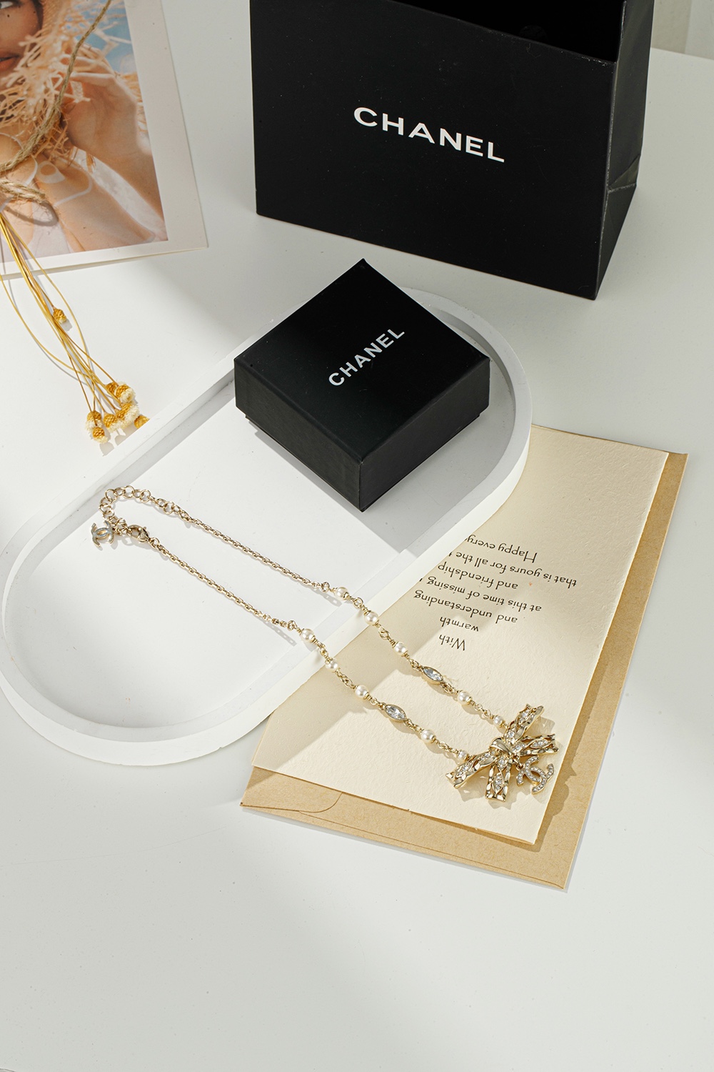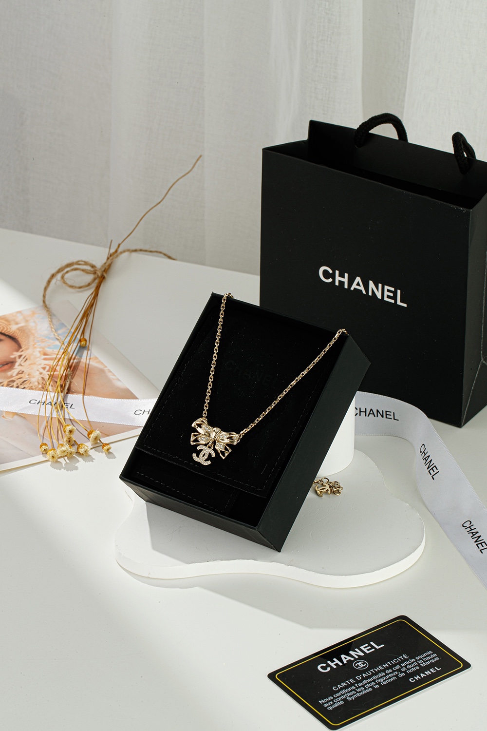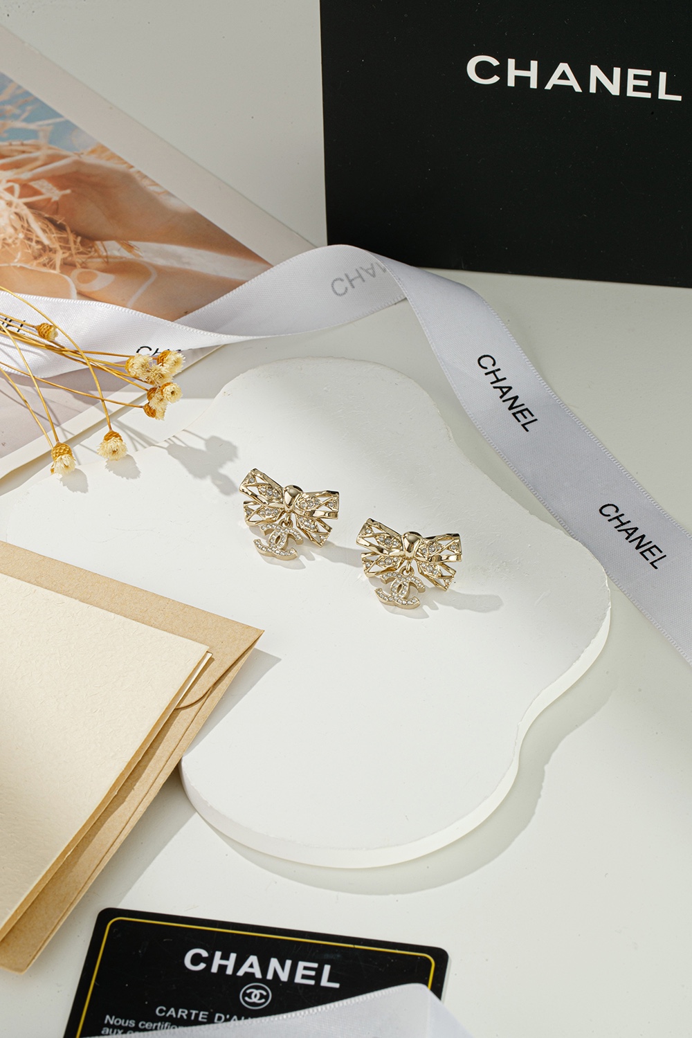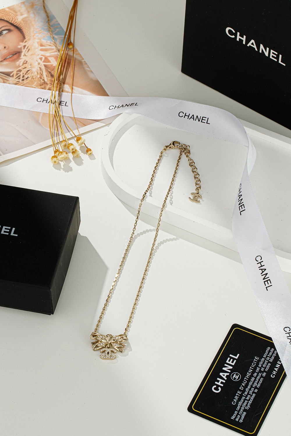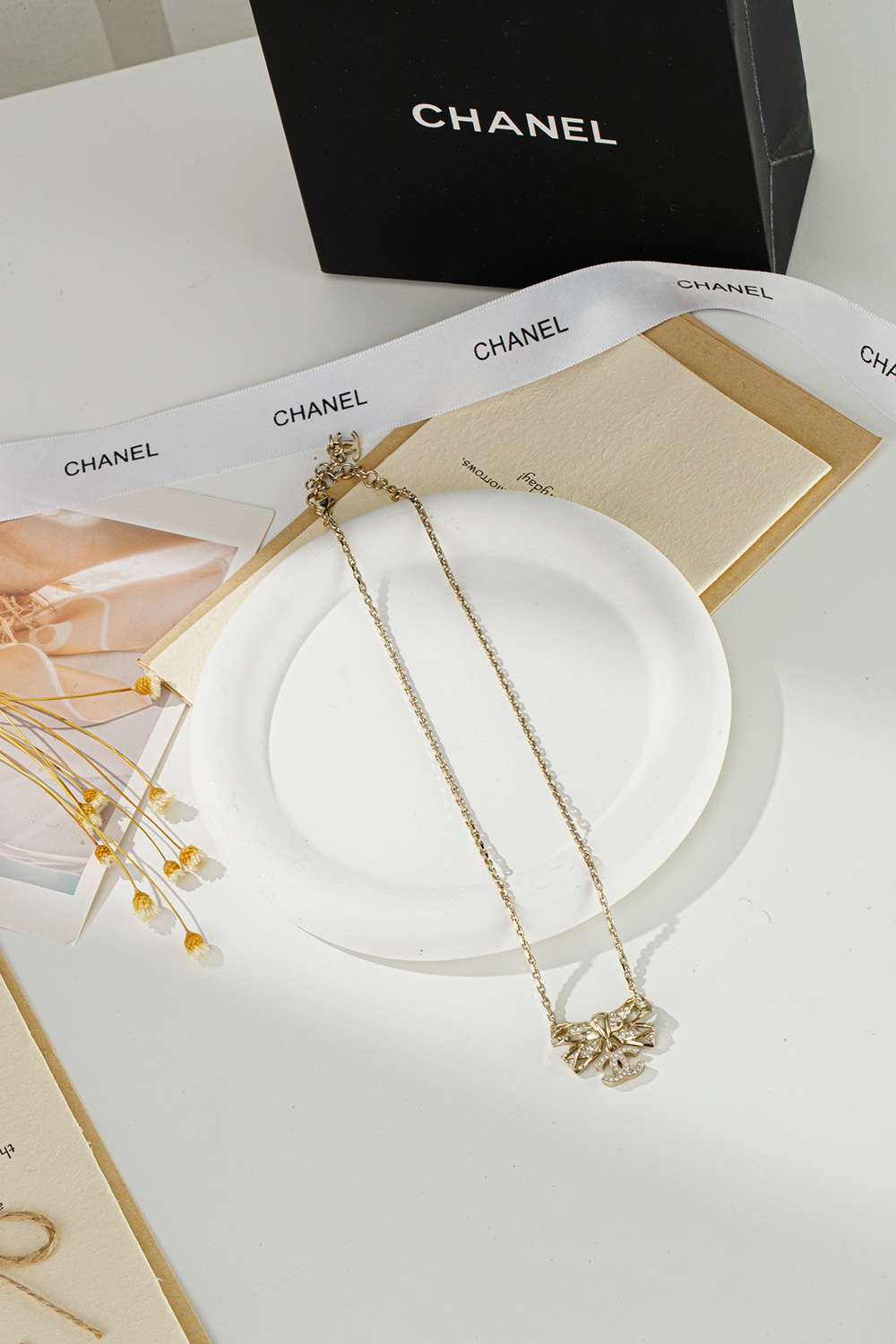 NIGO Chanel Women's Gold Bow Double C Pendant Metal Shape Pearl Chain Necklace Earrings Brooch Jewelry #nigo73738