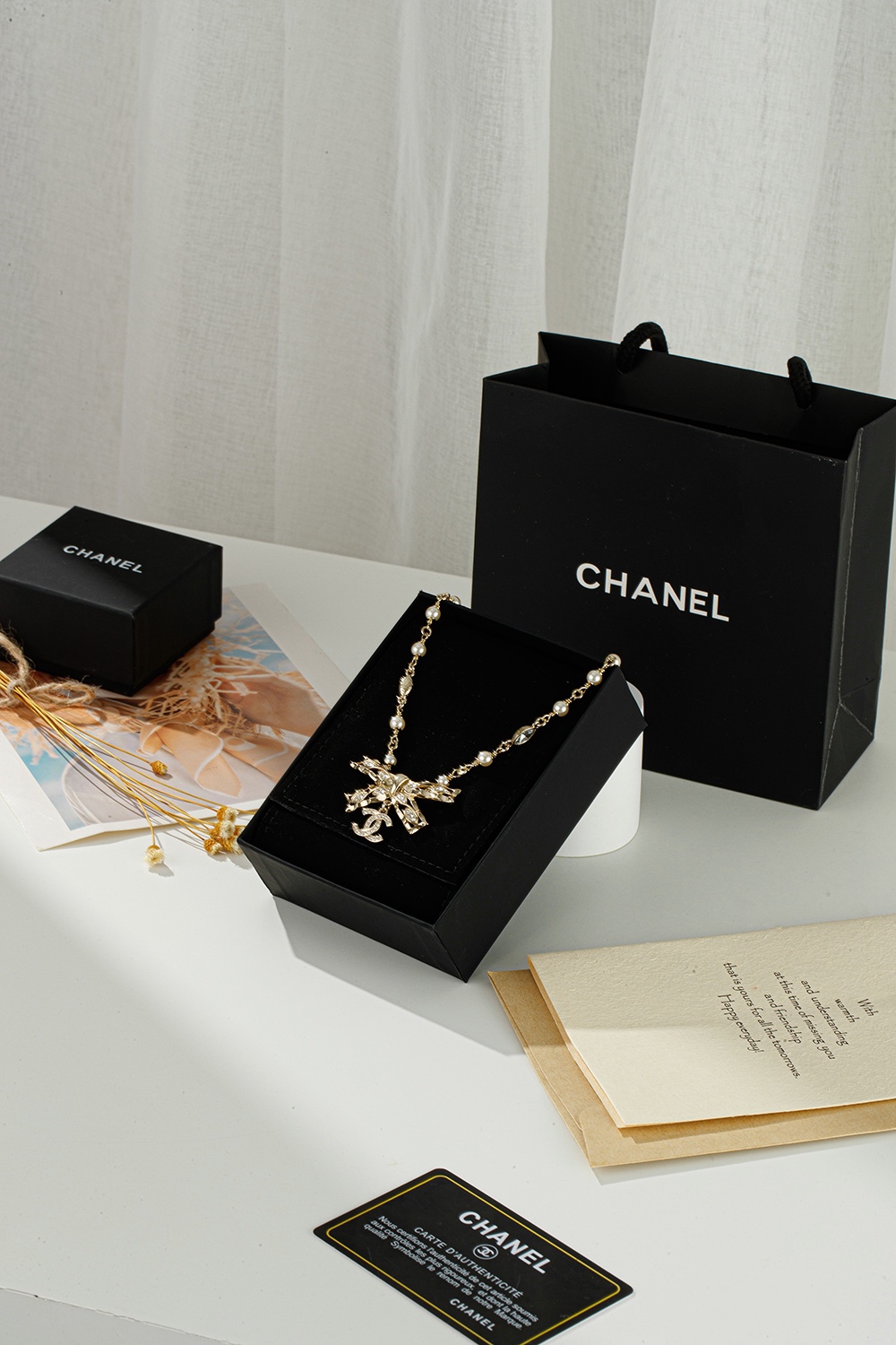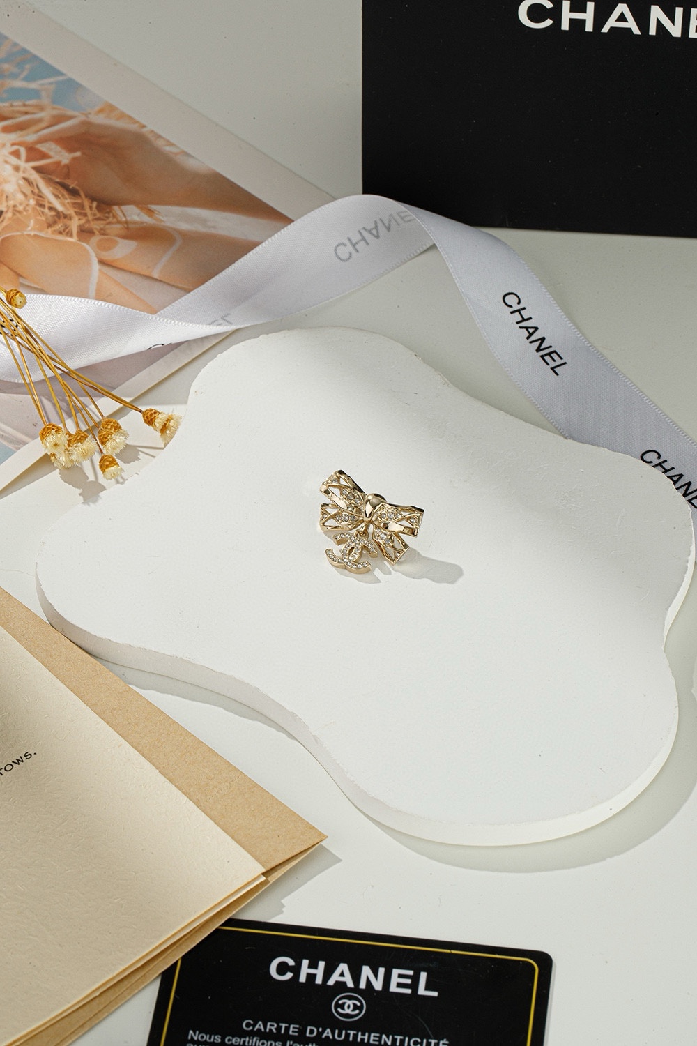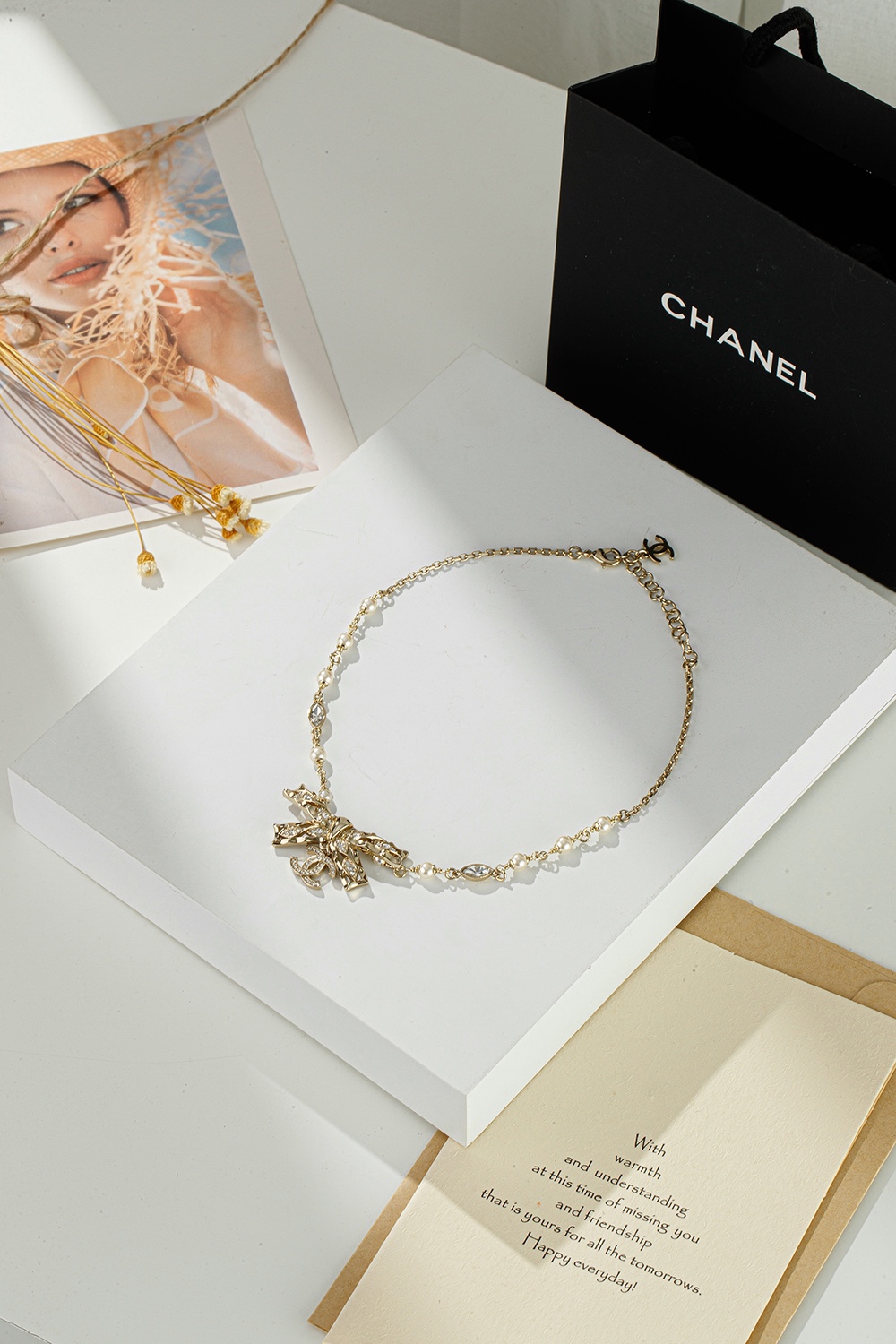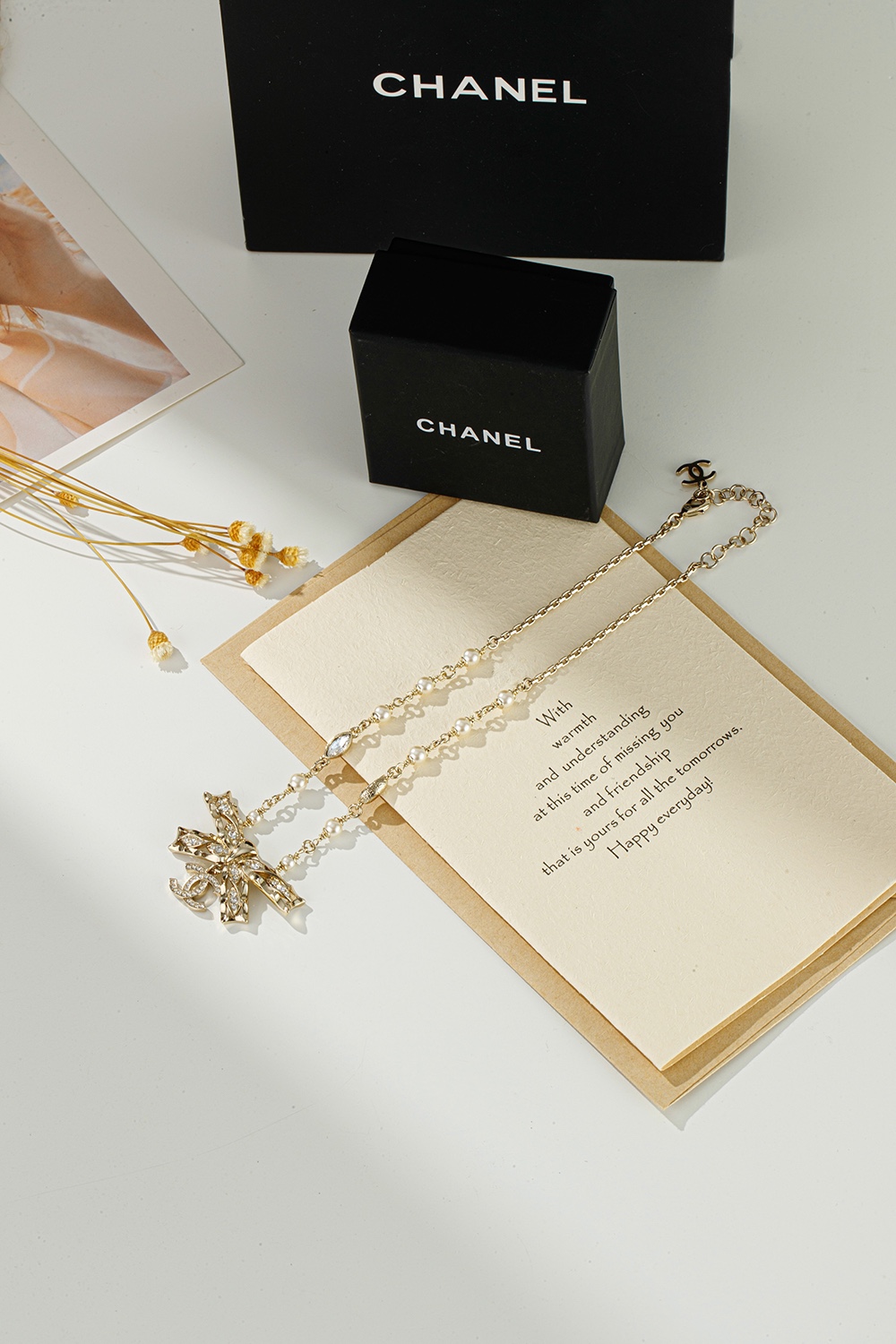 NIGO Chanel Women's Gold Bow Double C Pendant Metal Shape Pearl Chain Necklace Earrings Brooch Jewelry #nigo73738