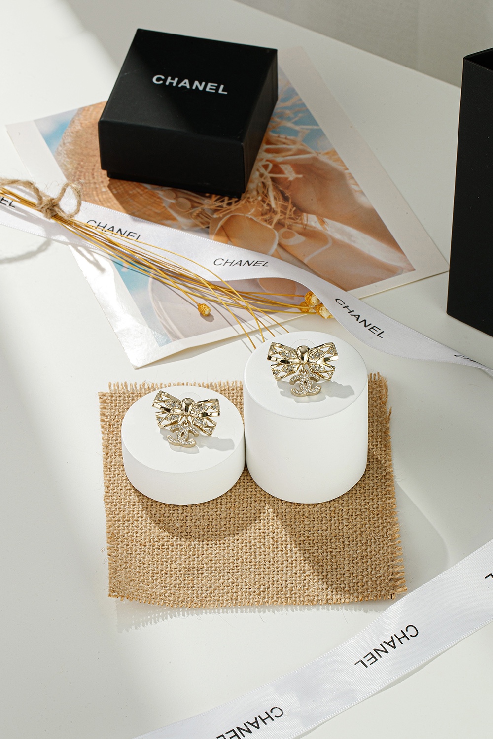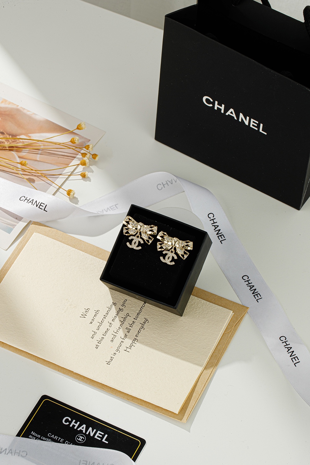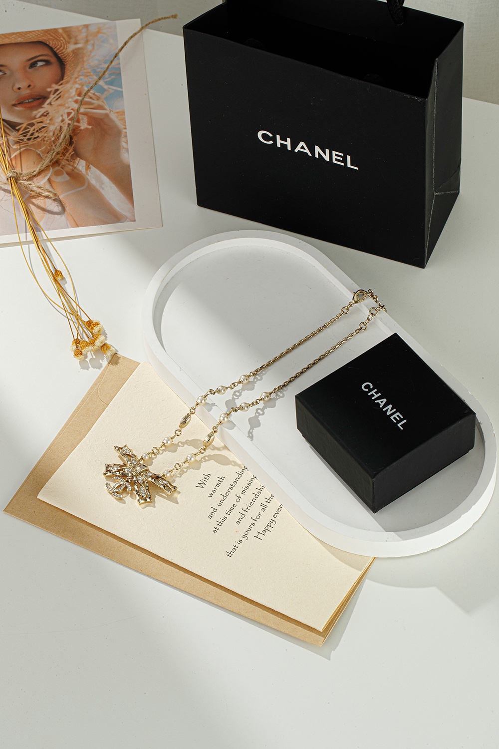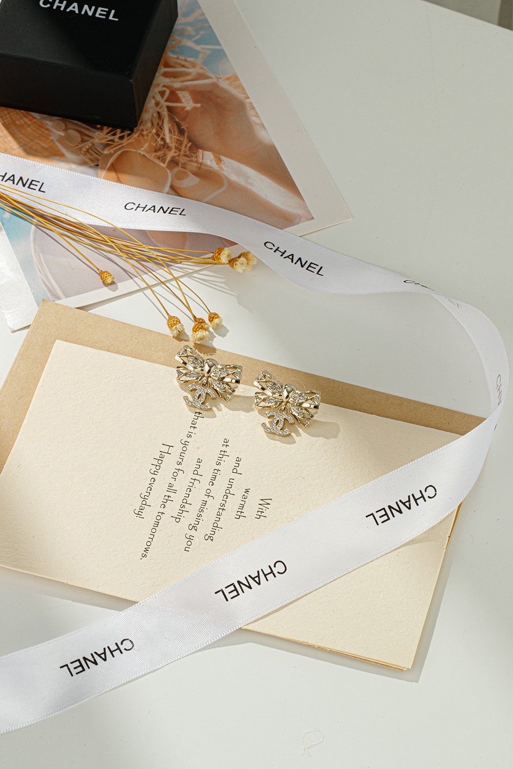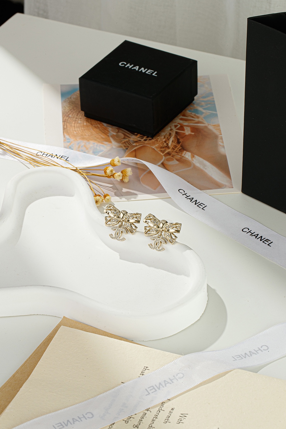 NIGO Chanel Women's Gold Bow Double C Pendant Metal Shape Pearl Chain Necklace Earrings Brooch Jewelry #nigo73738