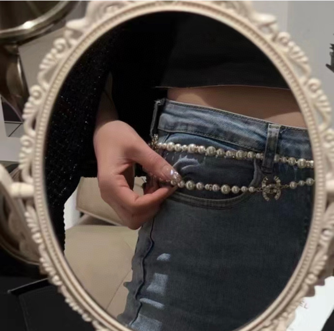 NIGO Chanel Women's Pleated Double C Pearl Necklace Waist Chain Jewelry #nigo73891