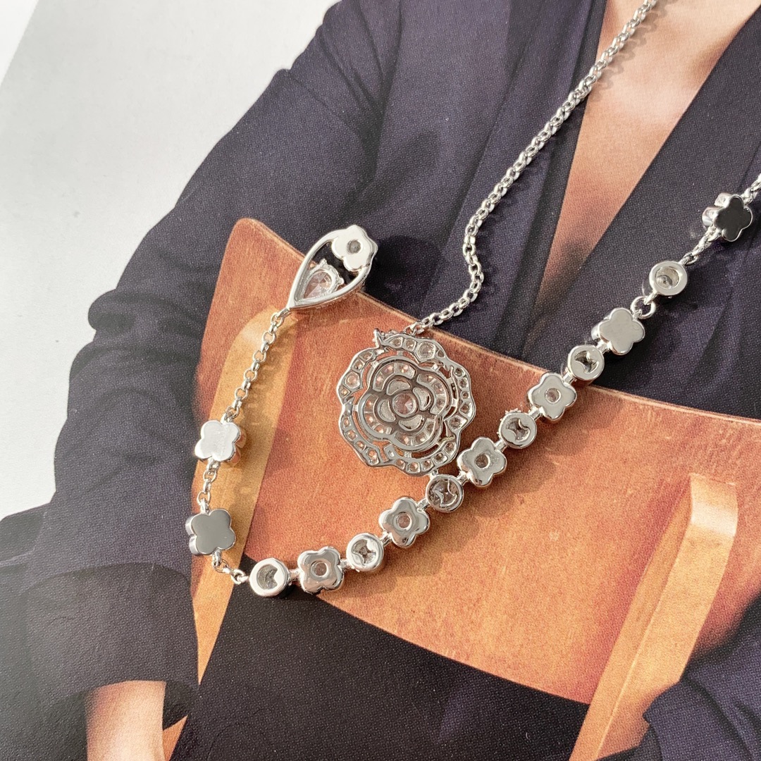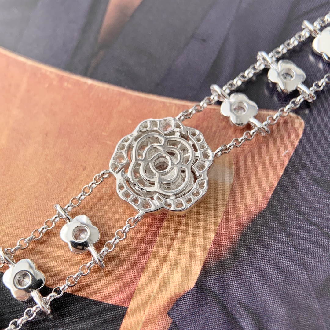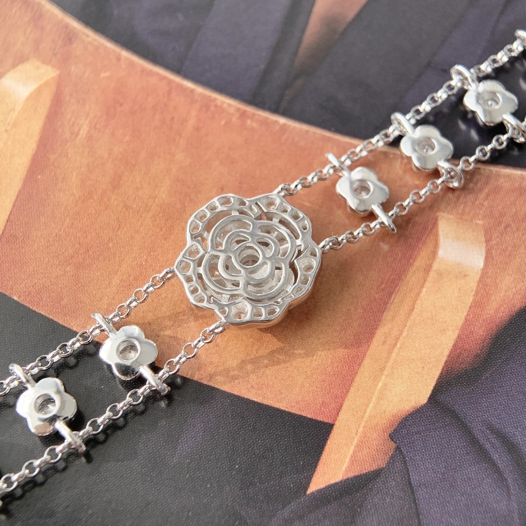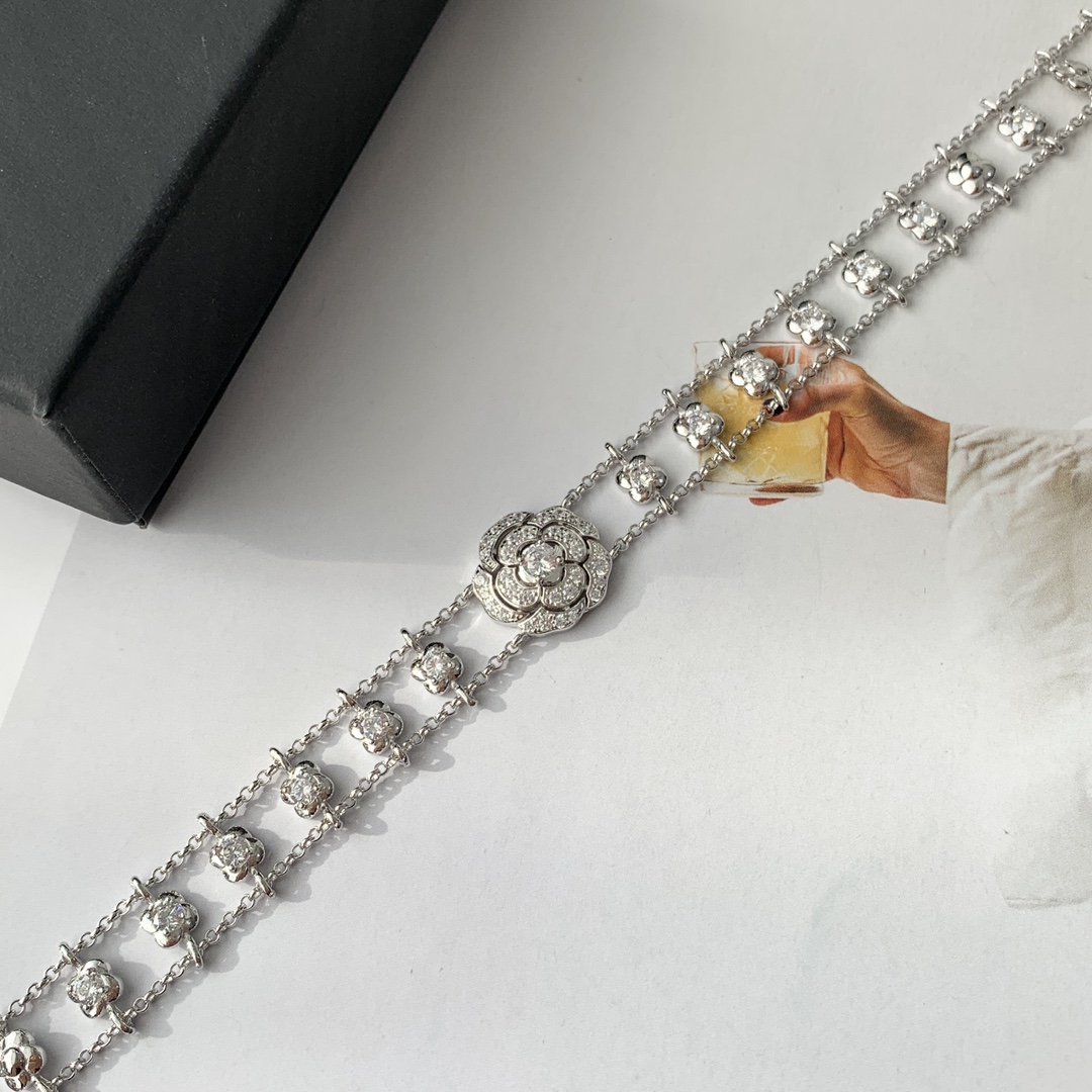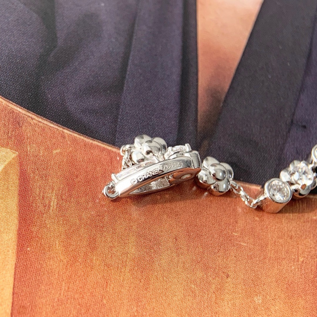 NIGO Chanel Women's Silver Camellia Series Diamonds Small Flower Earrings, Necklace, Bracelet, Accessories Jewelry #nigo74514