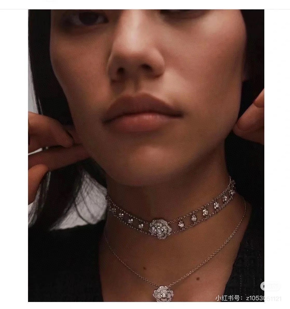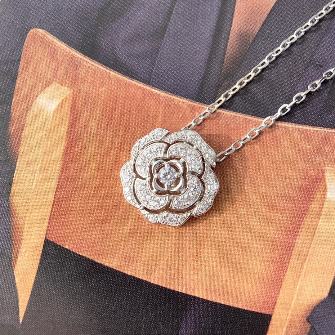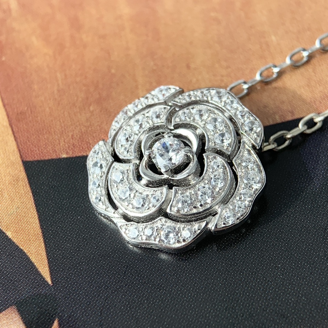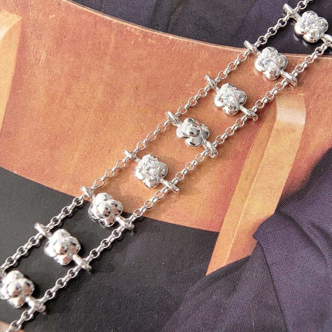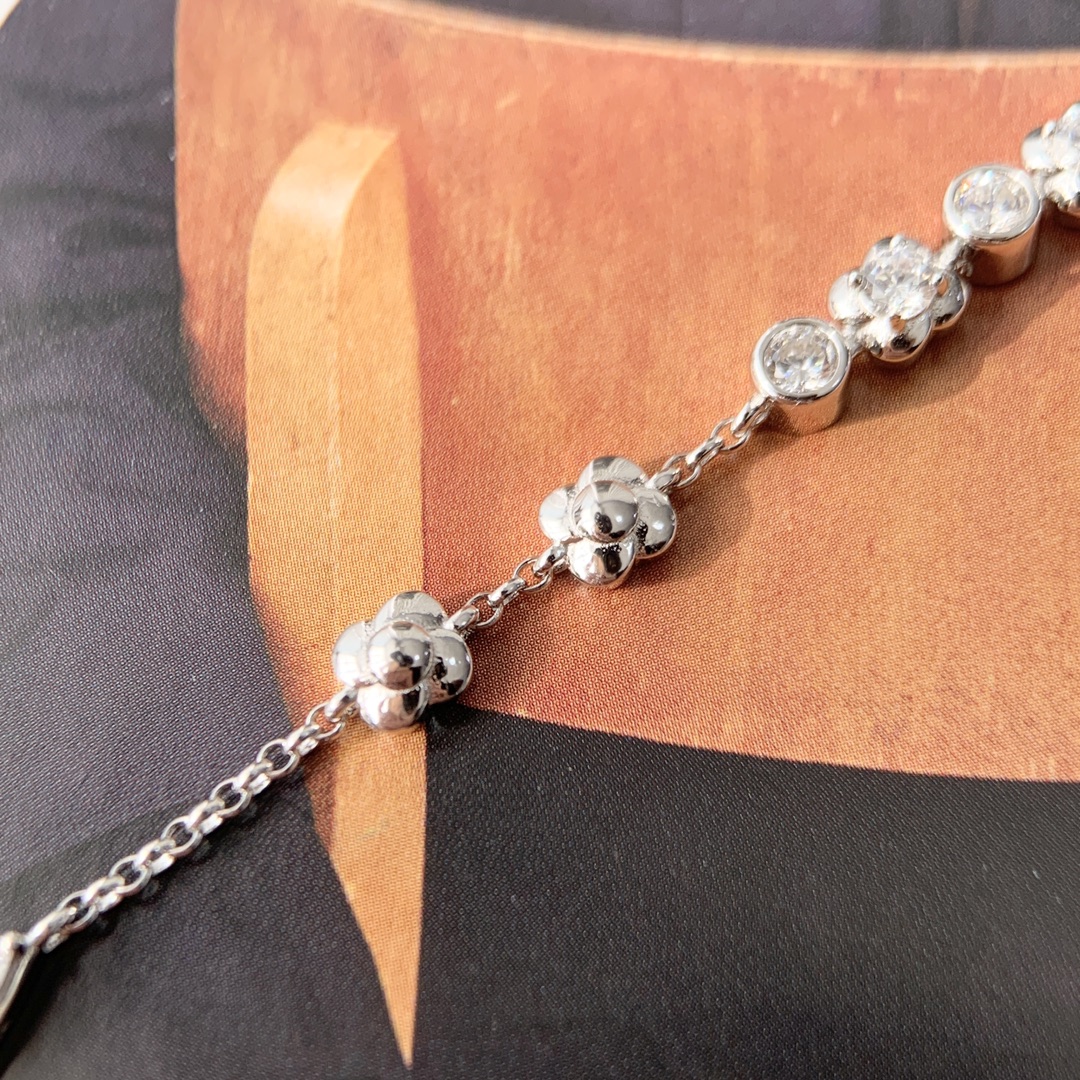 NIGO Chanel Women's Silver Camellia Series Diamonds Small Flower Earrings, Necklace, Bracelet, Accessories Jewelry #nigo74514