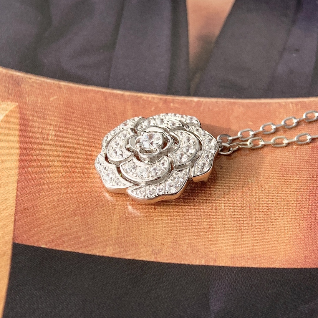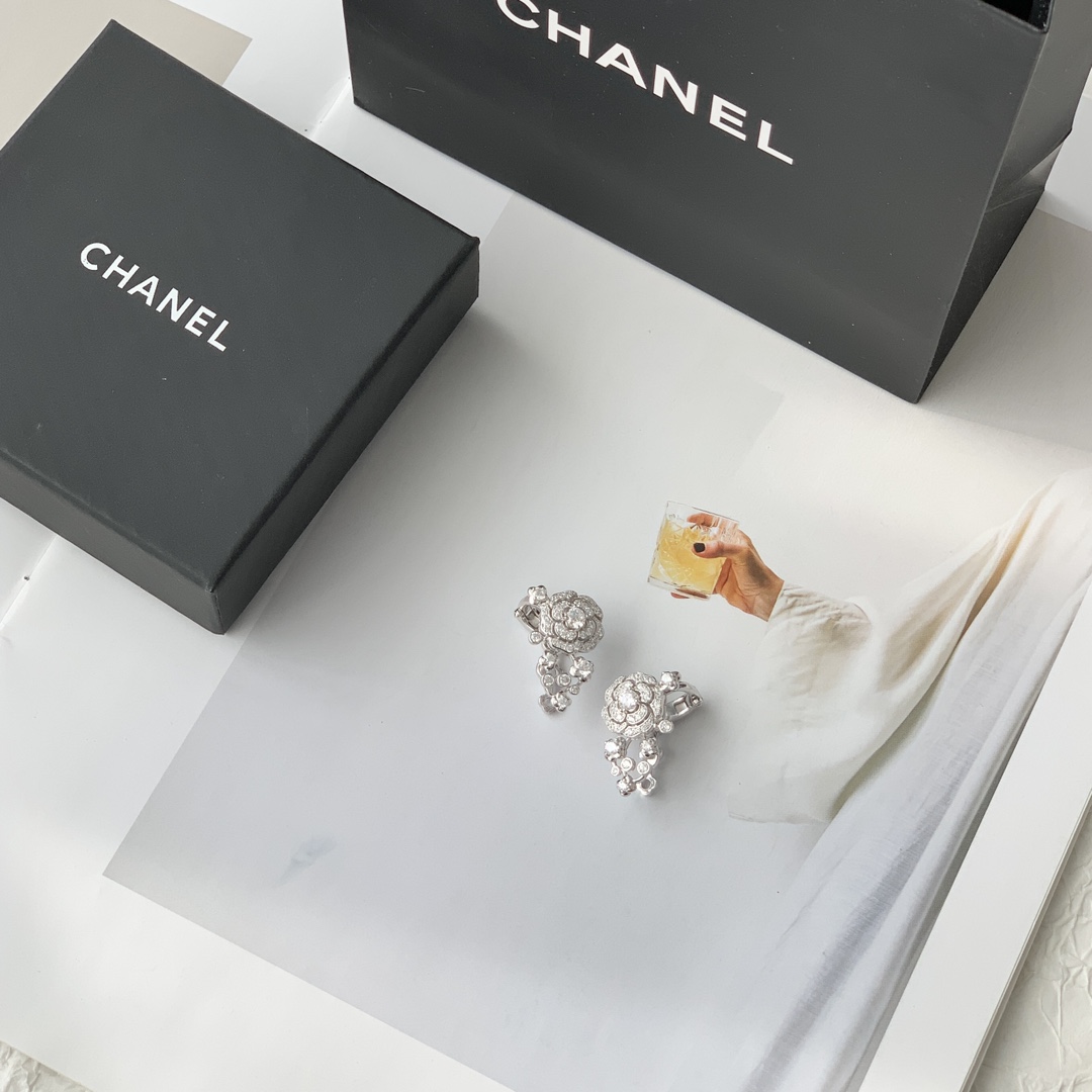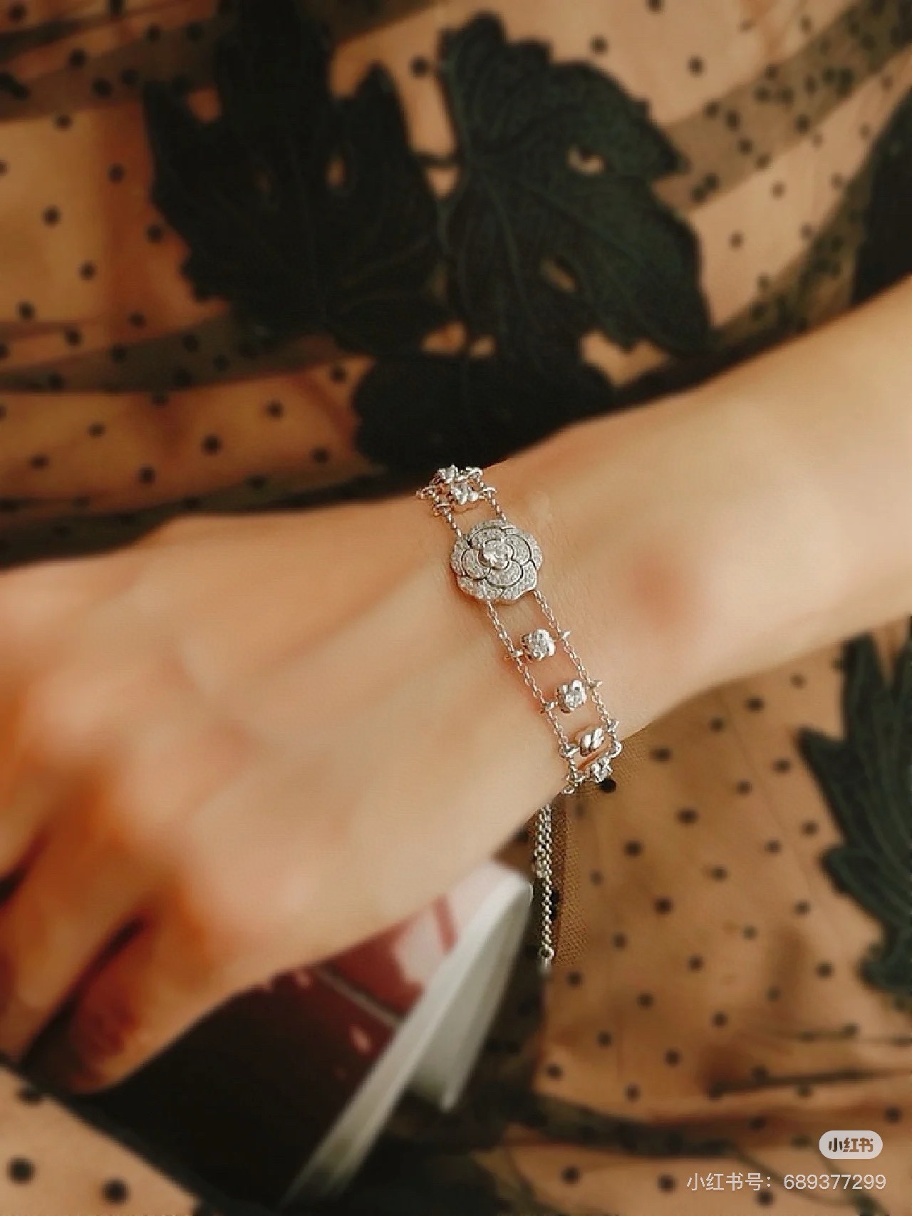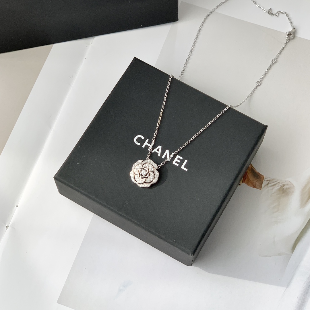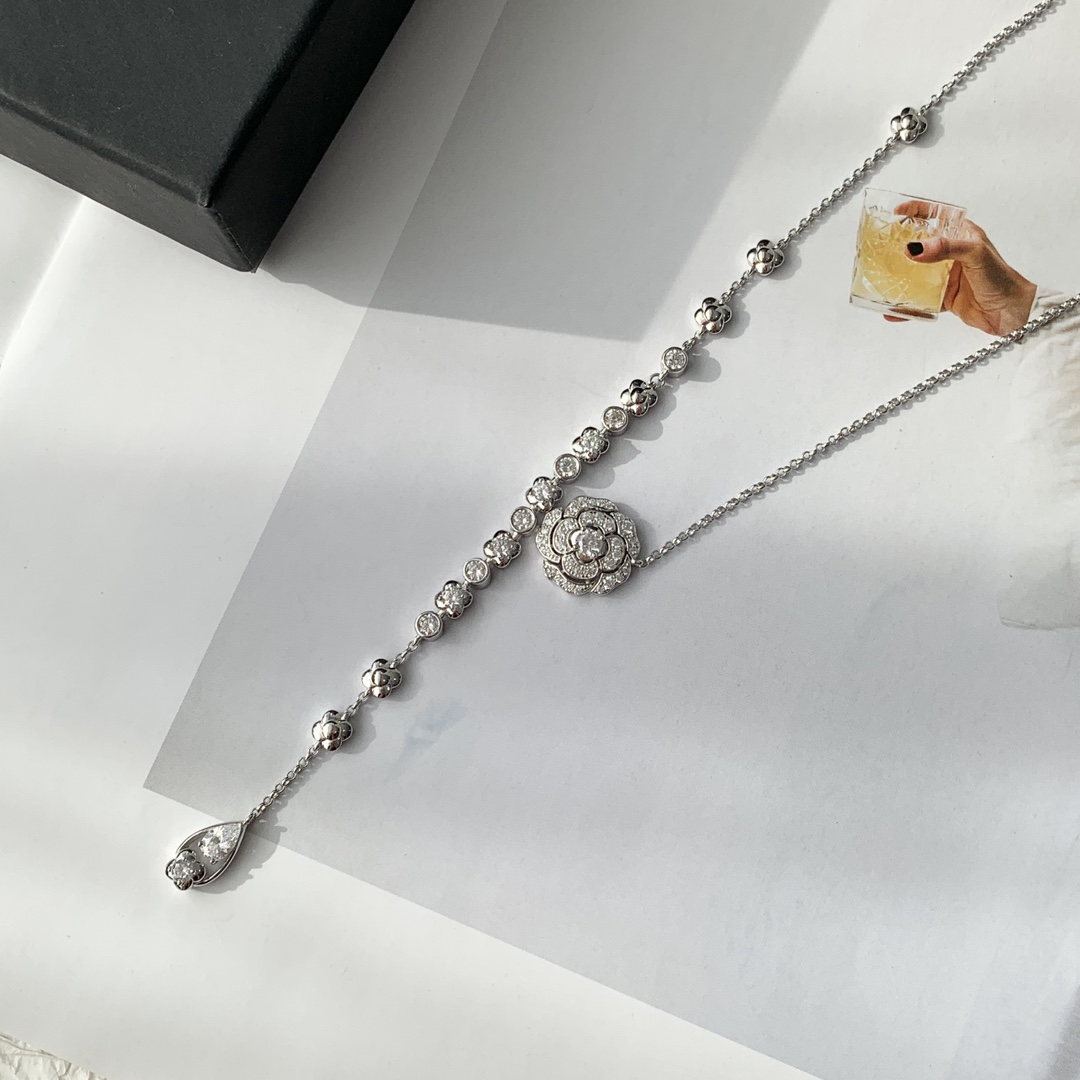NIGO Chanel Women's Silver Camellia Series Diamonds Small Flower Earrings, Necklace, Bracelet, Accessories Jewelry #nigo74514