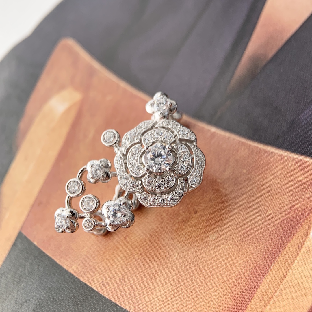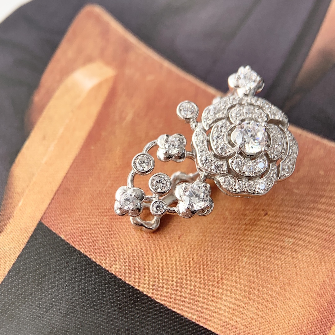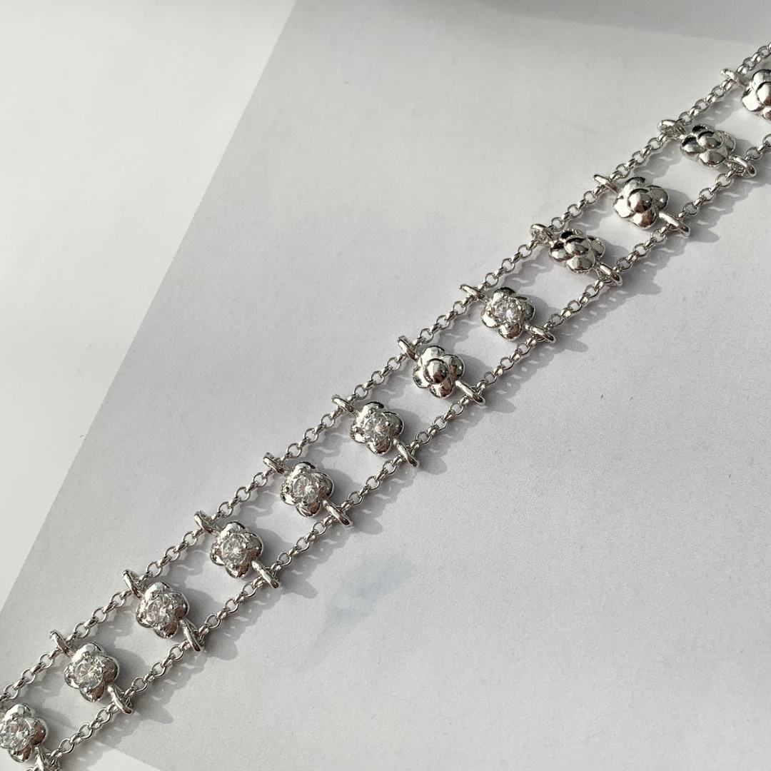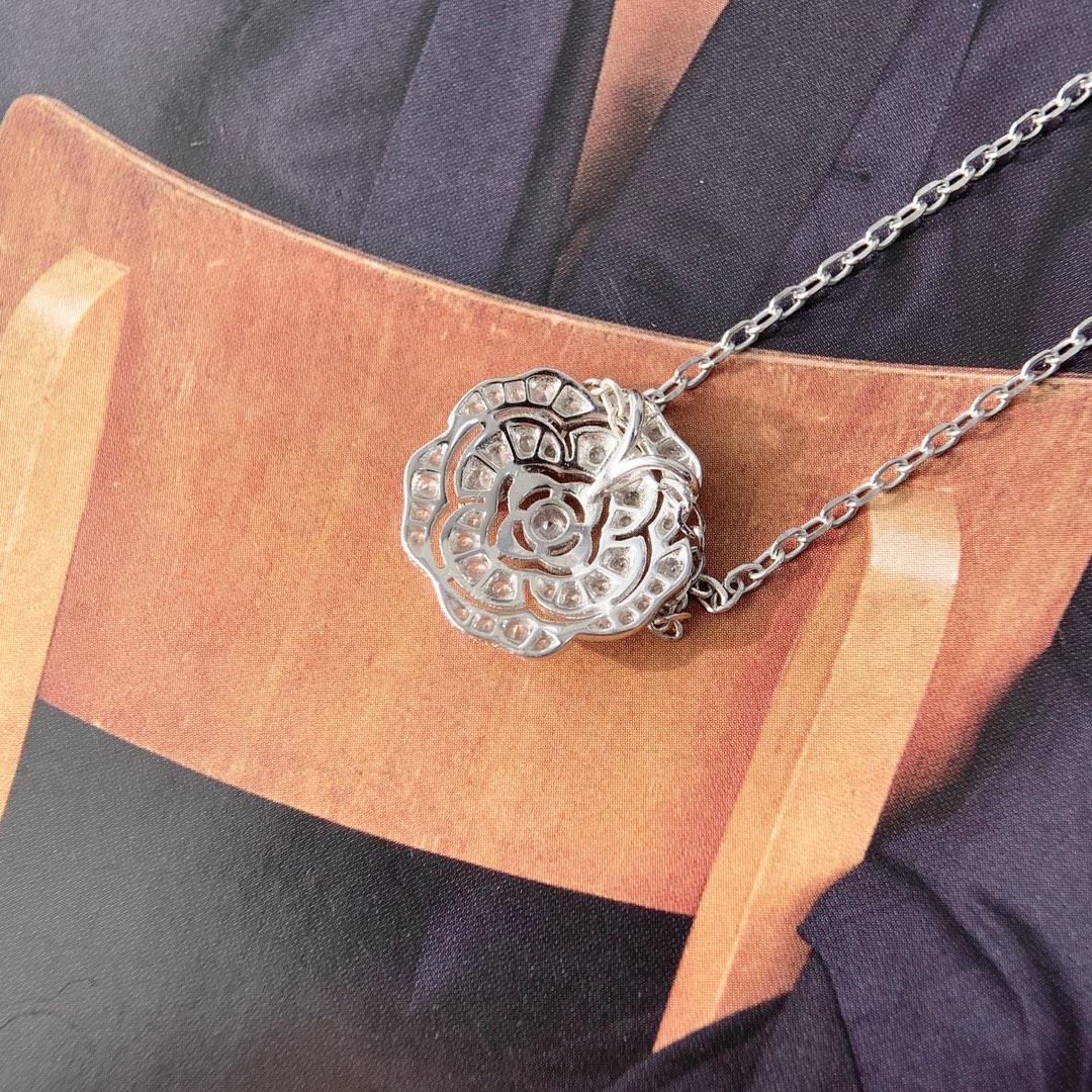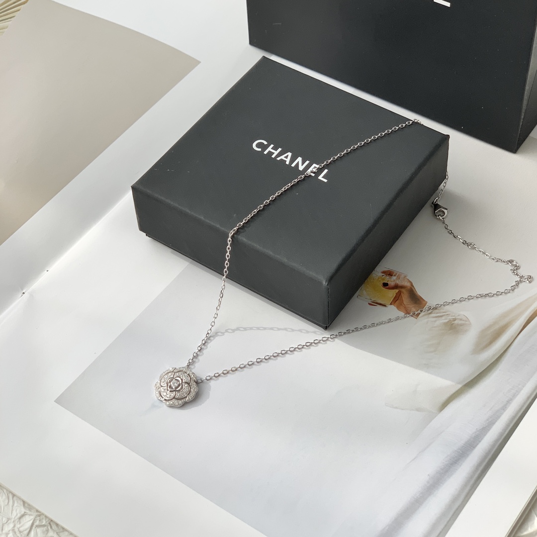 NIGO Chanel Women's Silver Camellia Series Diamonds Small Flower Earrings, Necklace, Bracelet, Accessories Jewelry #nigo74514