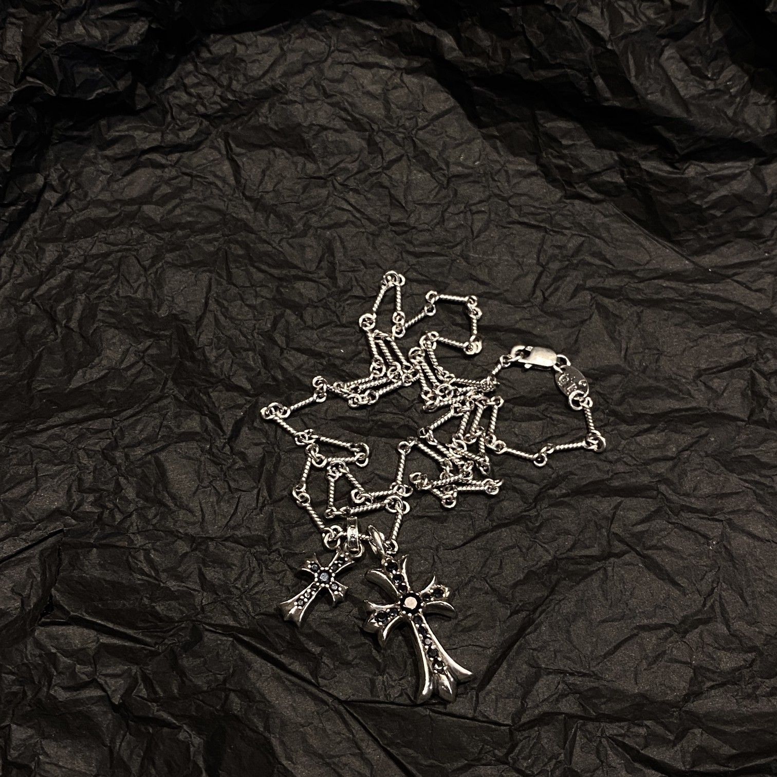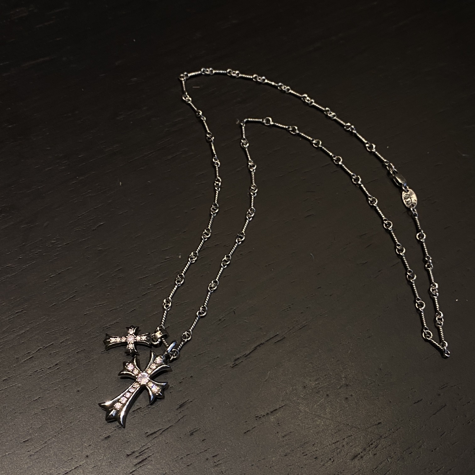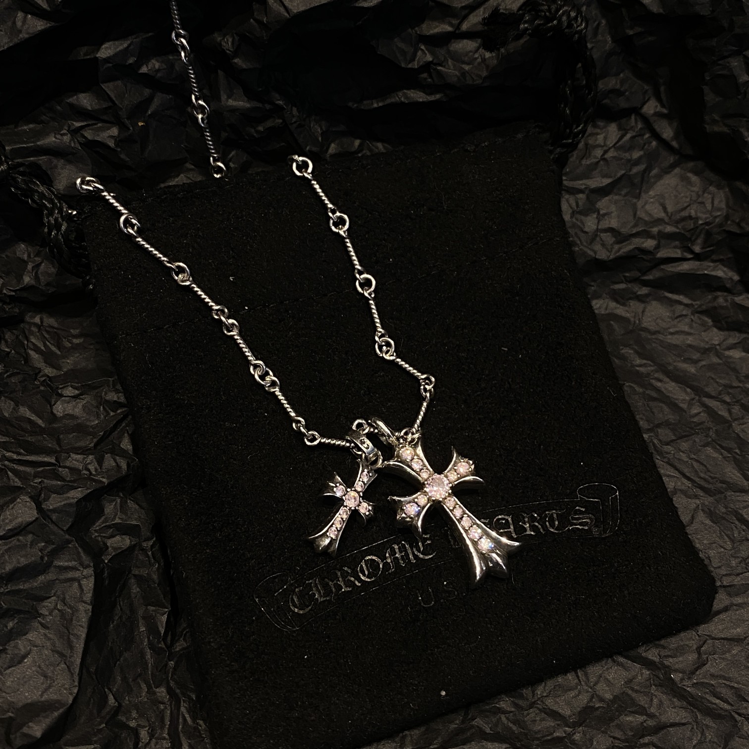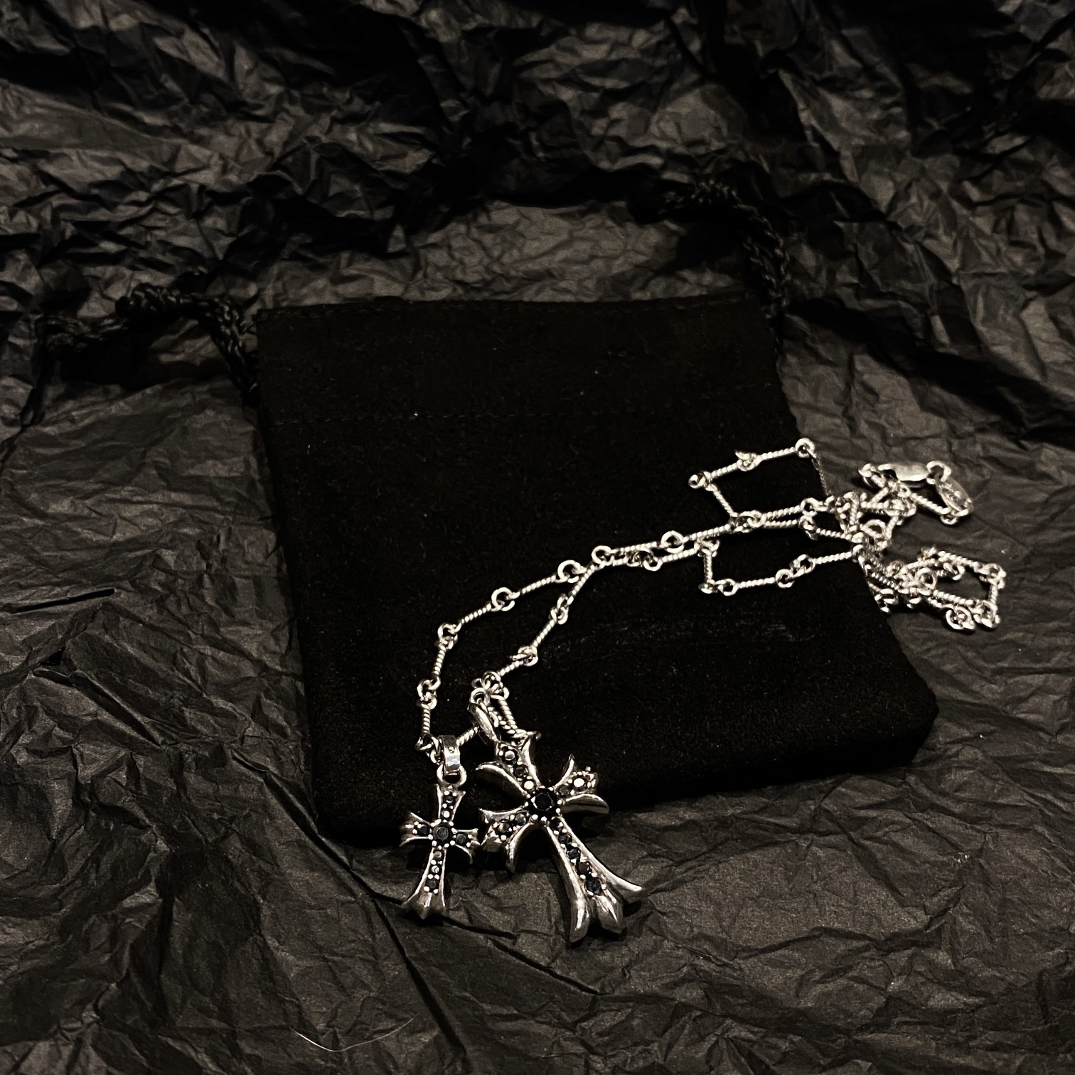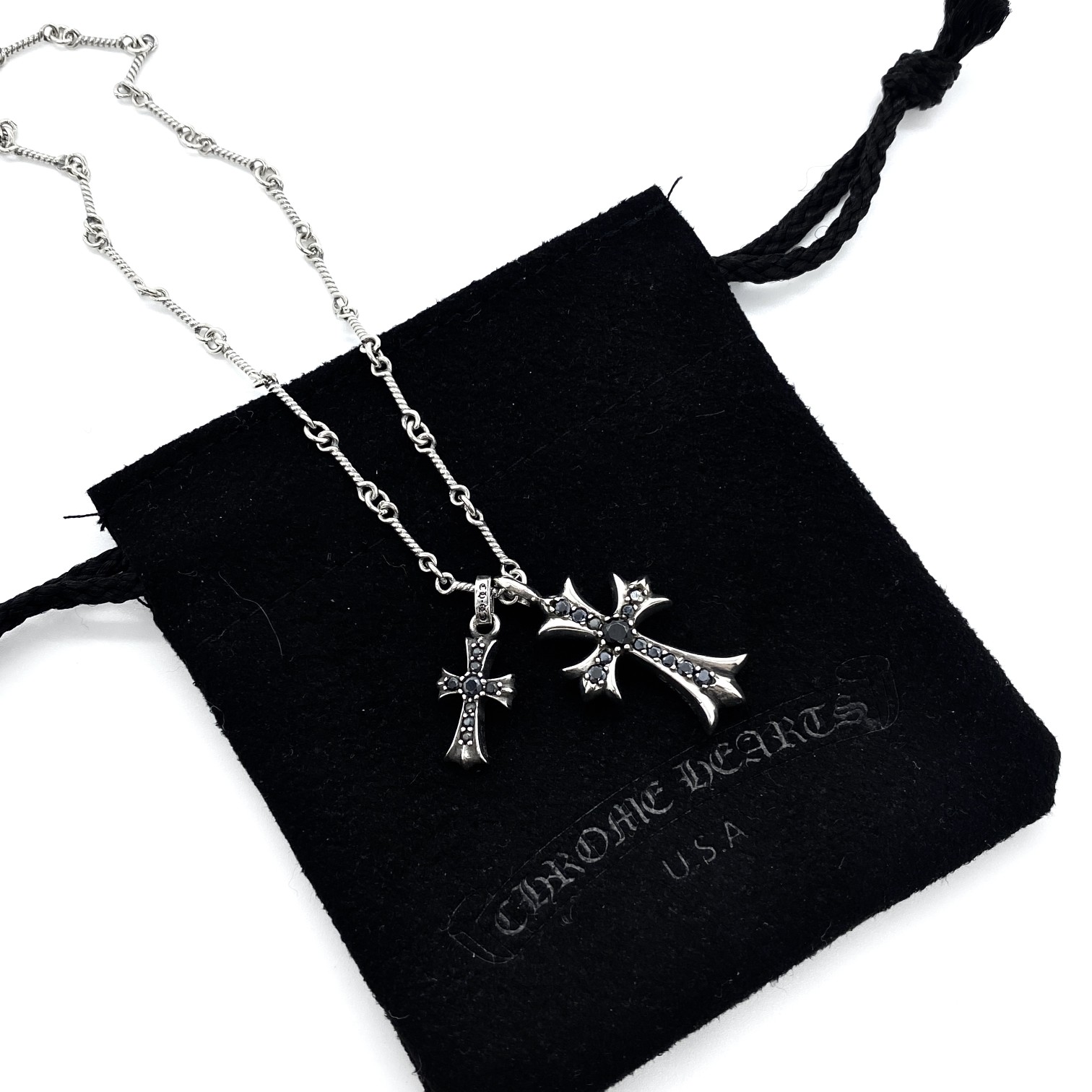NIGO Chrome Hearts Men's And Women's Fashion Trend 925 Sterling Silver Plated Double Cross Inlay Design Necklace Jewelry Accessories #nigo78558
