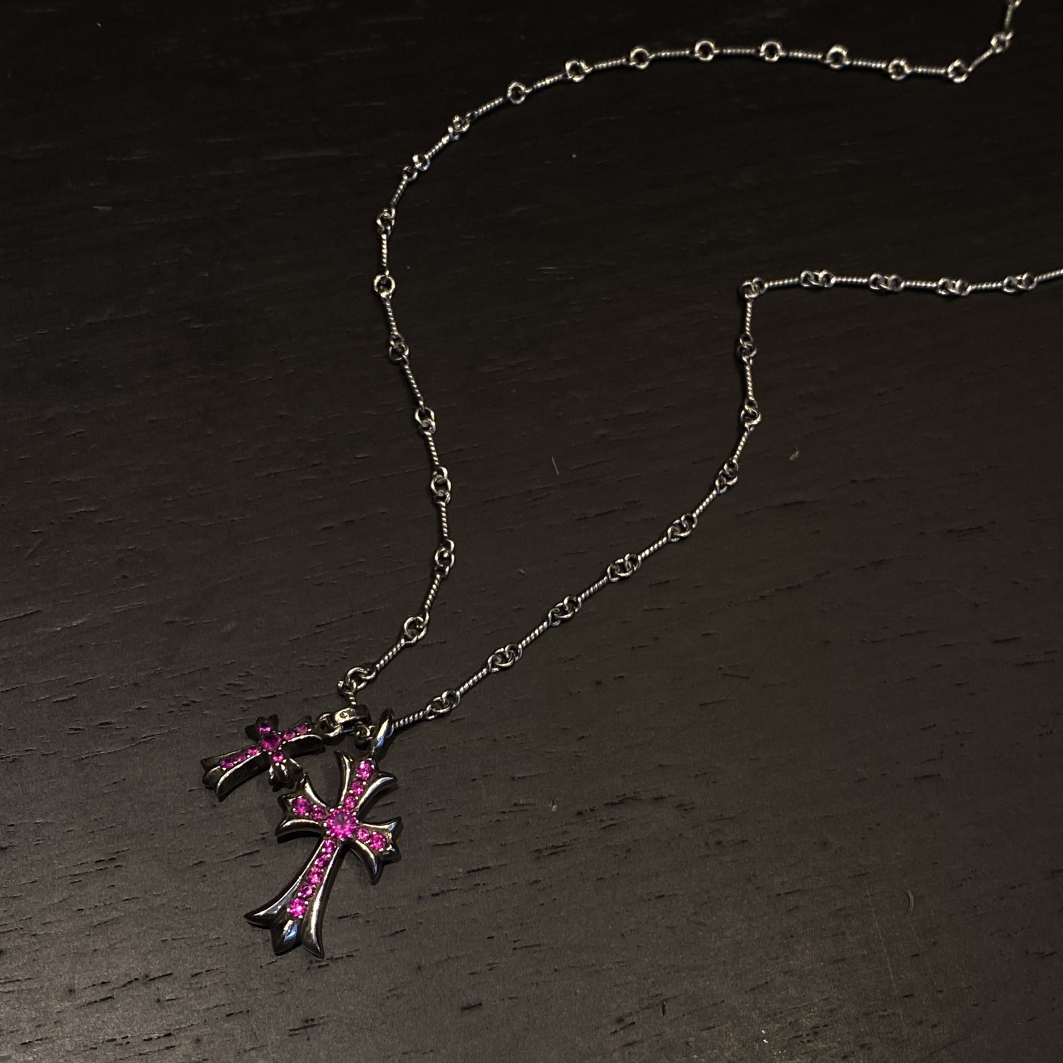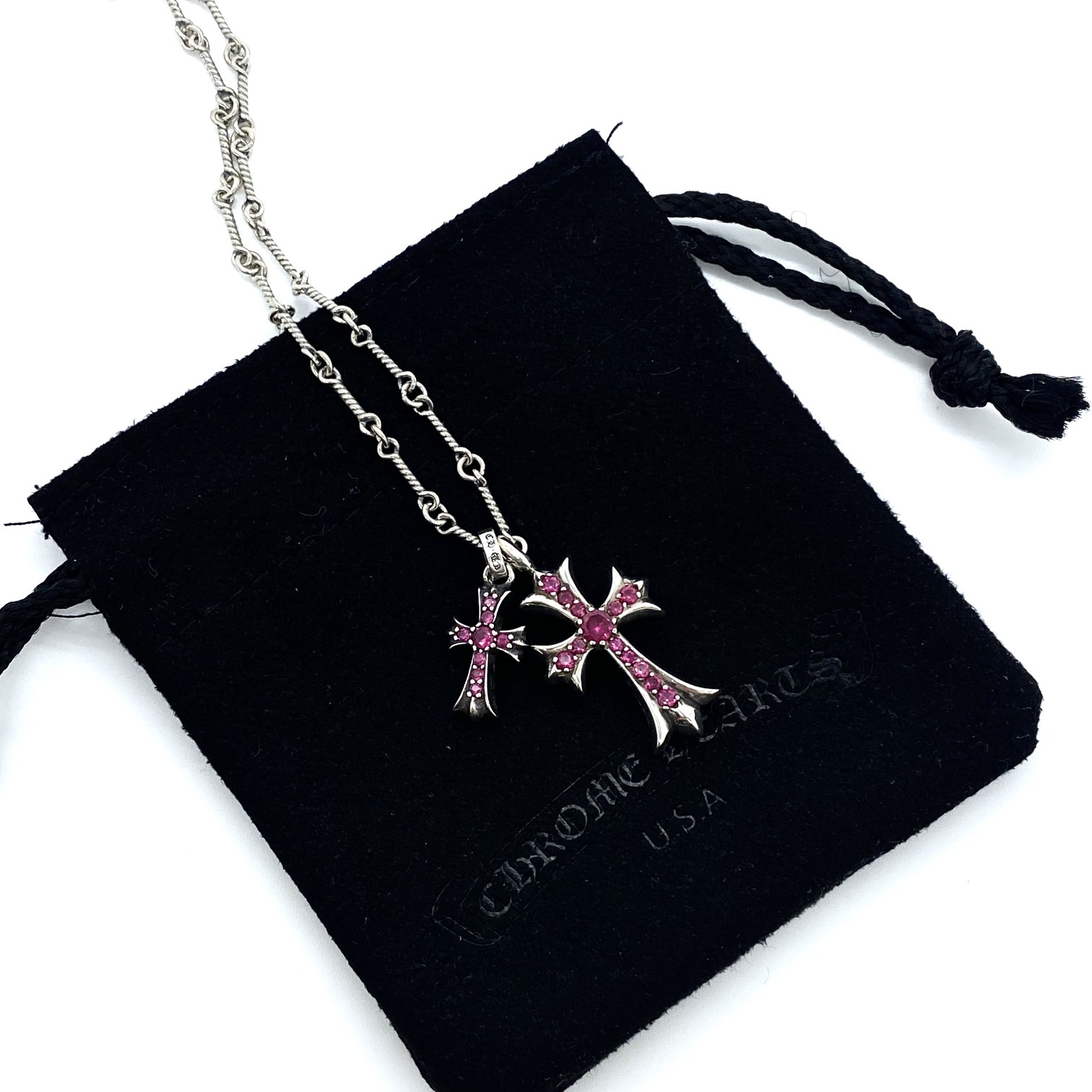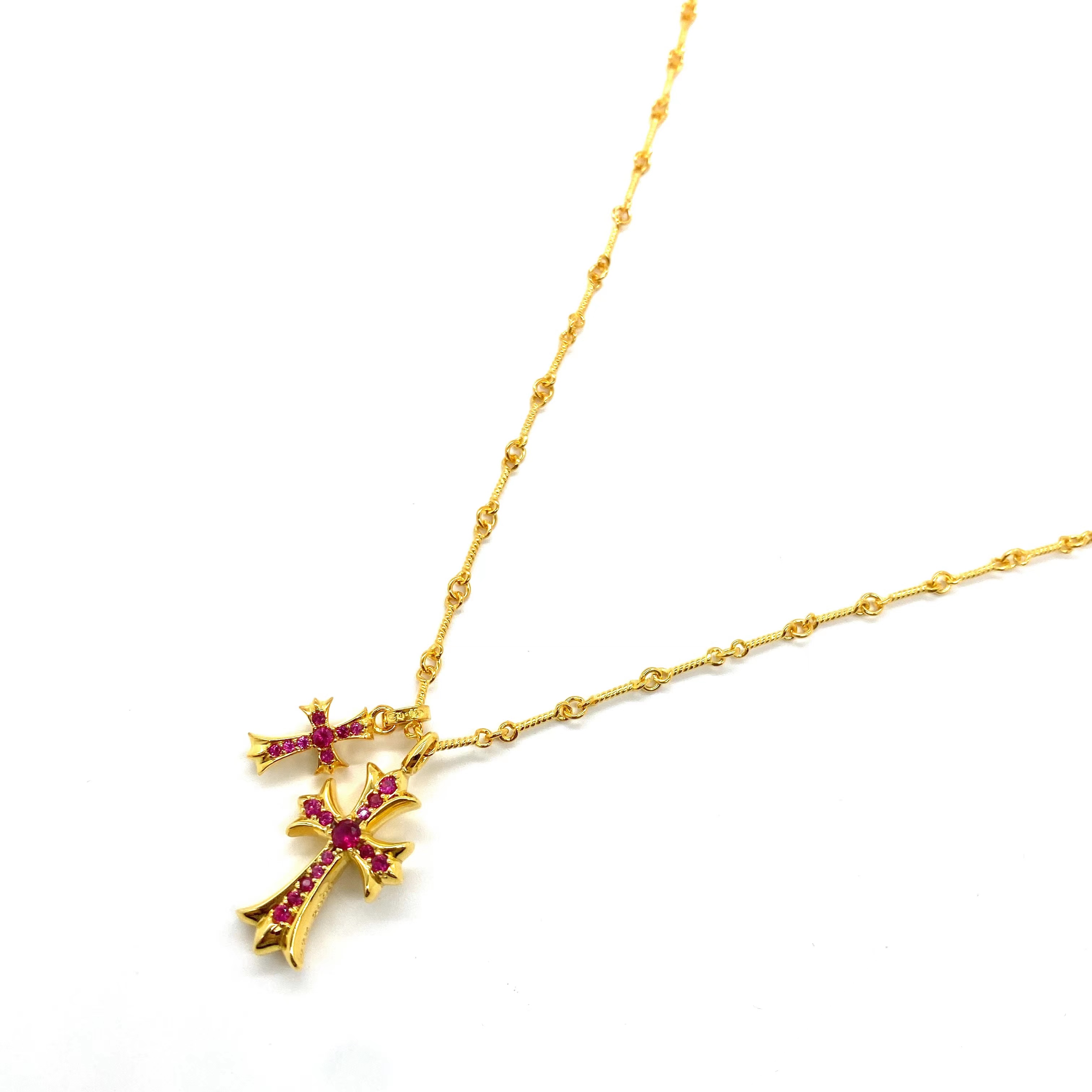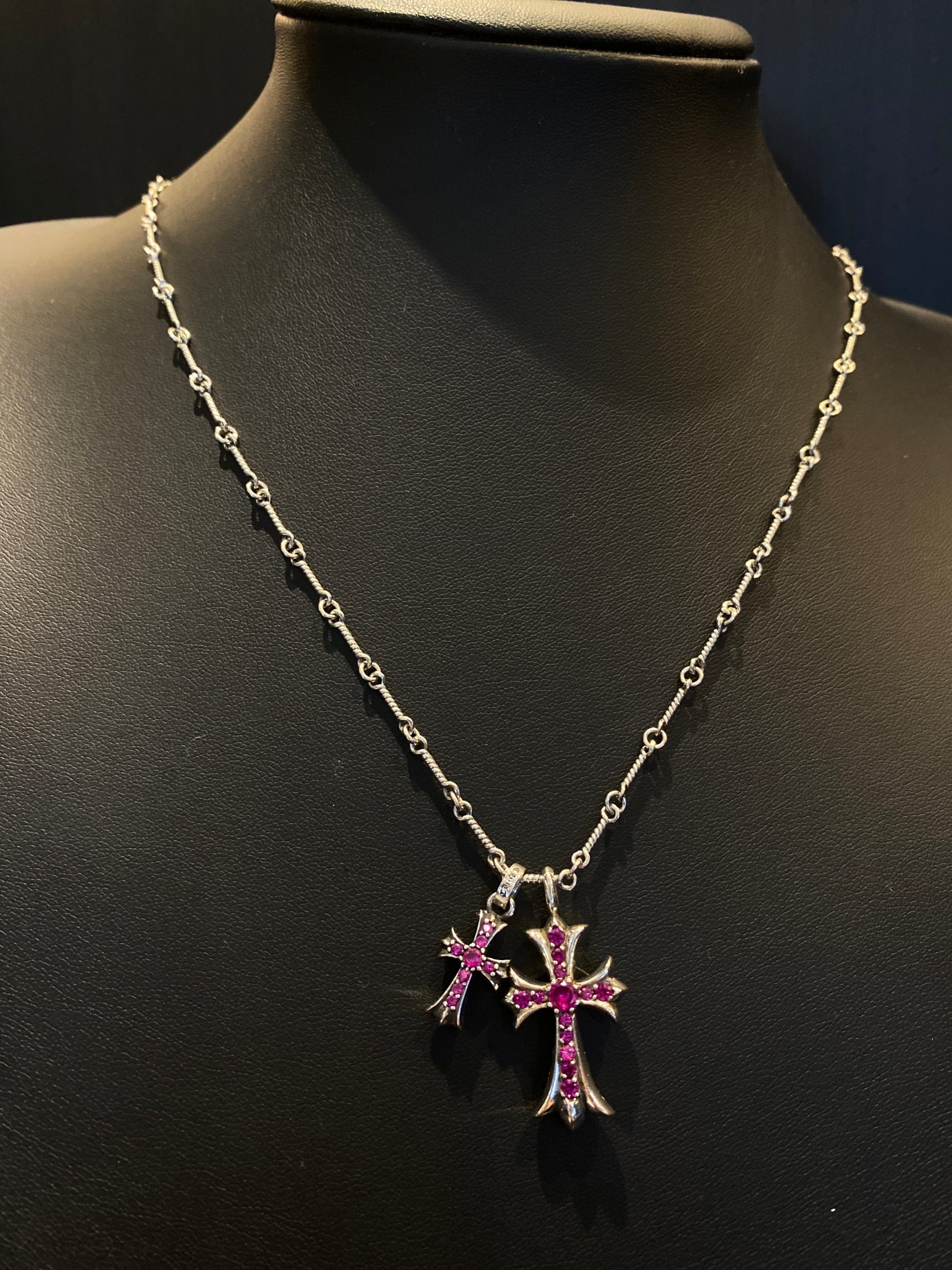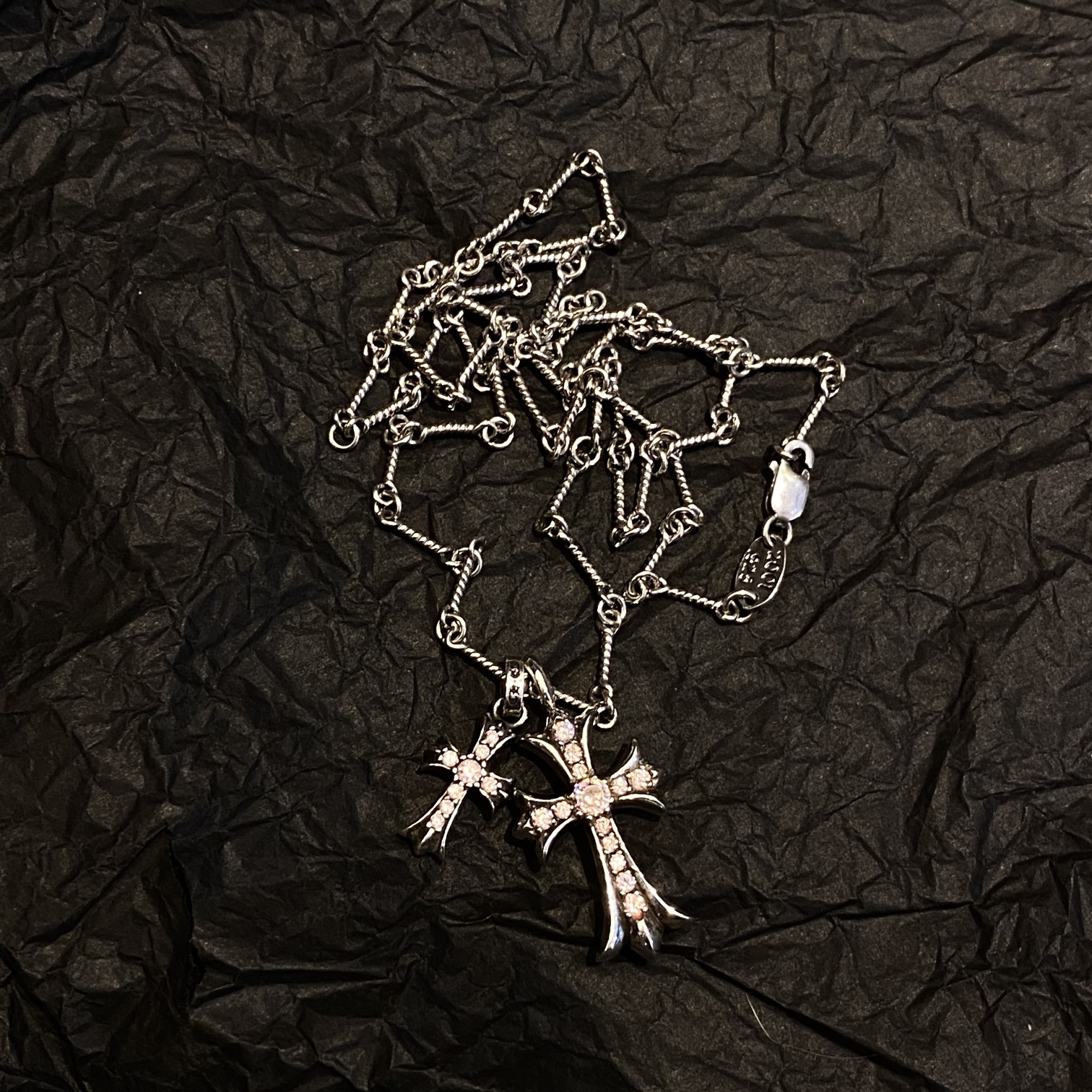 NIGO Chrome Hearts Men's And Women's Fashion Trend 925 Sterling Silver Plated Double Cross Inlay Design Necklace Jewelry Accessories #nigo78558