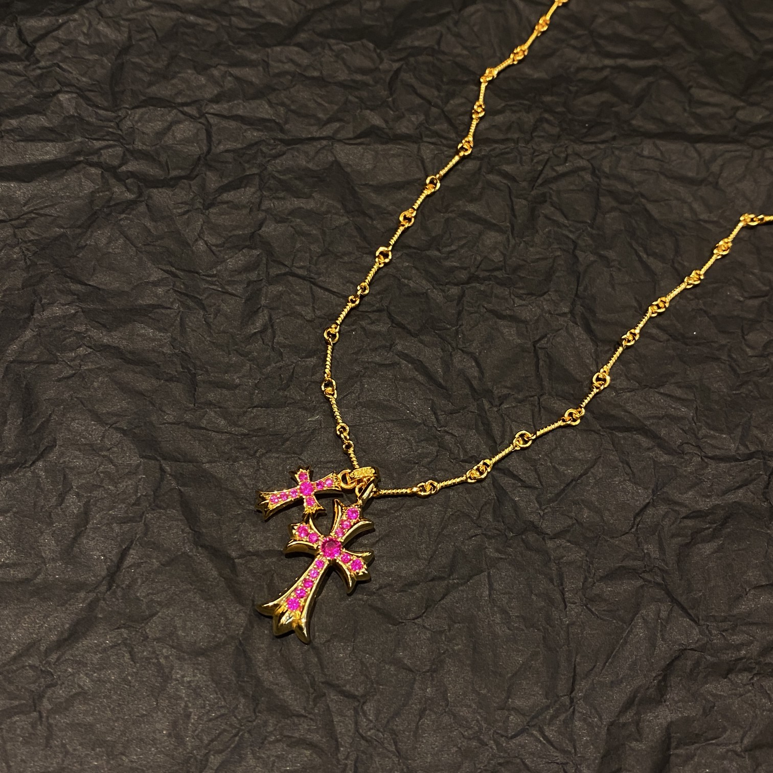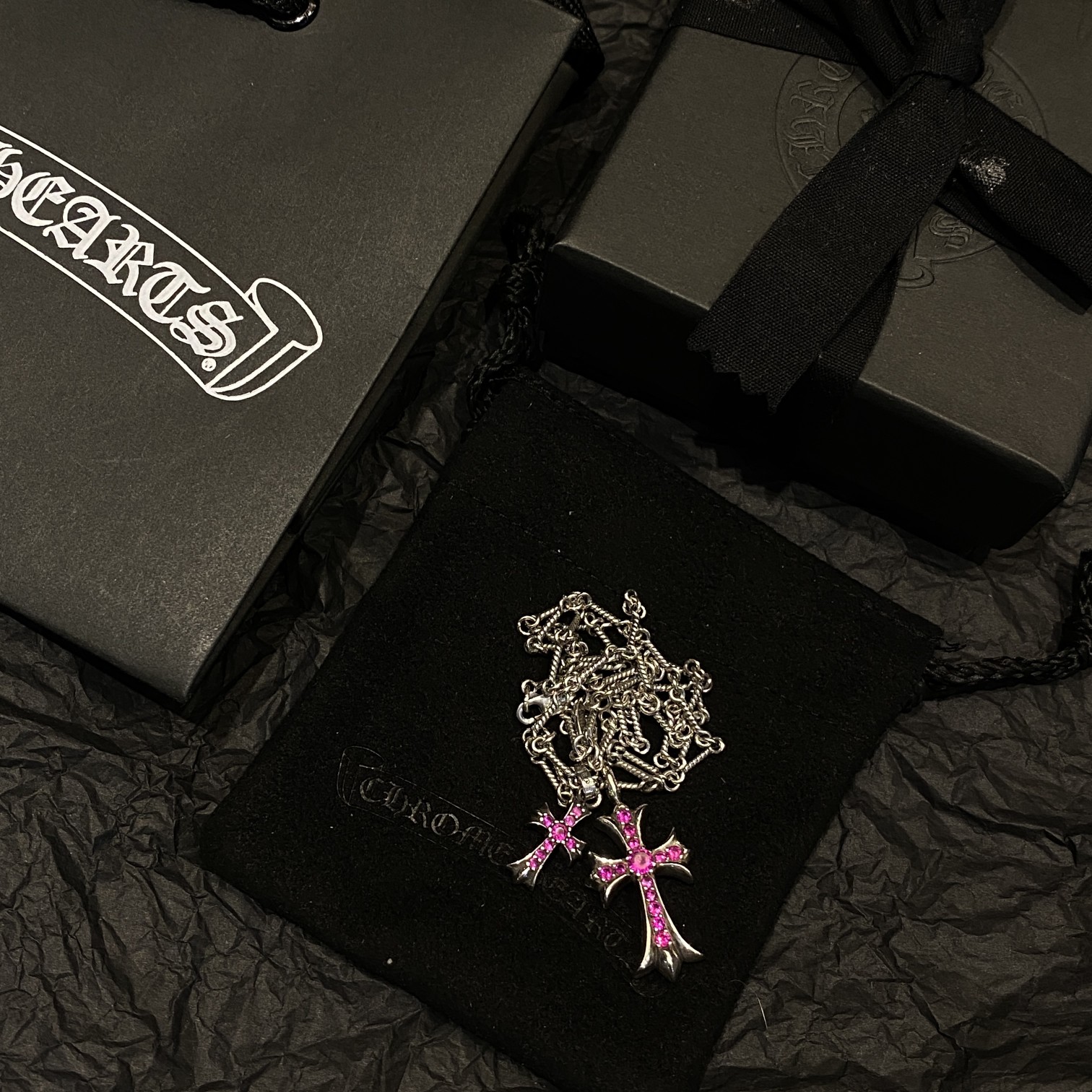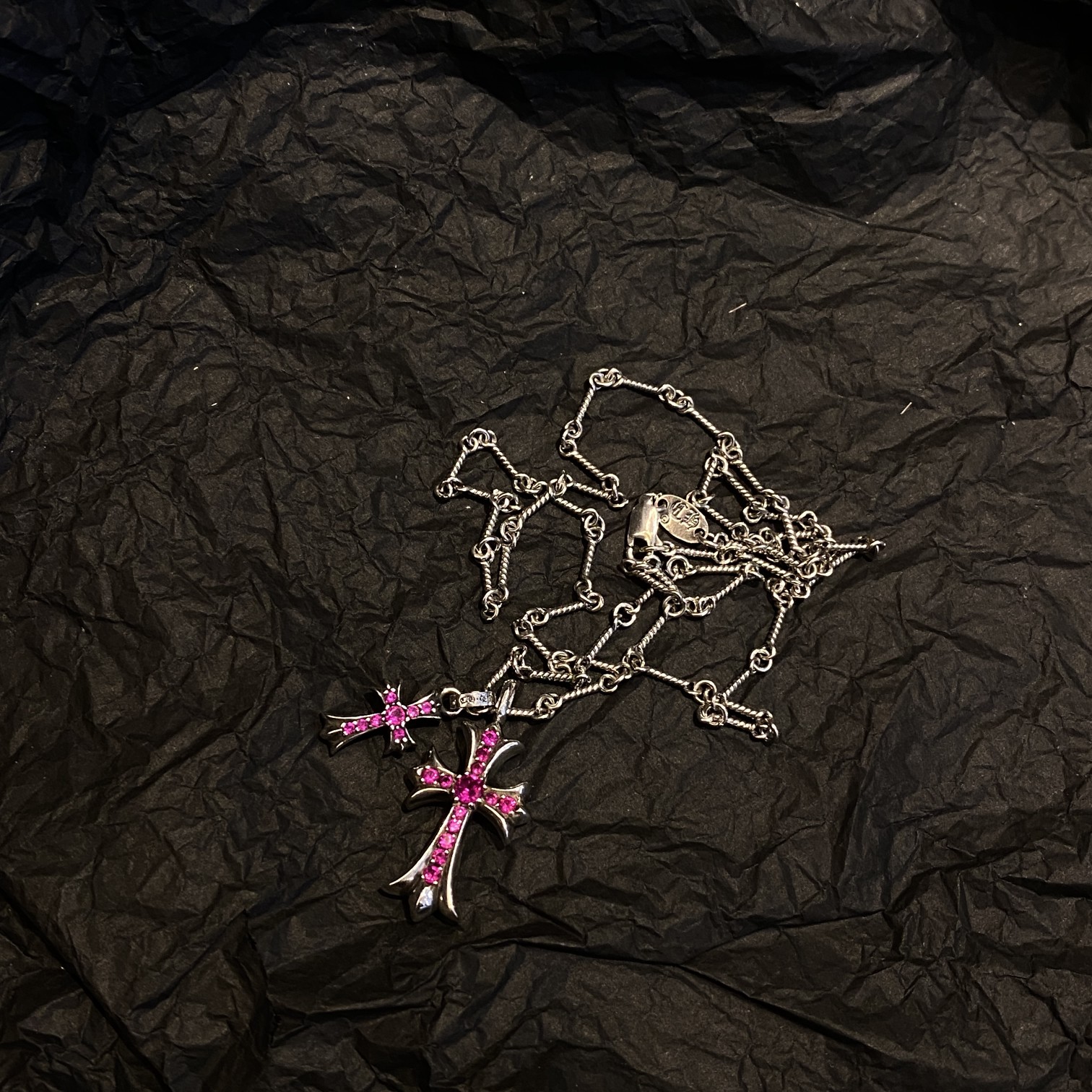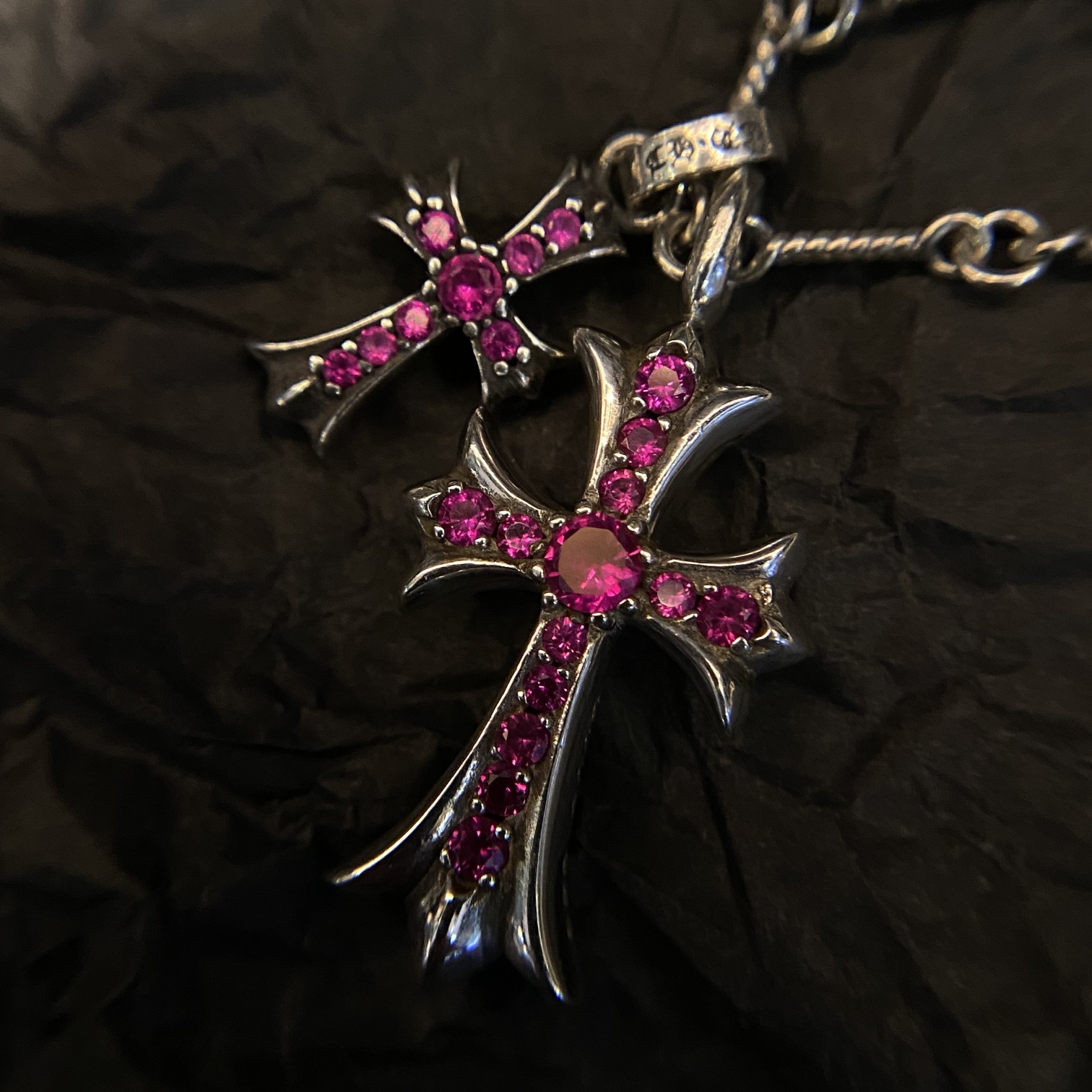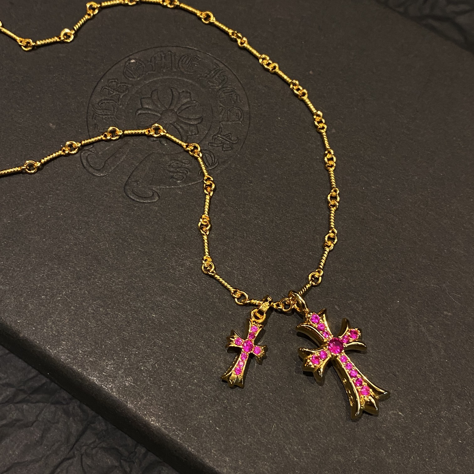 NIGO Chrome Hearts Men's And Women's Fashion Trend 925 Sterling Silver Plated Double Cross Inlay Design Necklace Jewelry Accessories #nigo78558