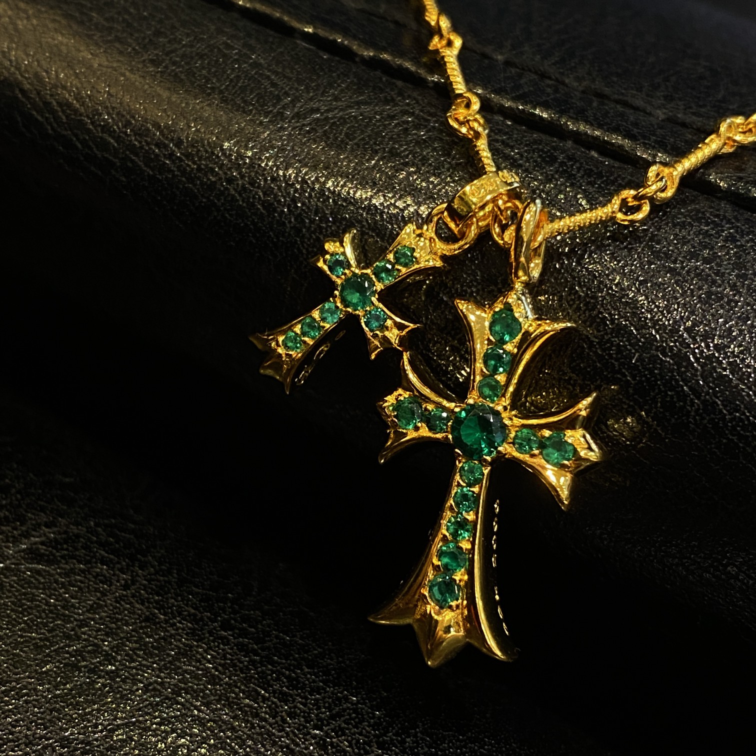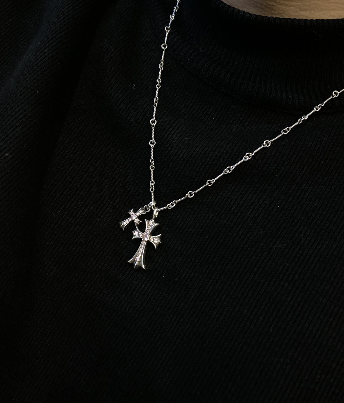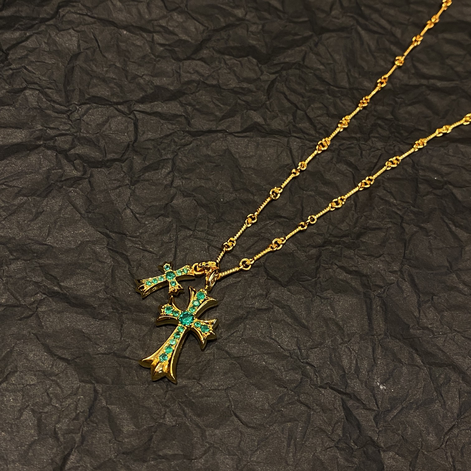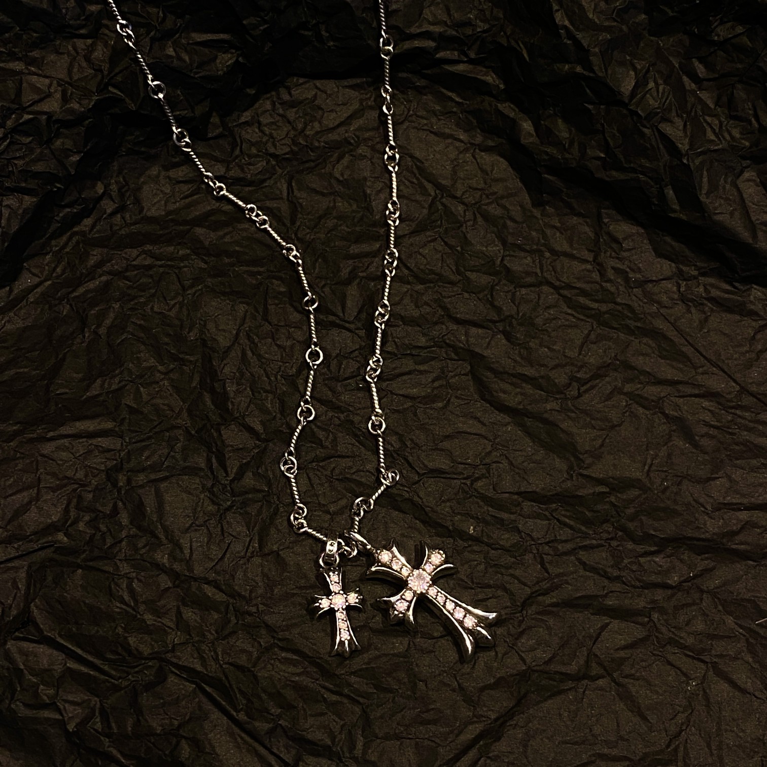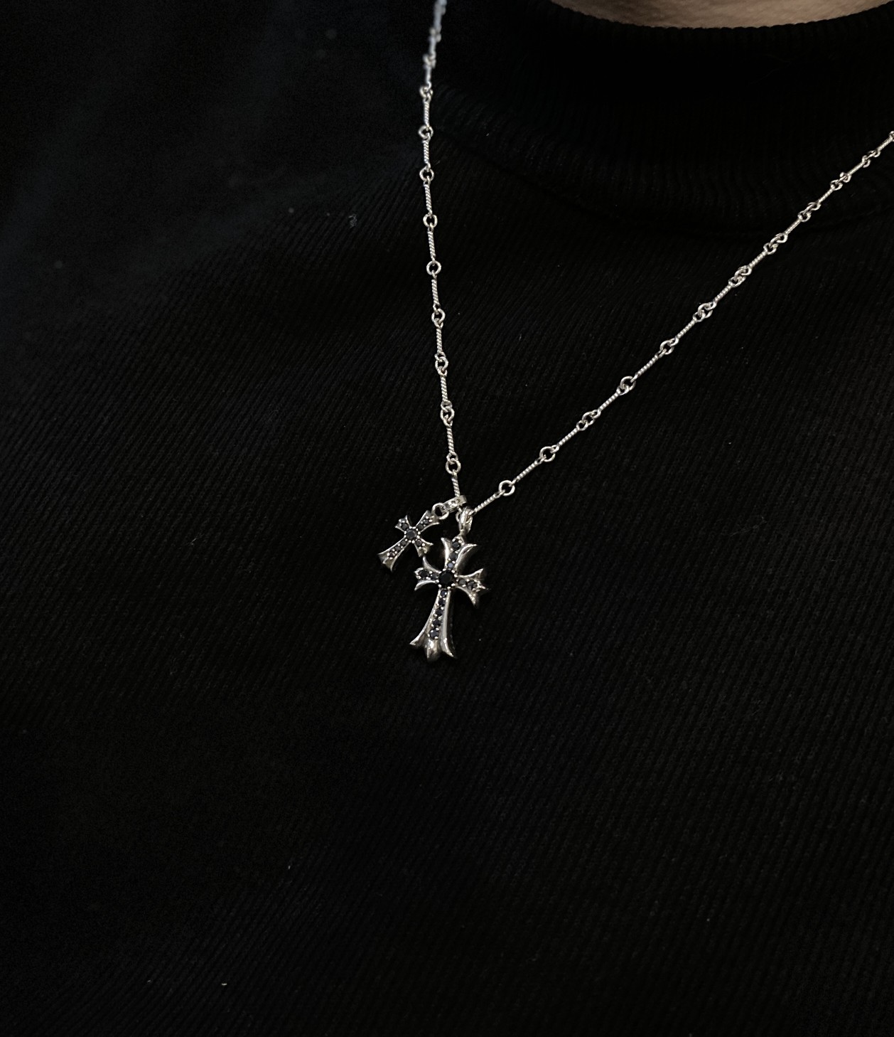 NIGO Chrome Hearts Men's And Women's Fashion Trend 925 Sterling Silver Plated Double Cross Inlay Design Necklace Jewelry Accessories #nigo78558