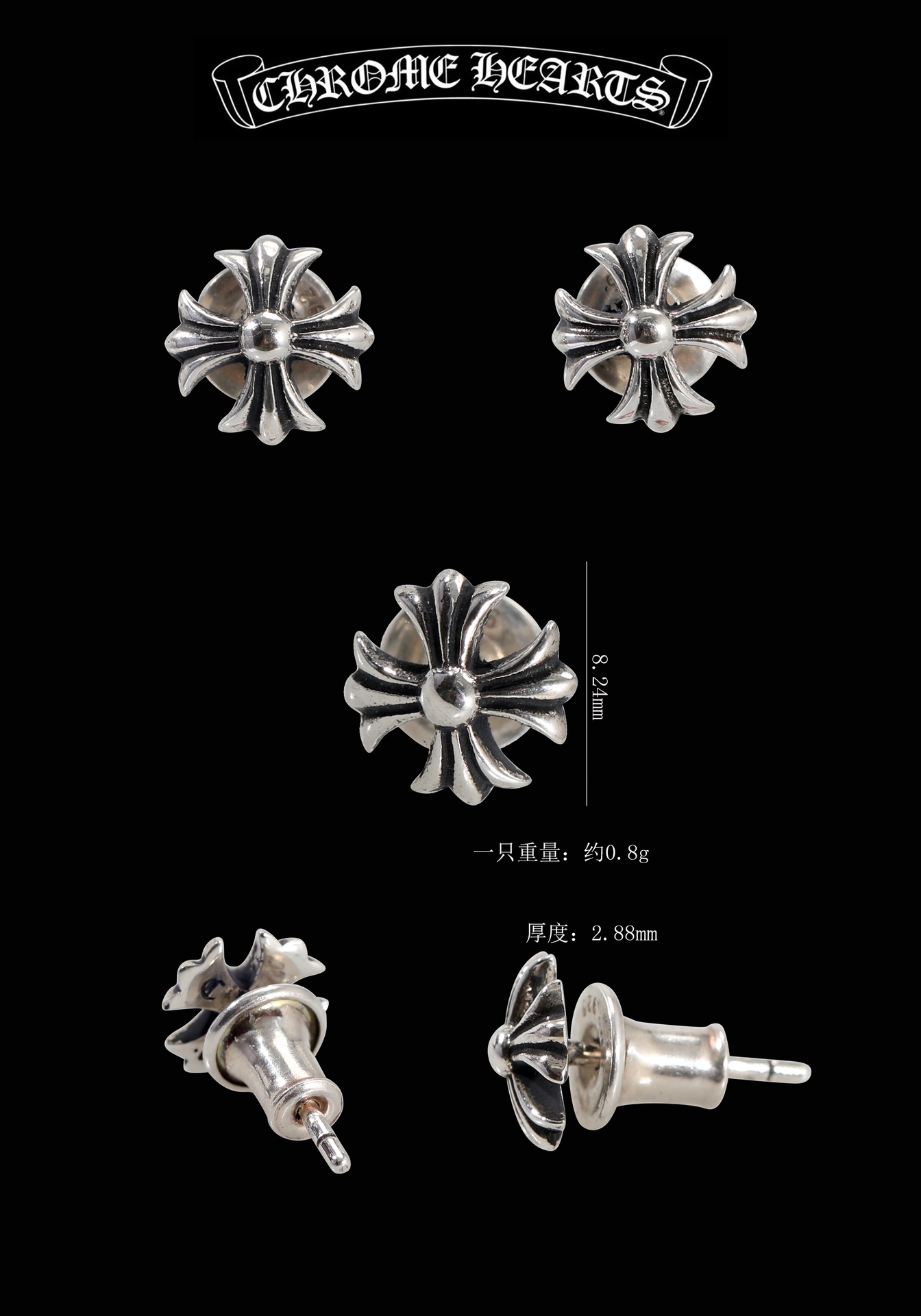 NIGO Chrome Hearts Men's Fashion Cross Earring Silver Fashion Rock Jewelry Accessories #nigo81359