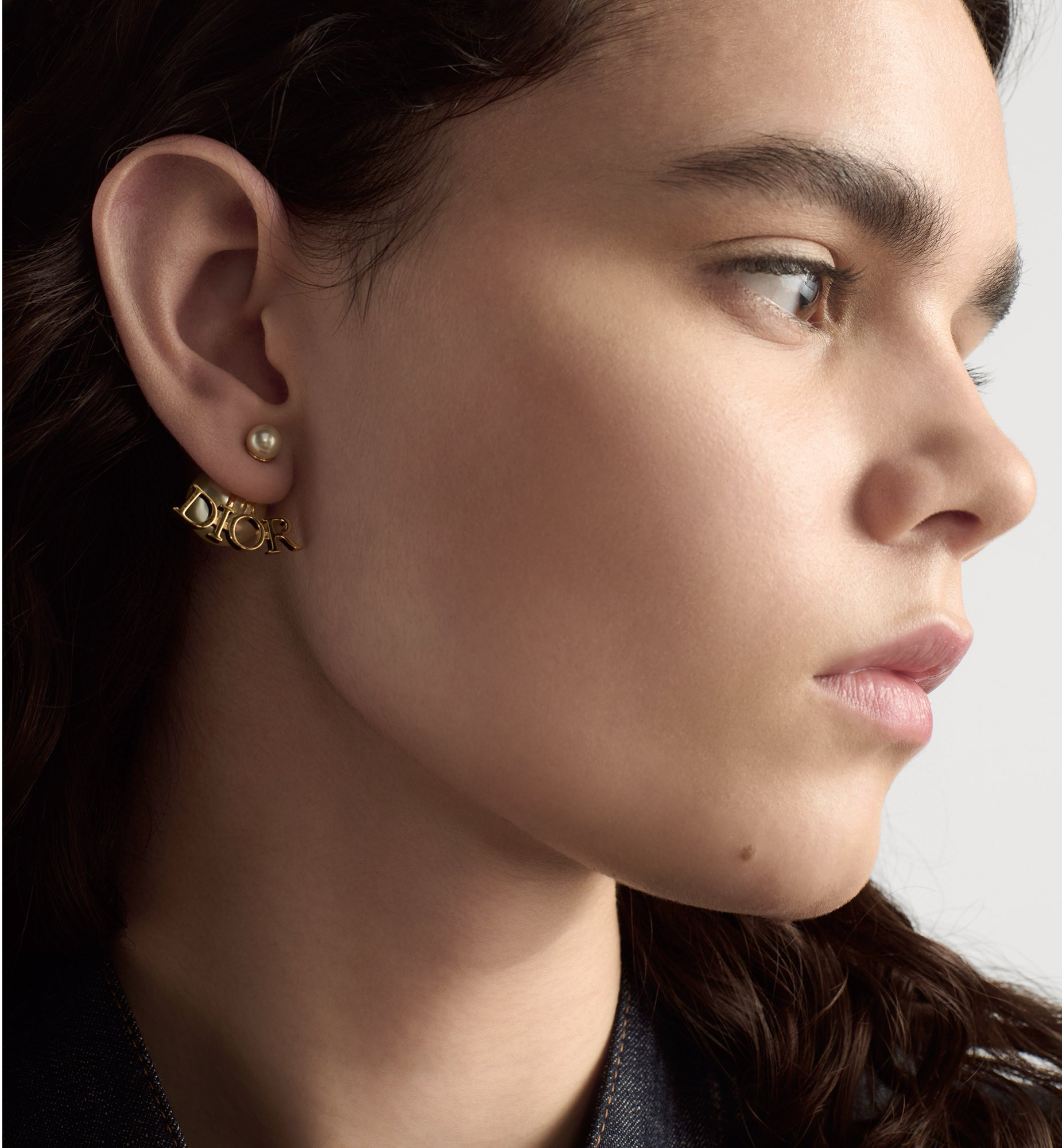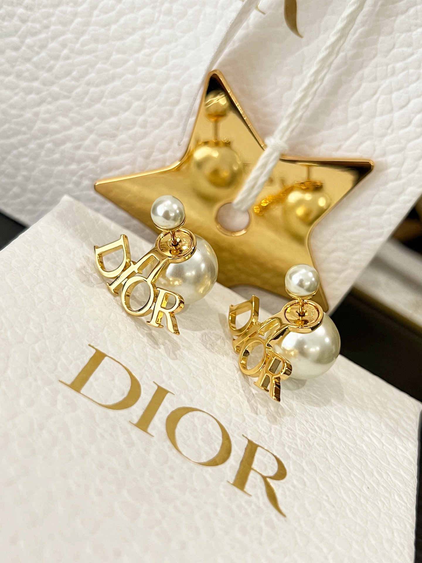NIGO Dior Tribales Women's Symmetrical Pattern Gold Letter Pattern Pearl Stud Earrings Jewelry Accessories #nigo77635