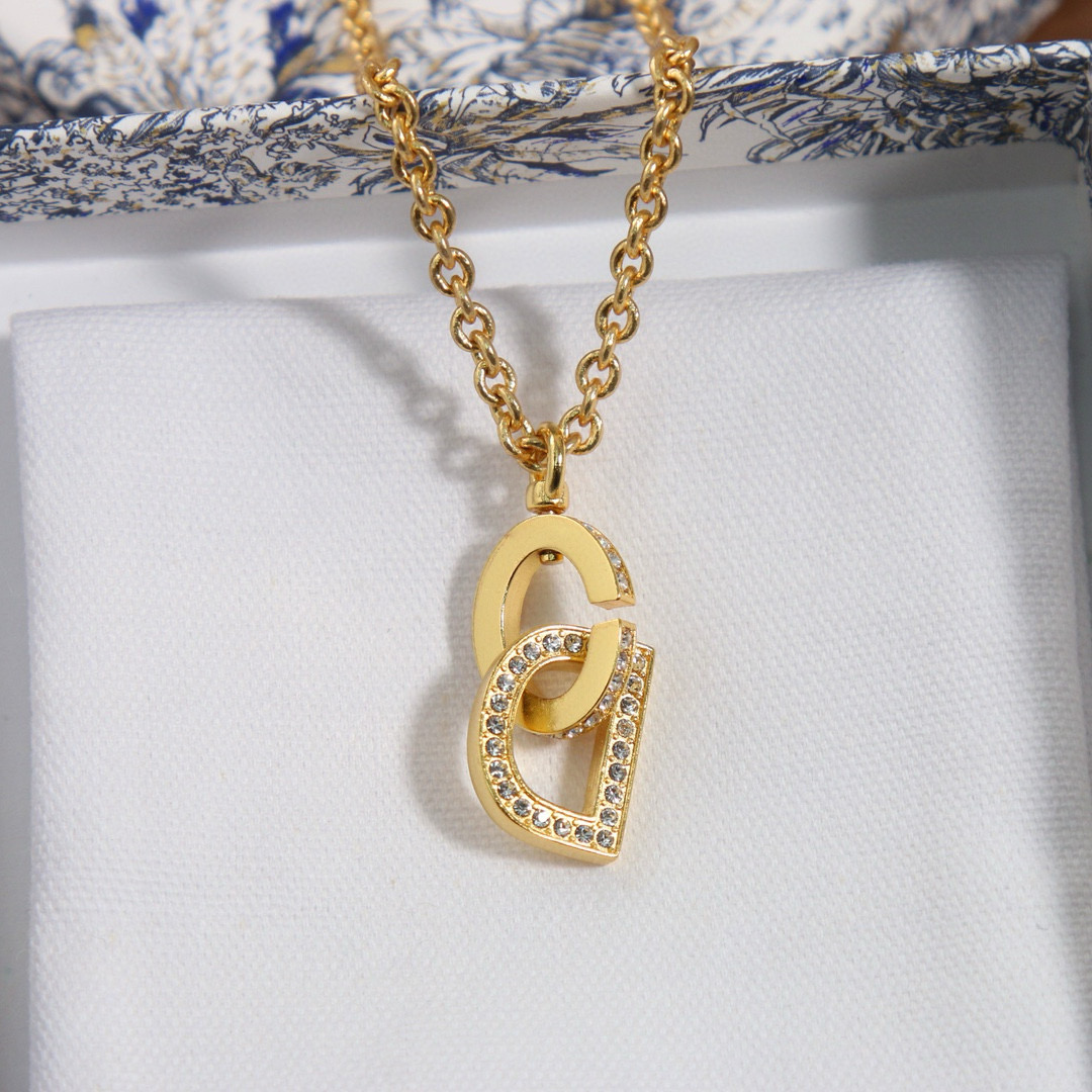NIGO Dior Women's CD LOCK Necklace in Silver Tone Faux Crystals CD in Gold Tone Brass Jewelry #nigo98182