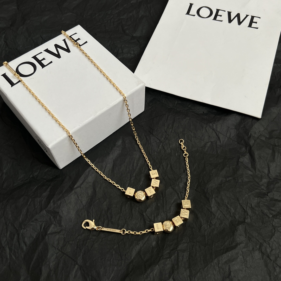 NIGO Loewe Women's Fashion Classic Cube Engraved Diamond Shaped Buckle Minimalist Necklace Bracelet Jewelry Accessories #nigo78551