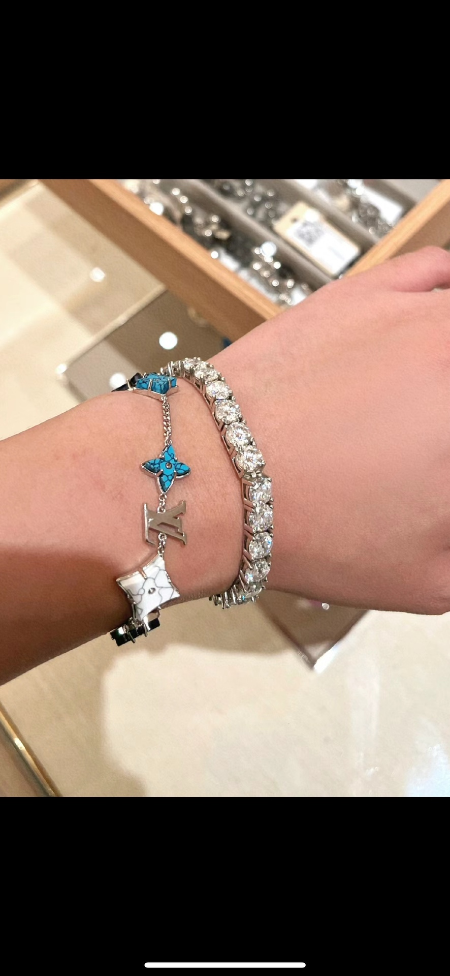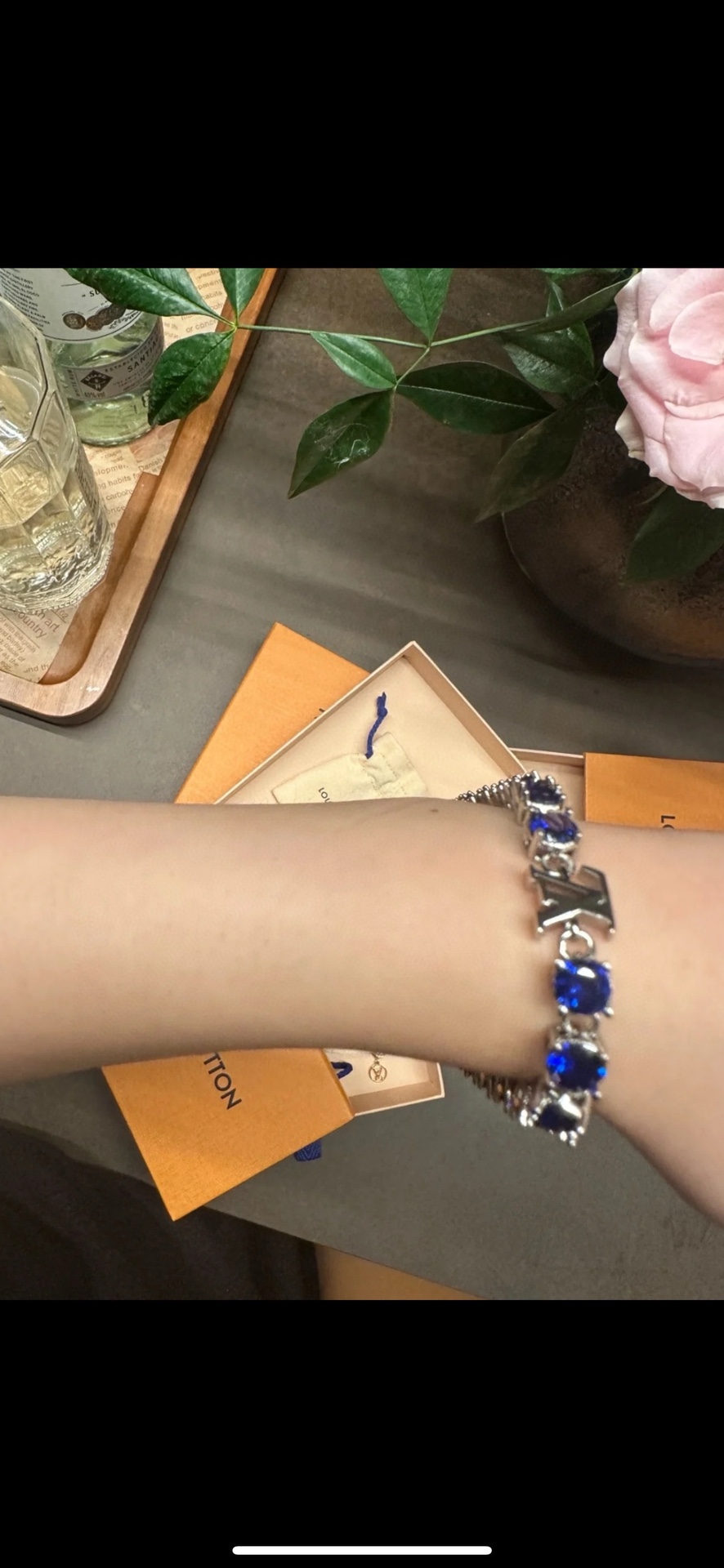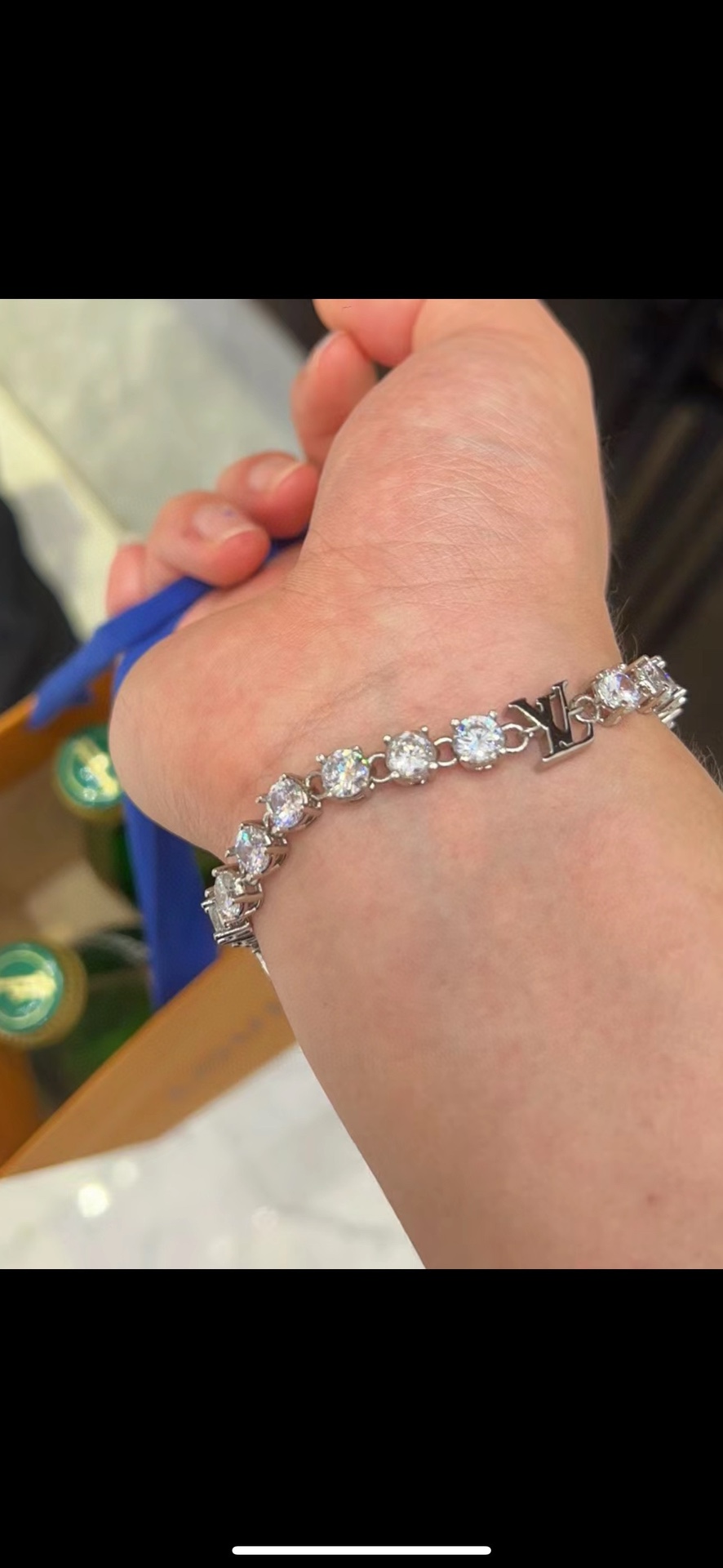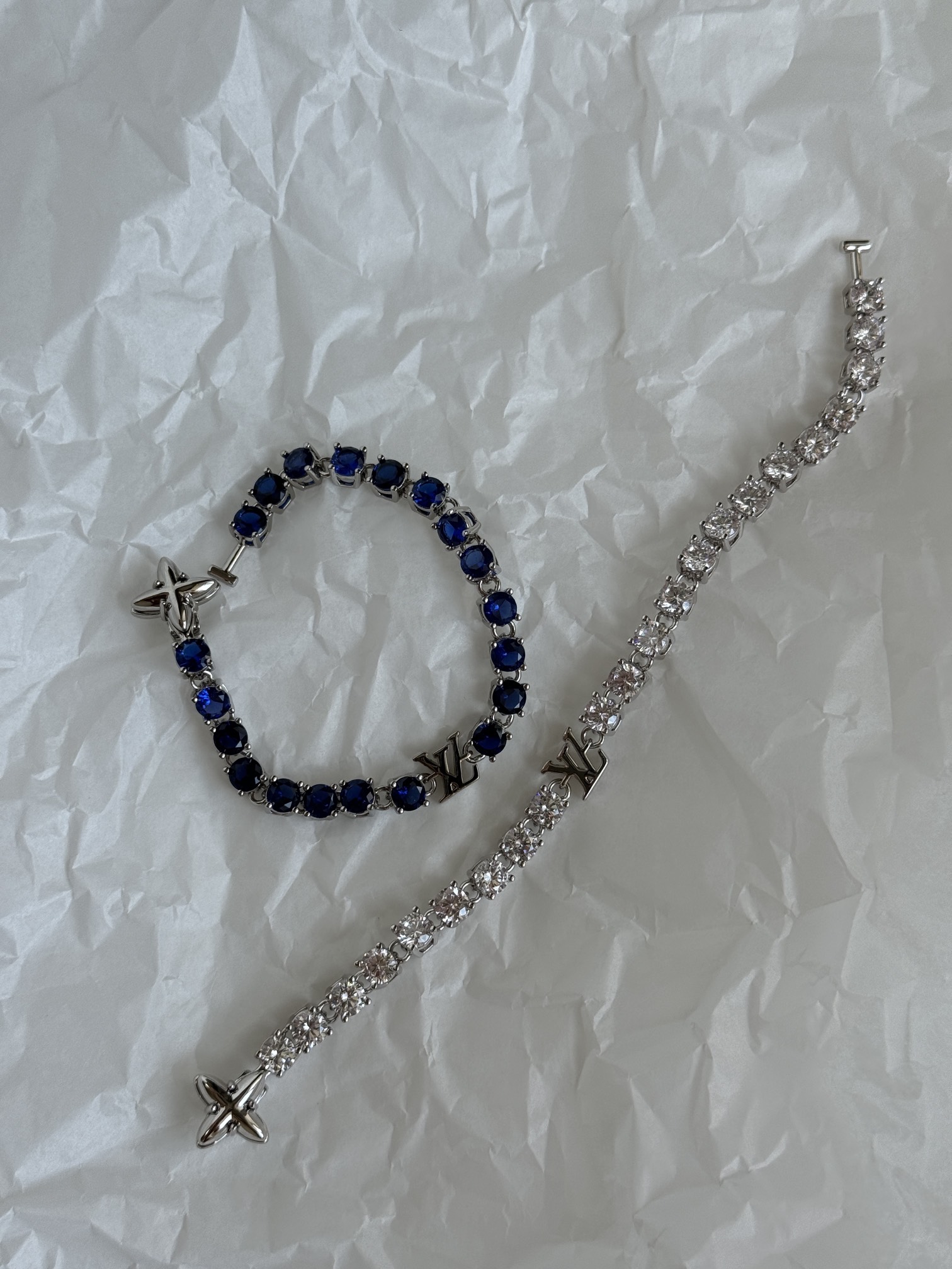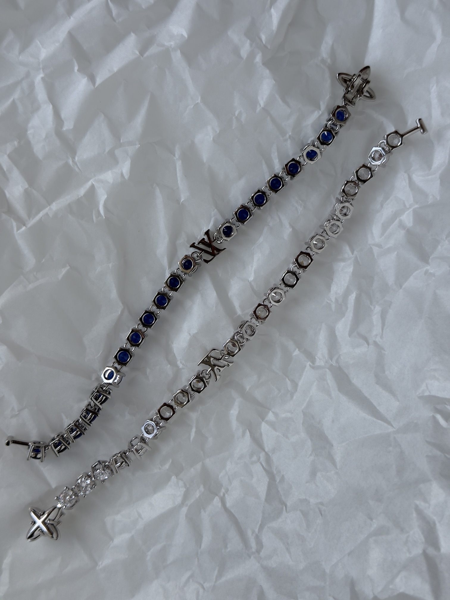 NIGO Louis Vuitton CRYSTAL Men's Blue Monogrammed Zirconia Bracelet Jewelry #nigo73244