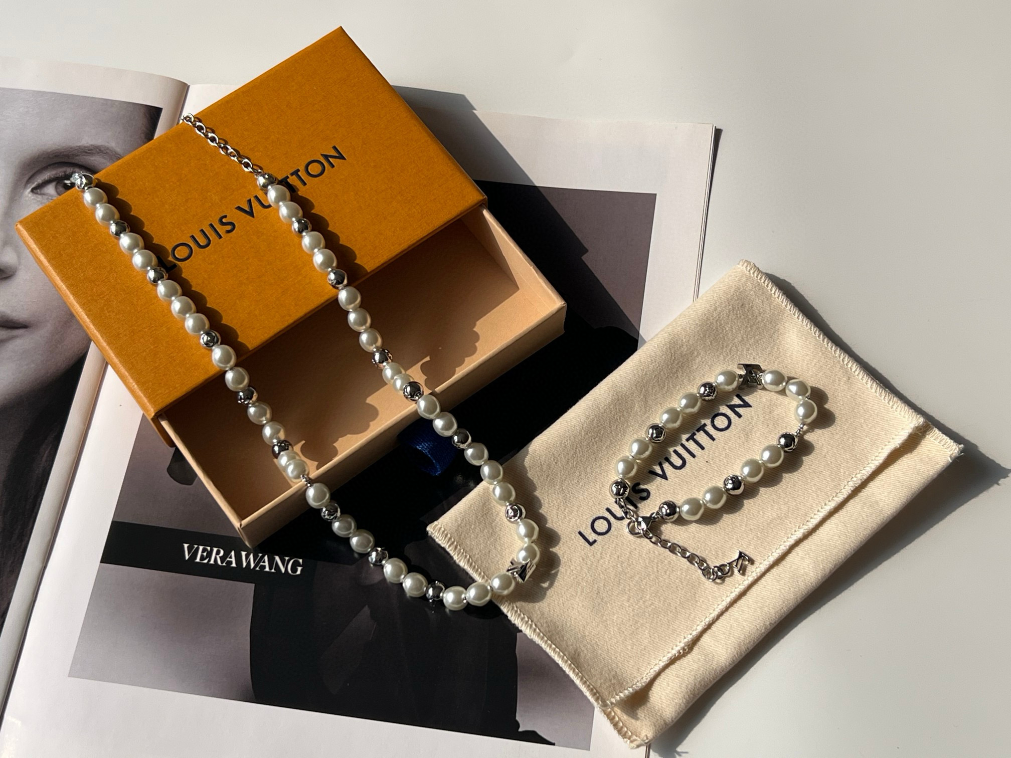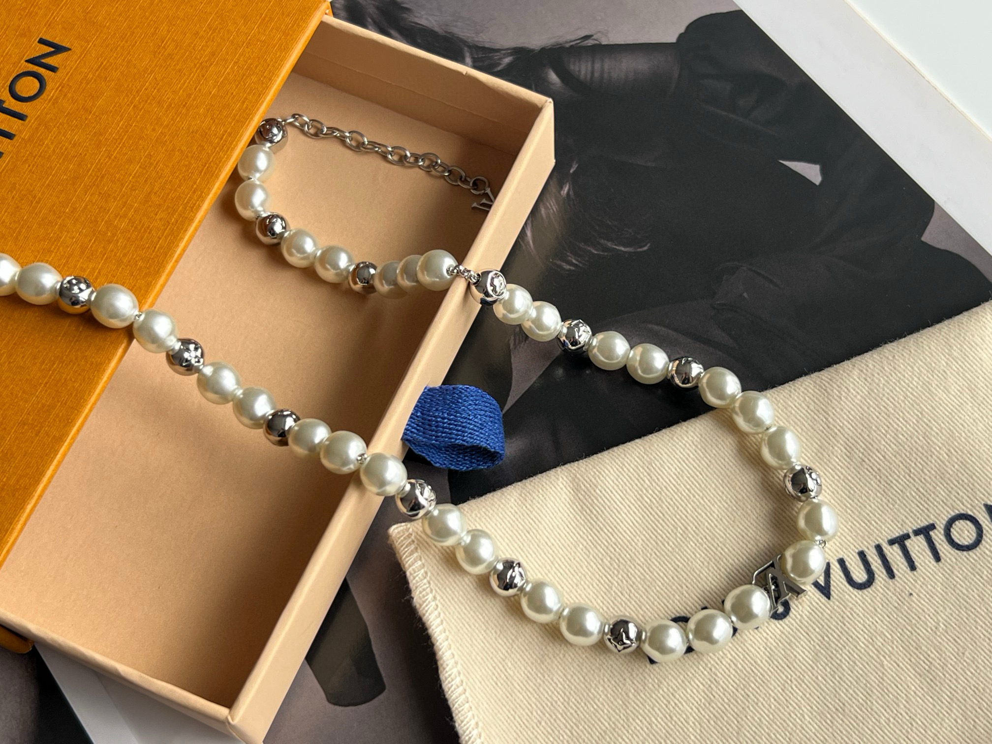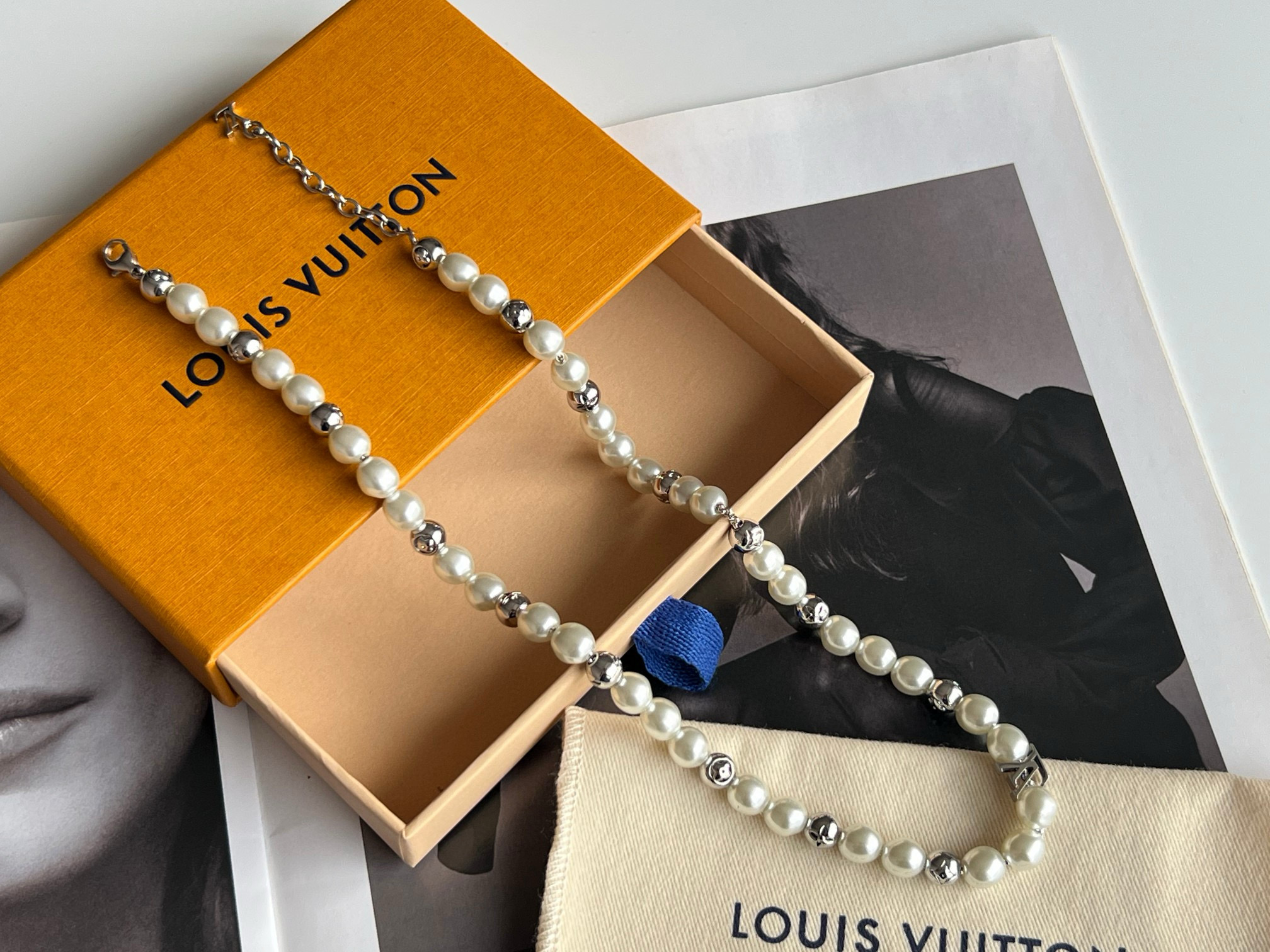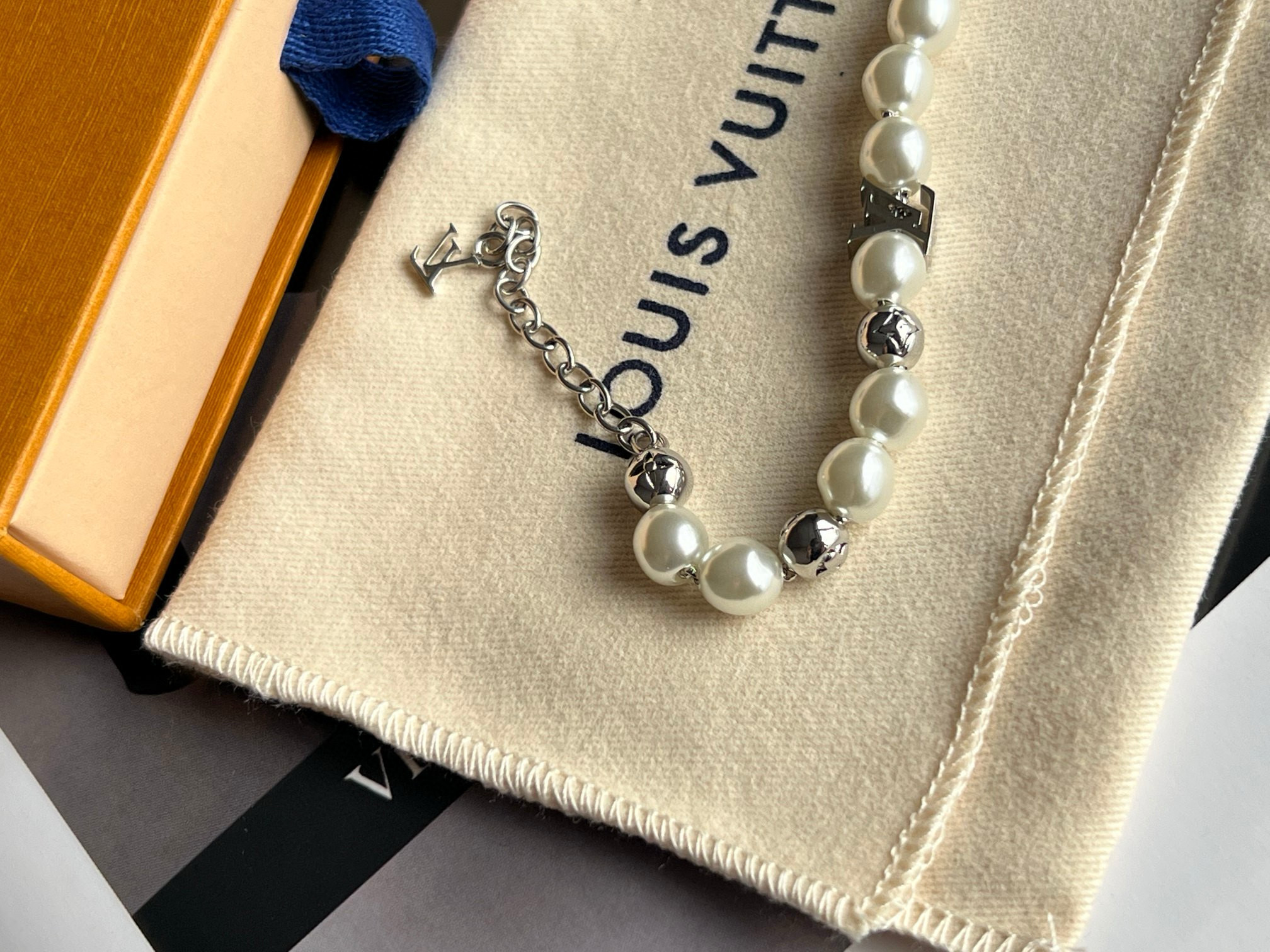 NIGO Louis Vuitton Men's And Women's Adjustable Letter Pearl Necklace Collarbone Chain Bracelet Jewelry #nigo98385