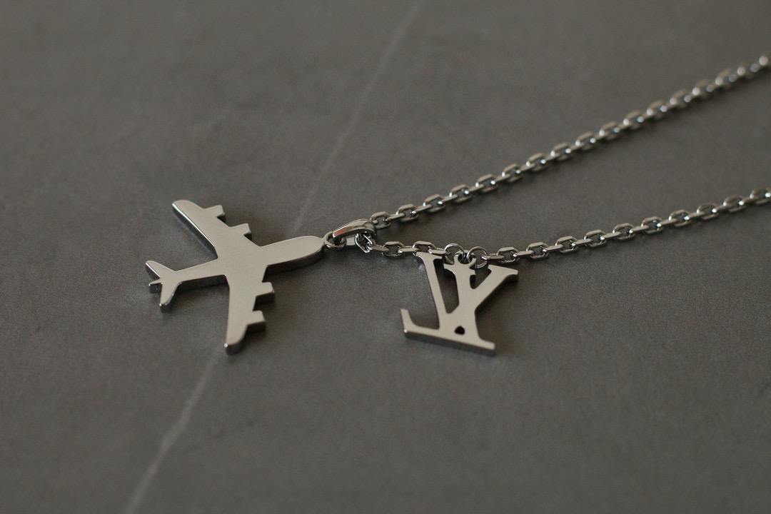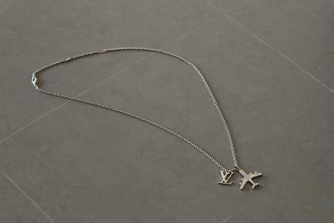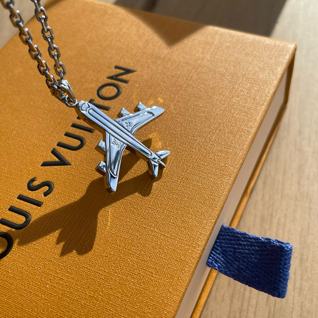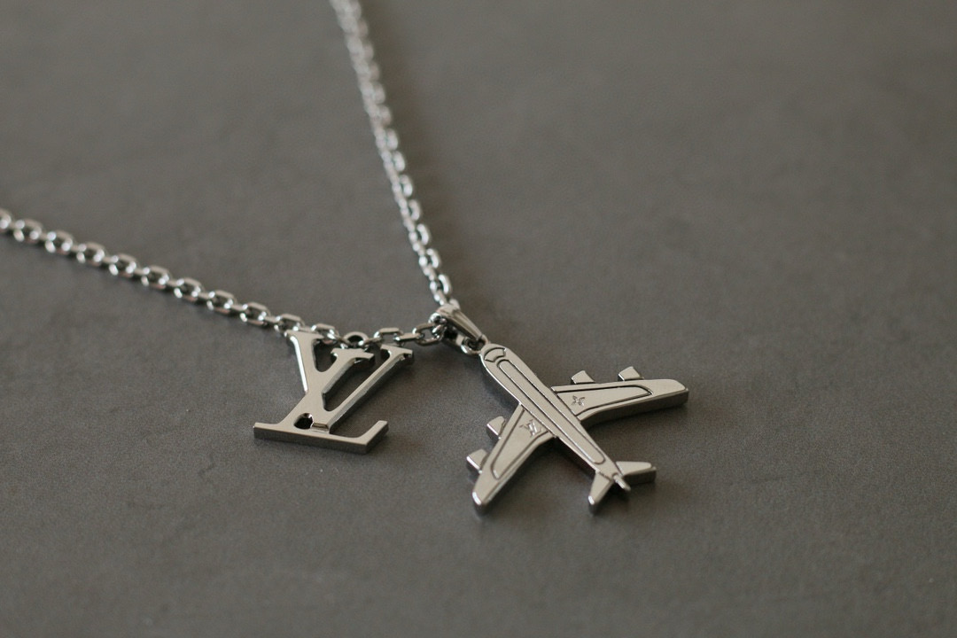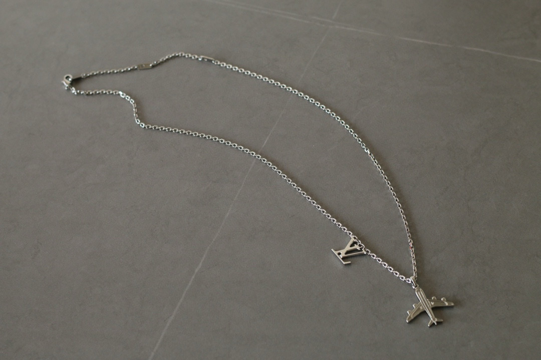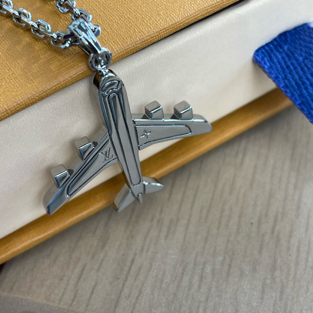 NIGO Louis Vuitton Men's Silver Simple Logo Metal Airplane Pattern Necklace Jewellery #nigo97724