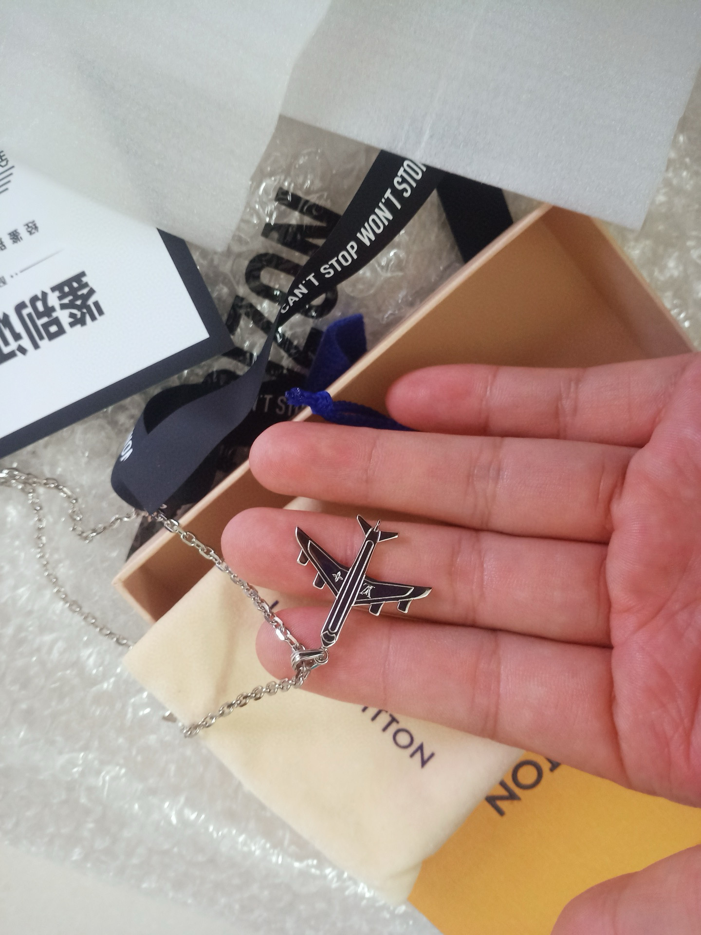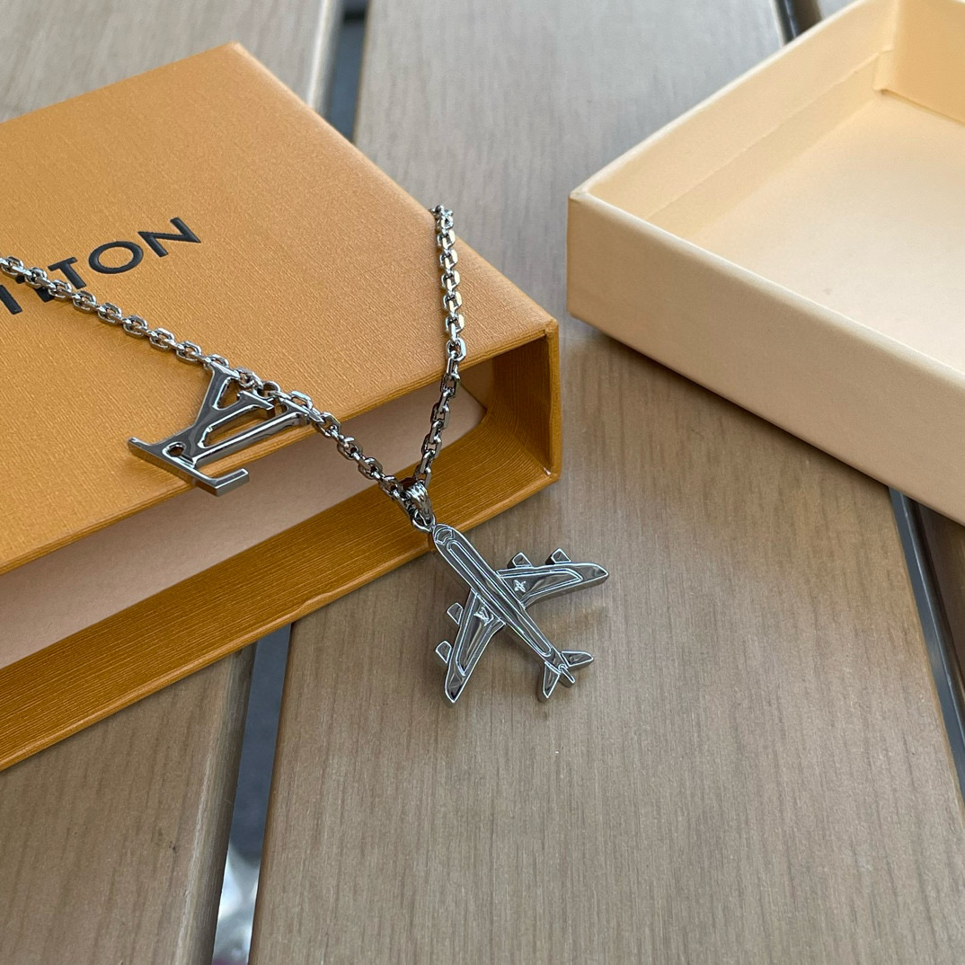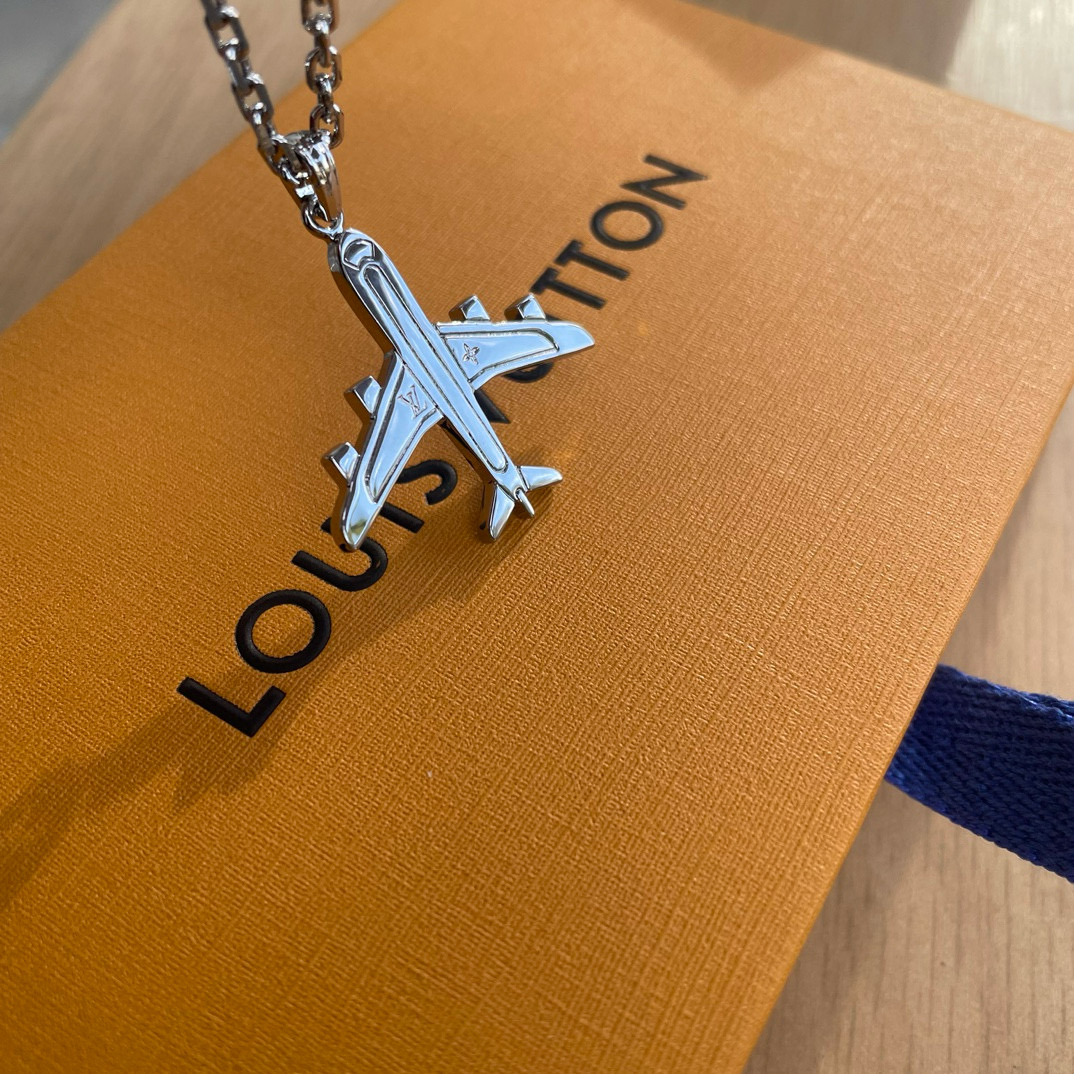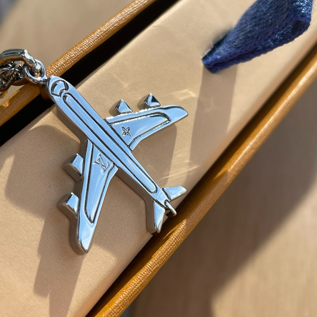 NIGO Louis Vuitton Men's Silver Simple Logo Metal Airplane Pattern Necklace Jewellery #nigo97724