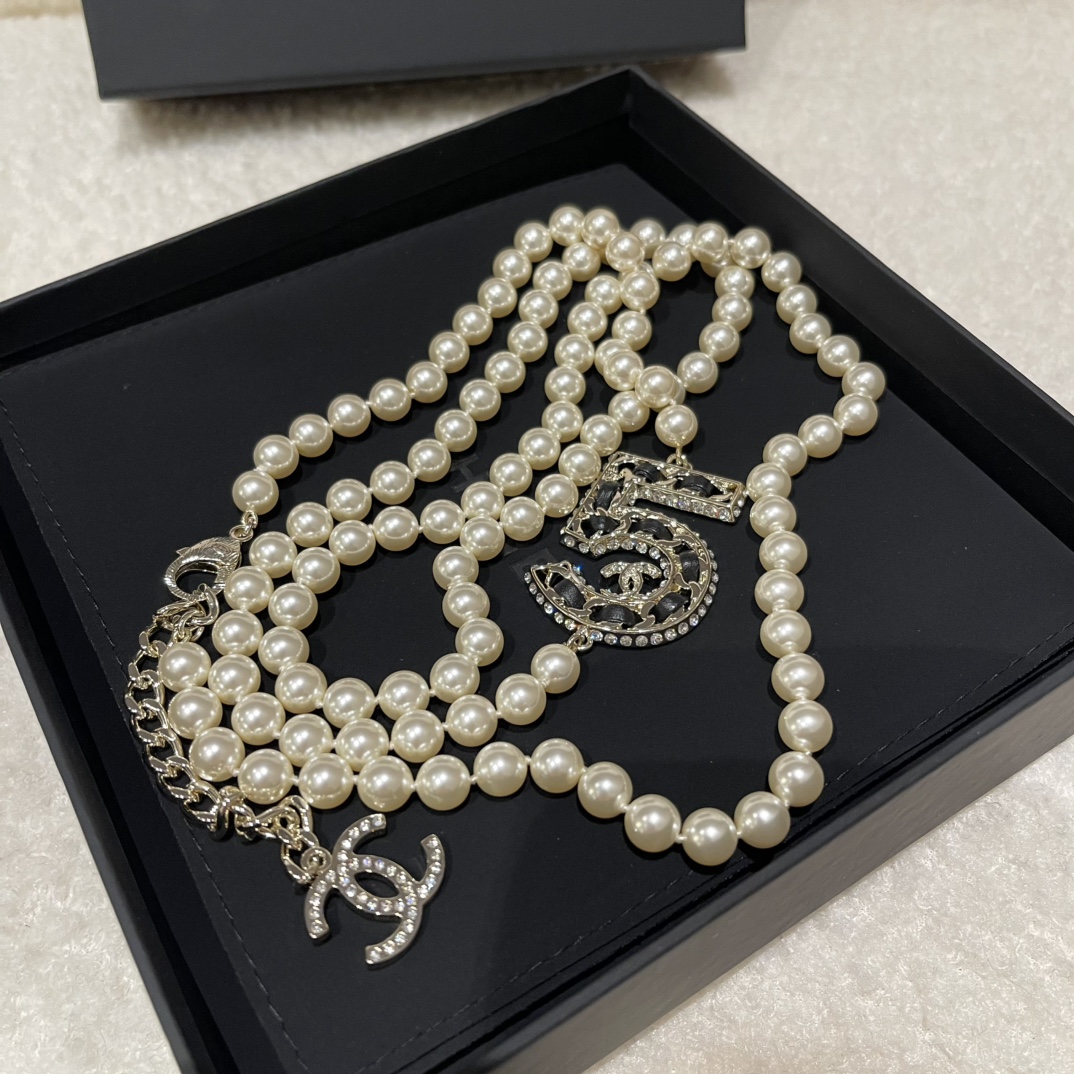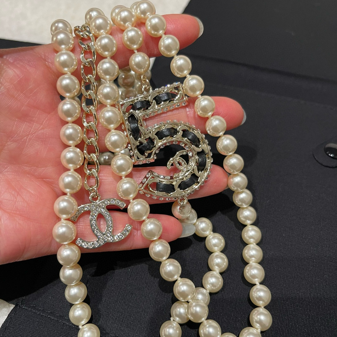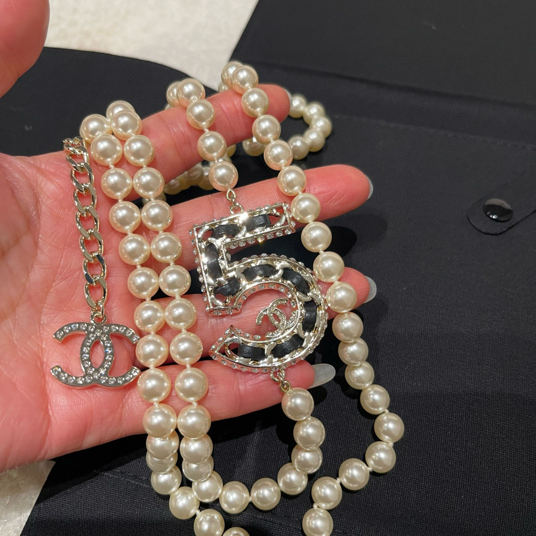 NIGO Chanel Women's Fashion Diamond Number 5 Elegant Pearl Double Layer Necklace Jewelry Accessories #nigo71899