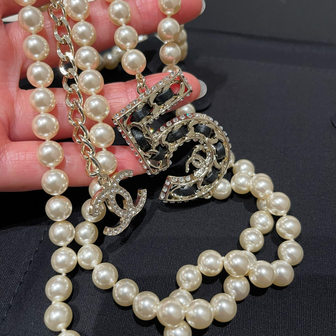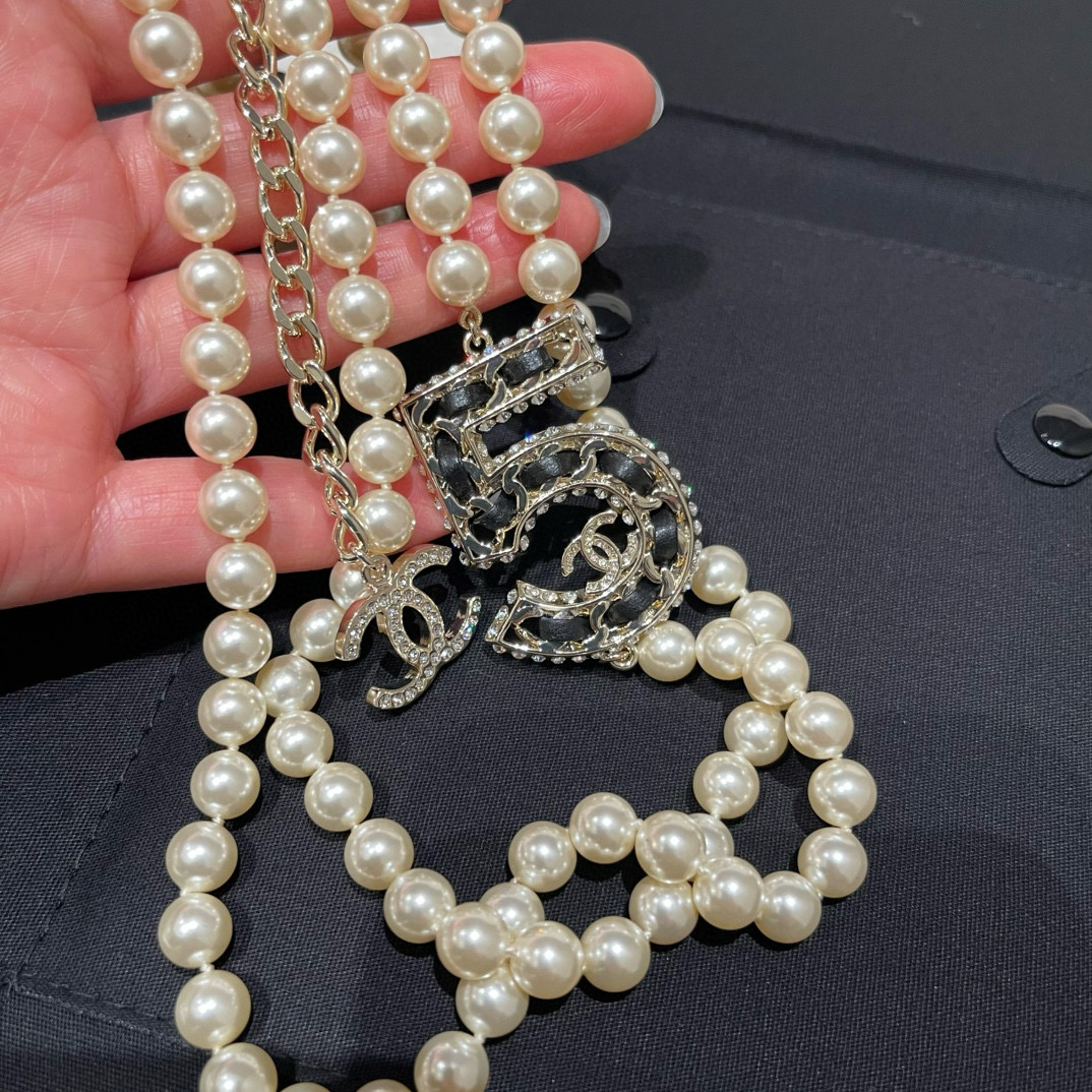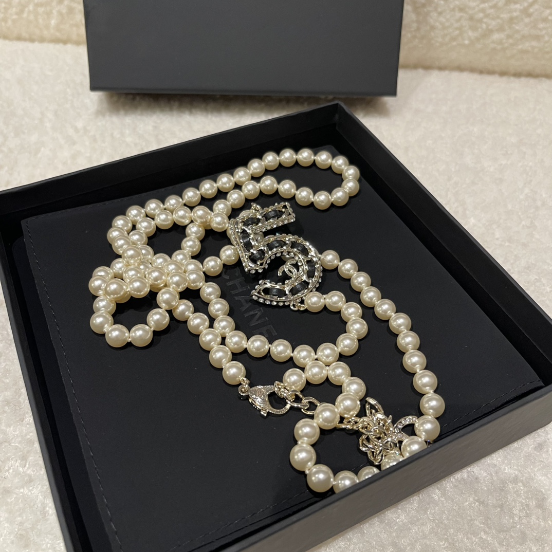 NIGO Chanel Women's Fashion Diamond Number 5 Elegant Pearl Double Layer Necklace Jewelry Accessories #nigo71899
