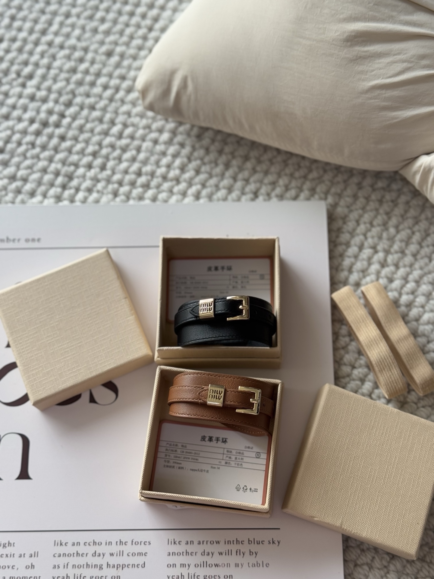 NIGO MiuMiu Women's Solid Color Letter Printed Leather Bracelet Jewelry #nigo75216