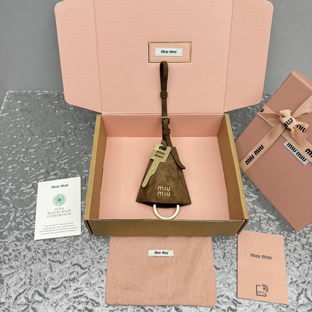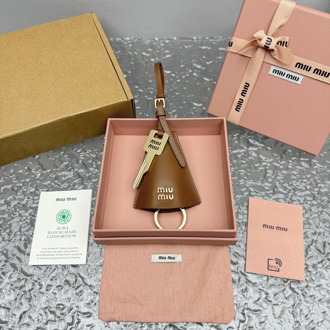 NIGO MiuMiu Women's Solid Color Leather Logo Embroidery Printed Keychain Bag Accessories Jewelry #nigo74535