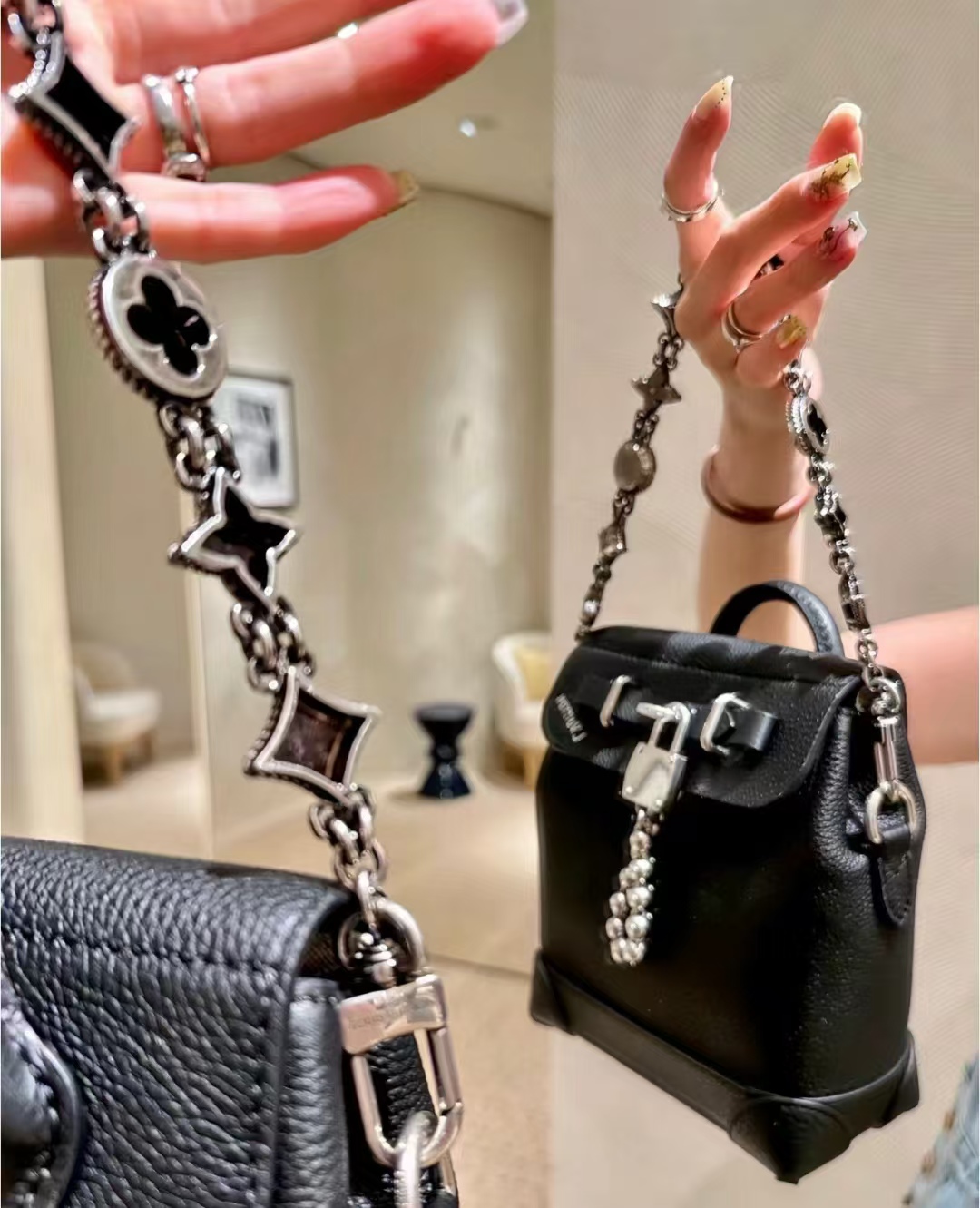 NIGO Louis Vuitton Men's Silver Letter Logo Openwork Design Brass Pant Chain Bag Chain Jewelry #nigo73189