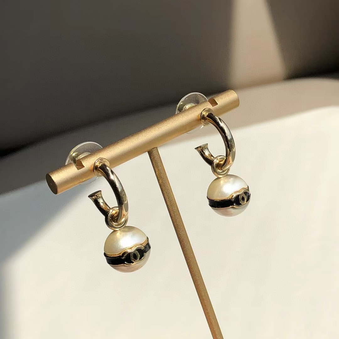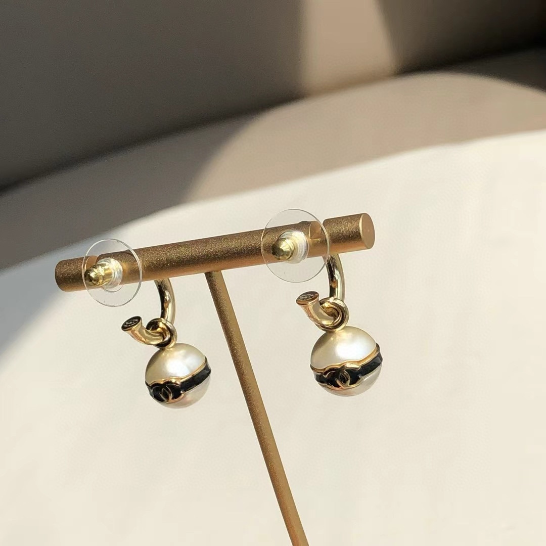 NIGO Chanel Women's Round Black Enamel Double C Pearl Bean Earrings Jewelry #nigo72436