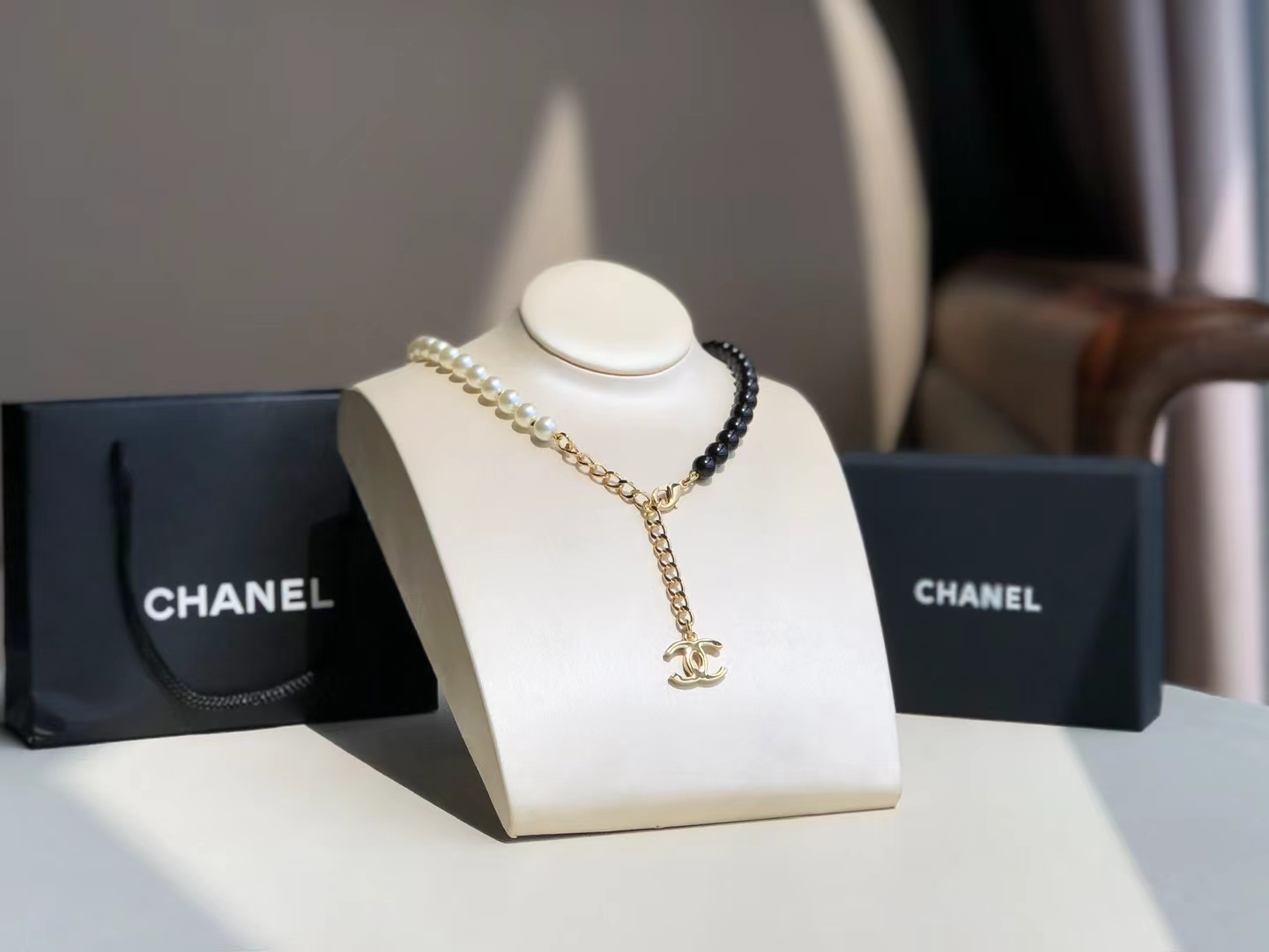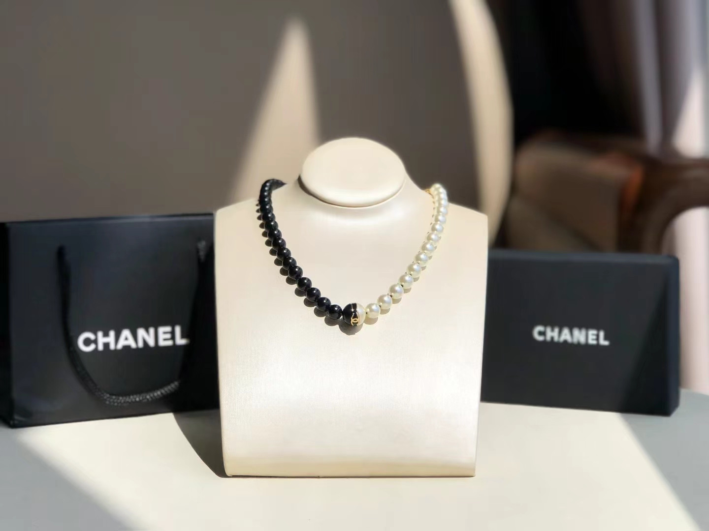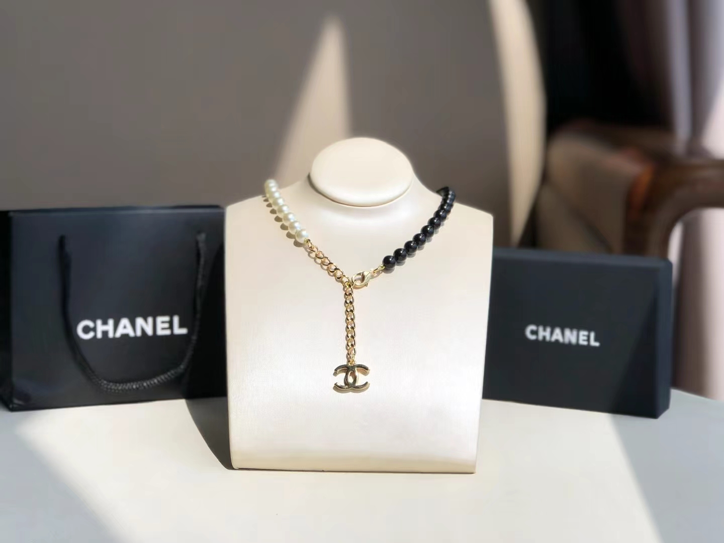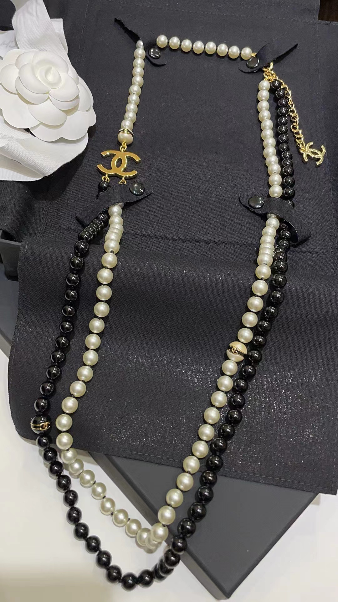 NIGO Chanel Women's Black and White Color Block Beads Chain Fashion Necklace Jewelry #nigo72576