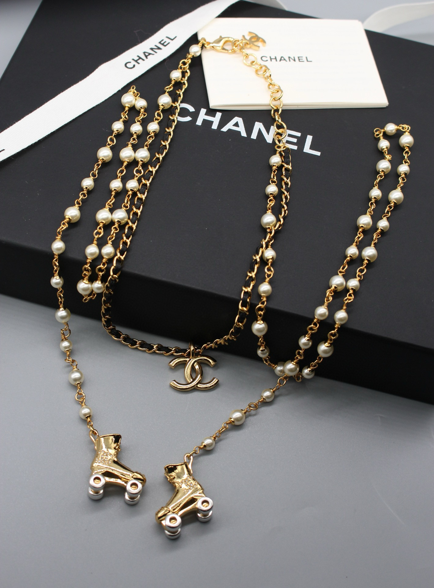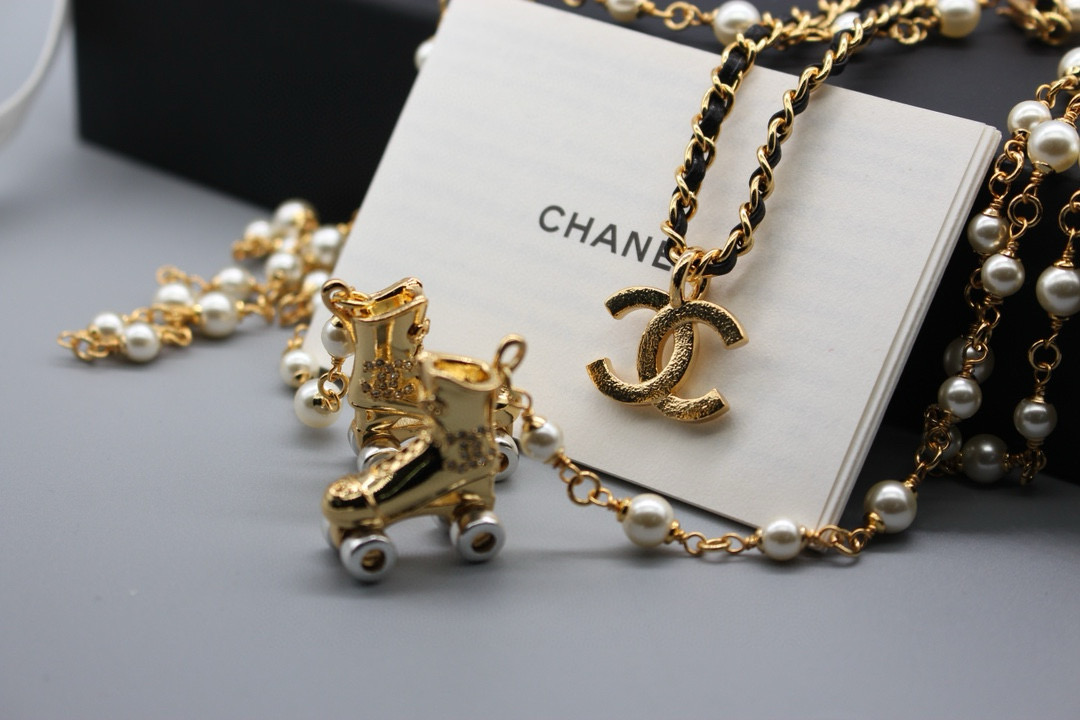 NIGO Chanel Women's Roller Skate Pendant Pearl Necklace Jewelry #nigo99253