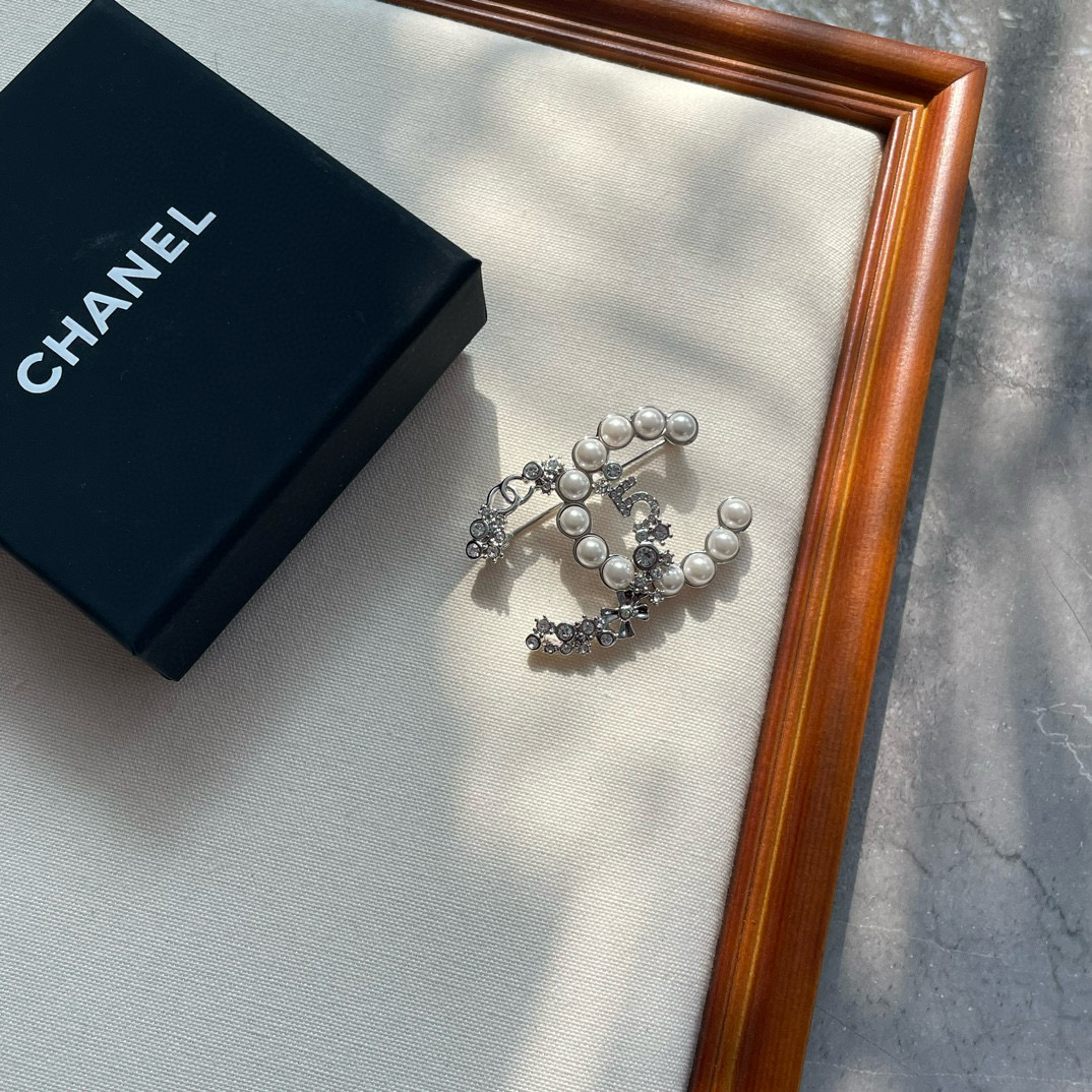 NIGO Chanel Women's White Double C Alphanumeric 5 Metal Artificial Pearl Rhinestone Brooch Jewelry #nigo97919