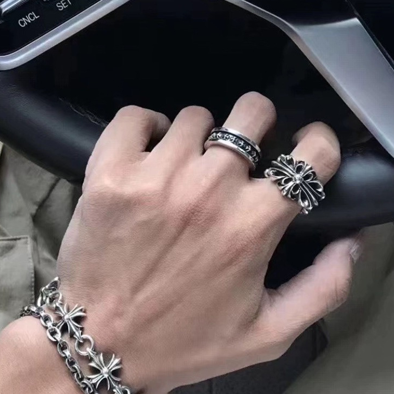 NIGO Chrome Hearts Men's And Women's Silver Cross Logo Classic Punk Rock Couple Rings Jewelry #nigo98225
