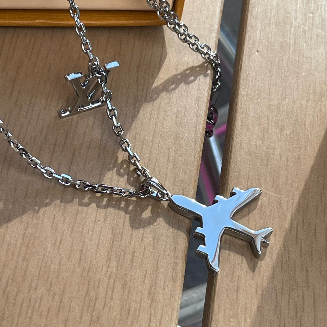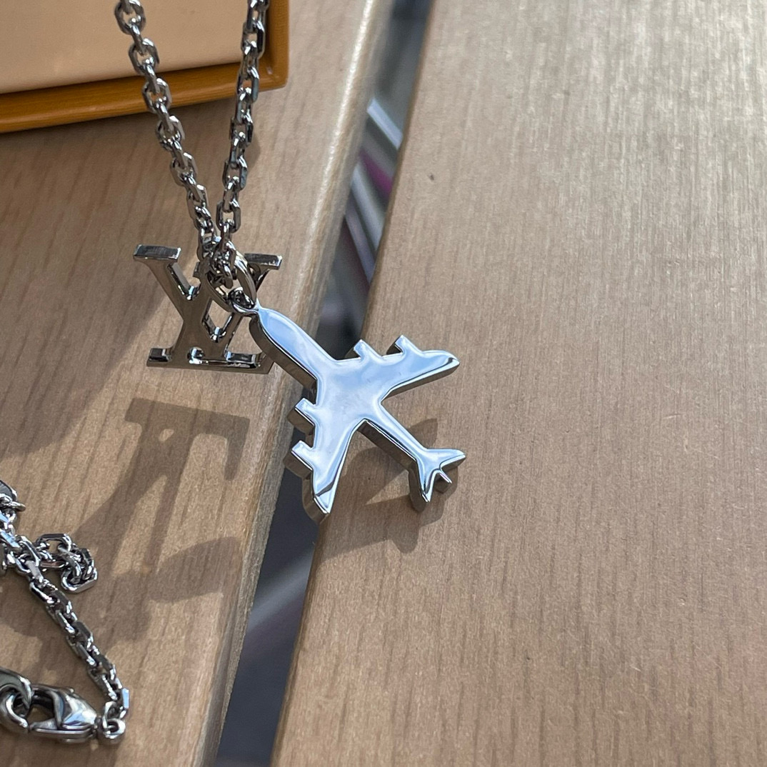 NIGO Louis Vuitton Men's Silver Simple Logo Metal Airplane Pattern Necklace Jewellery #nigo97724